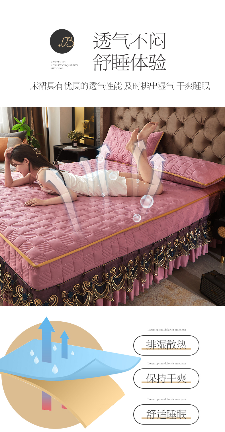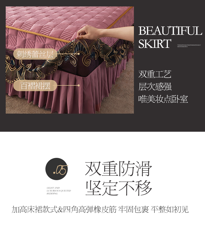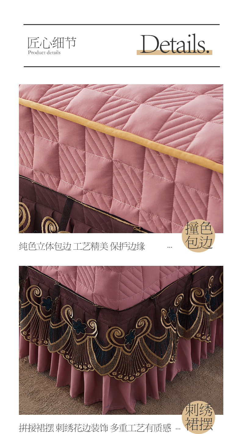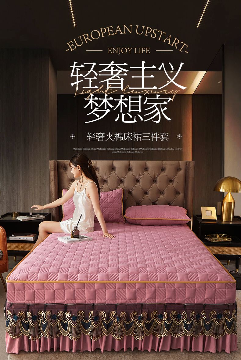 锦逸家居 2024新款加厚磨毛轻奢夹棉床裙床笠三件套系列 佳人-豆沙粉