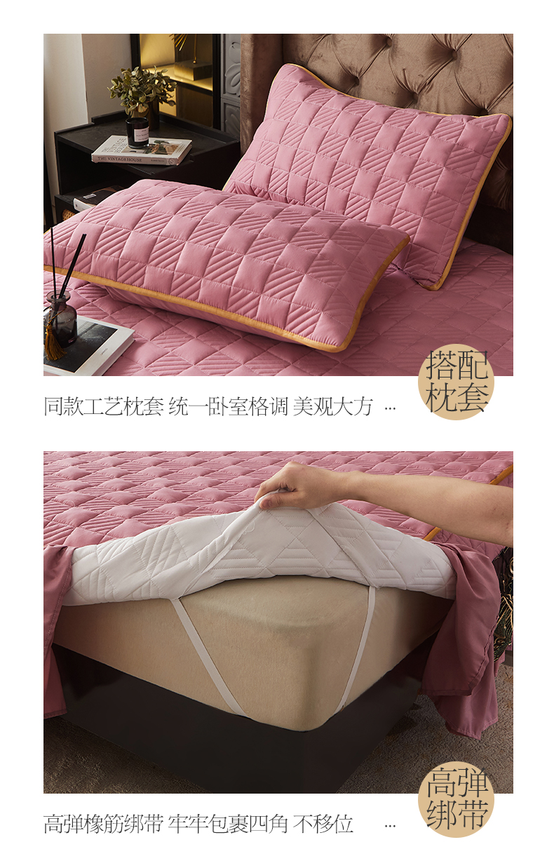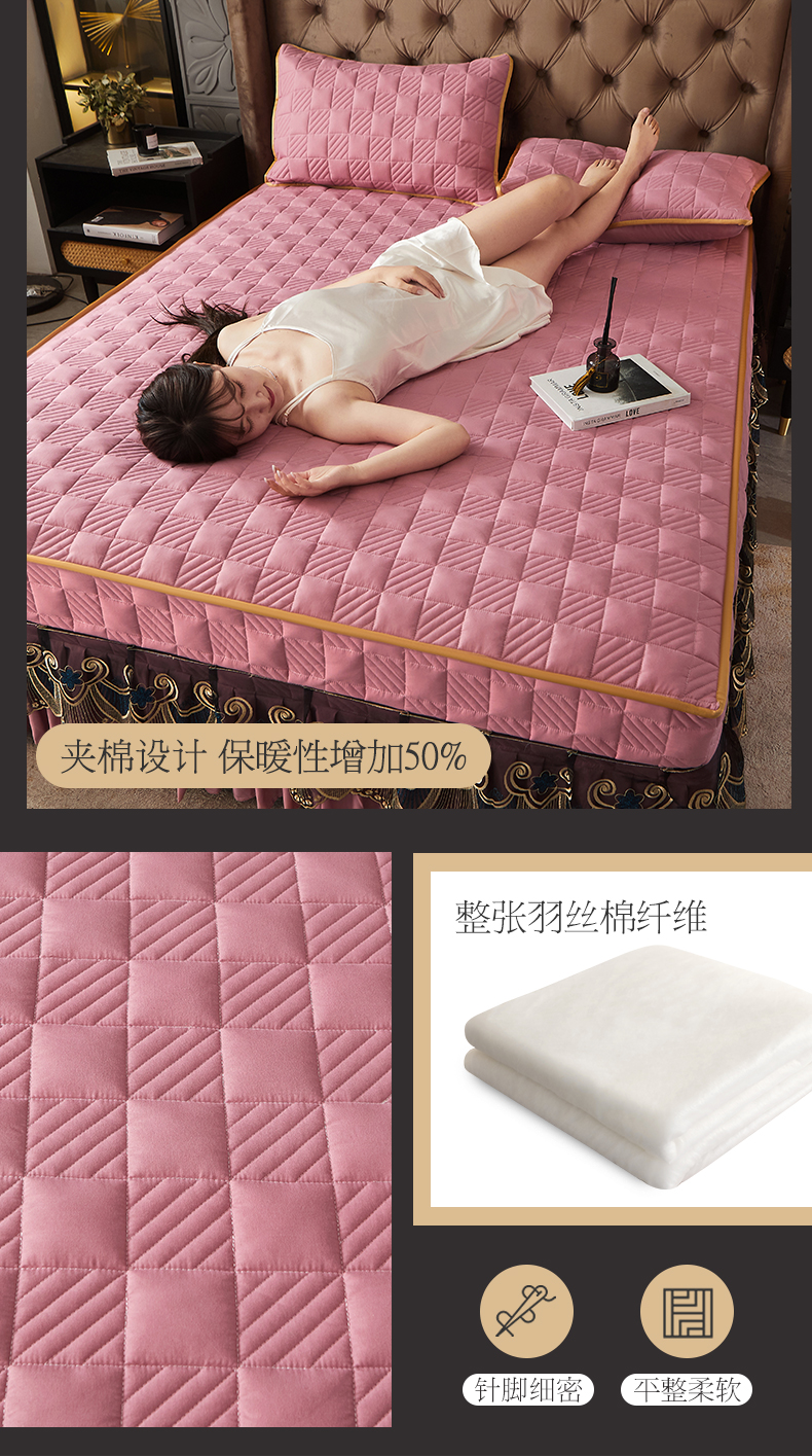 • 91家纺网 家纺一手货源 找家纺 锦逸家居 2024新款加厚磨毛轻奢夹棉床裙床笠三件套系列 佳人-豆沙粉
