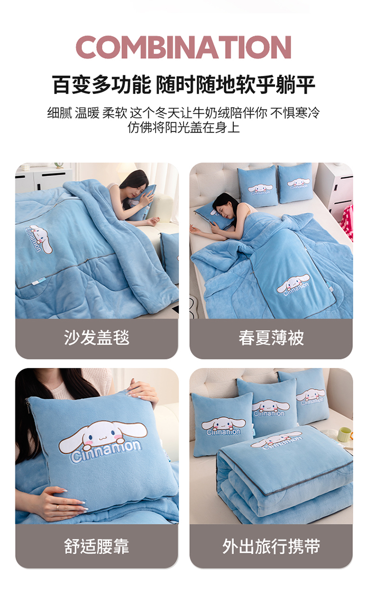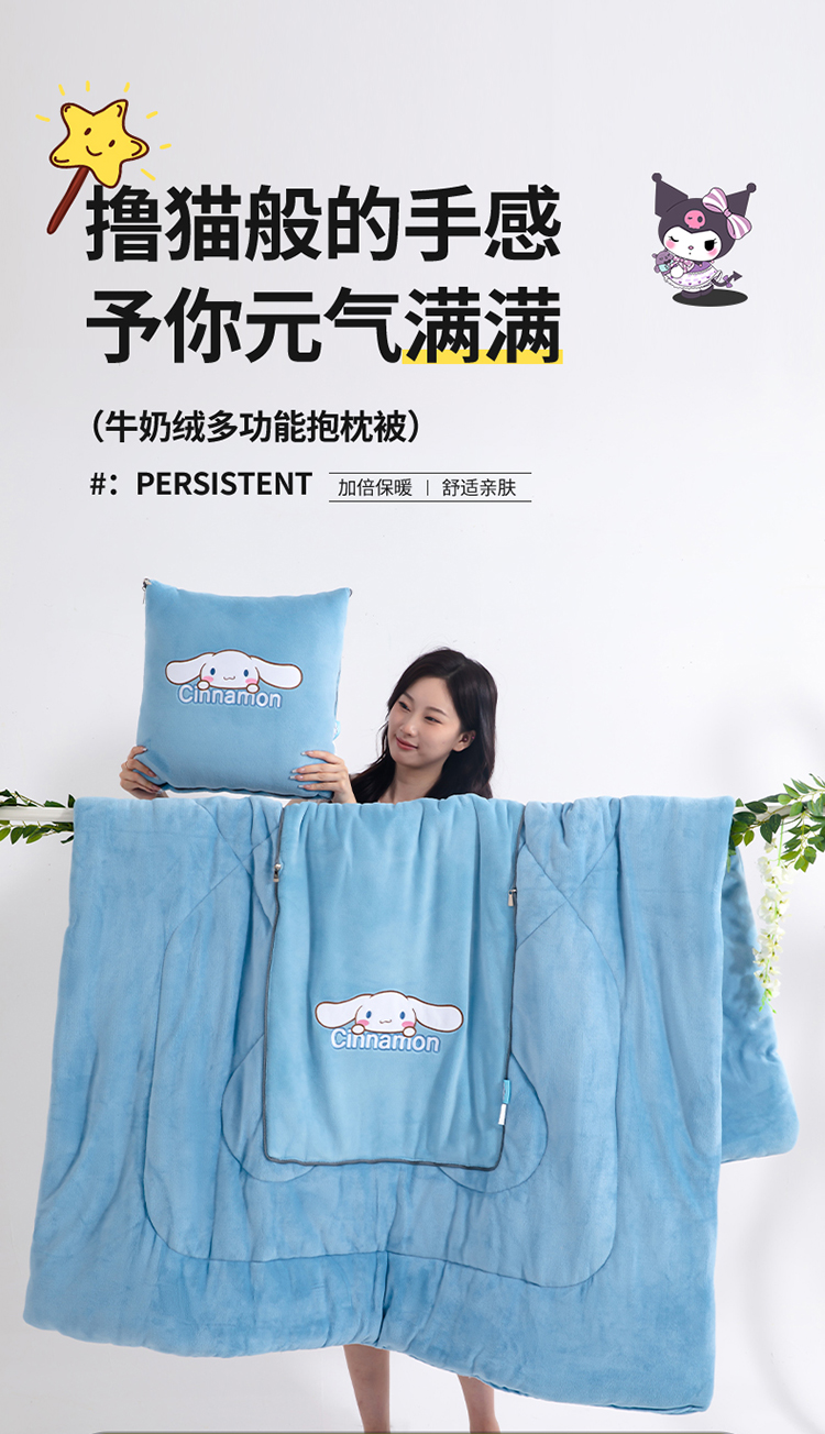 (总)照世家纺 2025新款牛奶绒立体三丽鸥抱枕被,凯蒂猫,库洛米,美乐蒂,玉桂狗