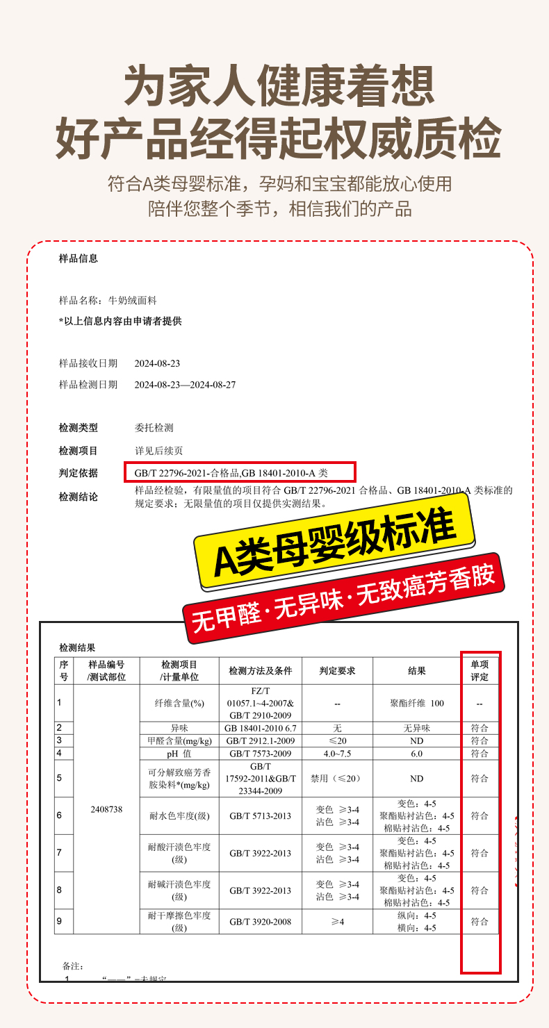 4、通州区市场监管局川姜分局友情提醒:近期针对抗静电,无静电,抗菌防螨,及有关舒适度,百分比的举报高发。为不影响商品正常销售,请各商家高度重视,自检自查及时整改,谢谢配合!
