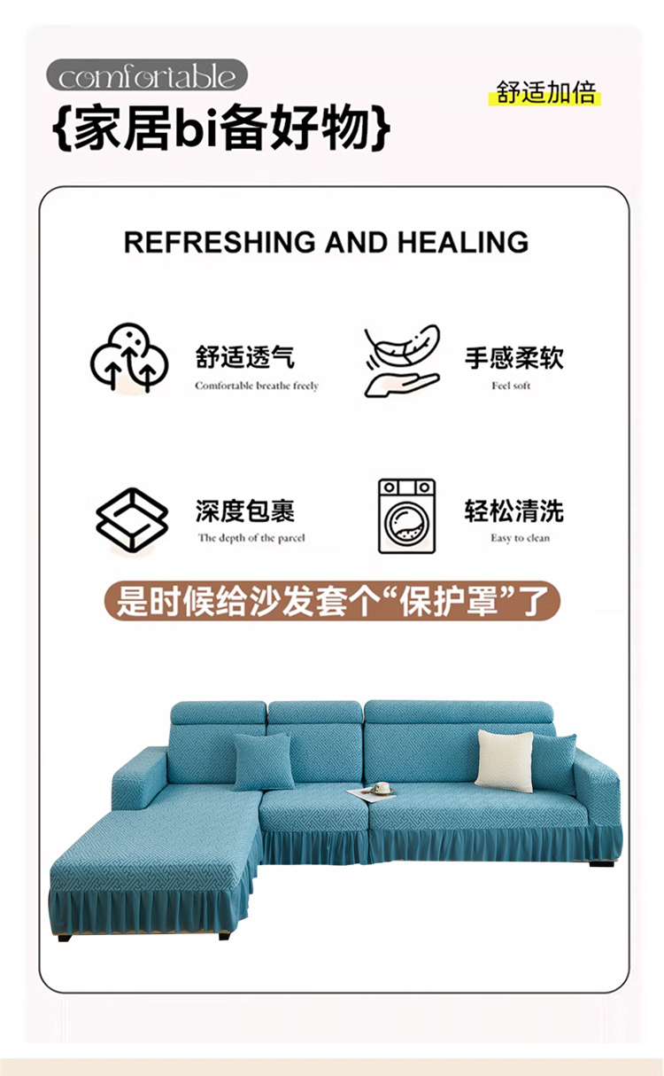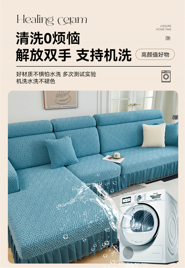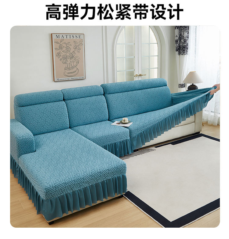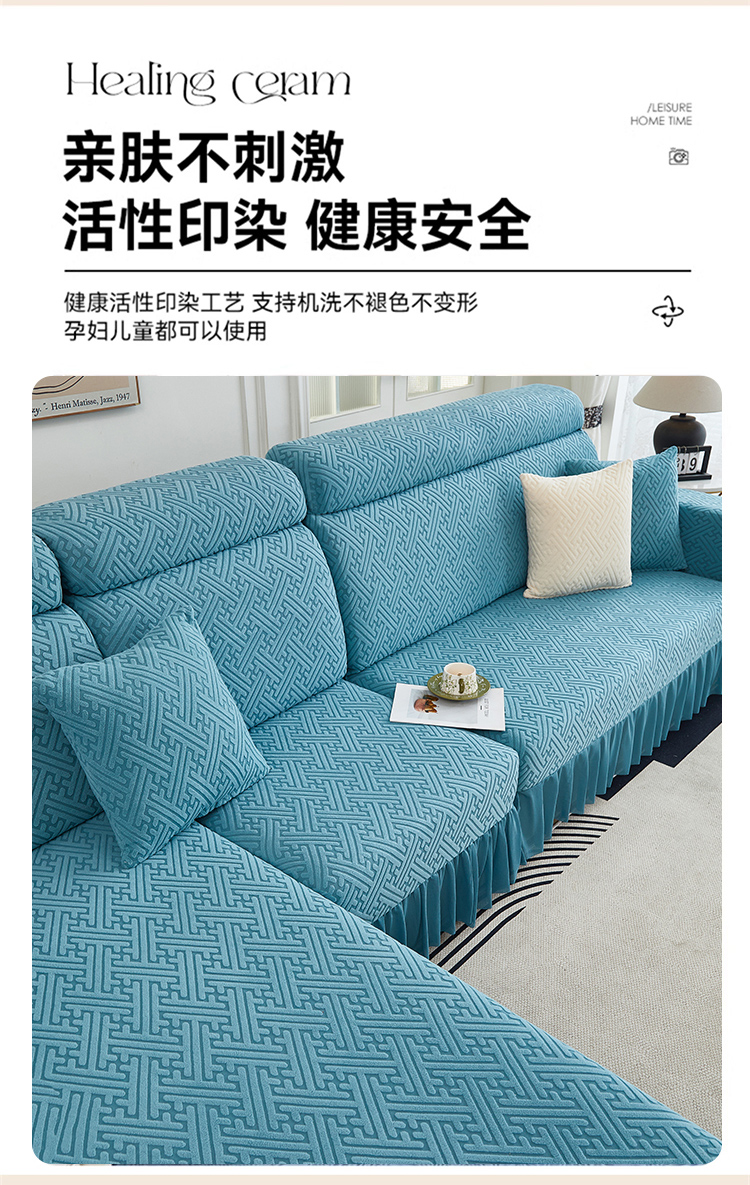 (总)千彤沙发垫 2025新款防滑防尘优雅百褶裙边全包款沙发笠沙发套罩--三叶草系列,浅灰,豆沙,孔雀蓝,浅绿,深灰,水蓝