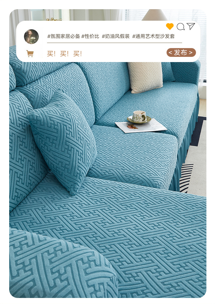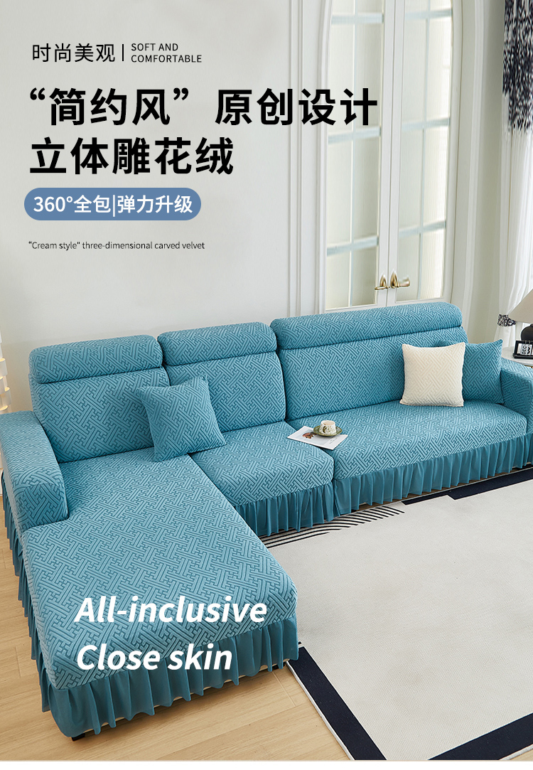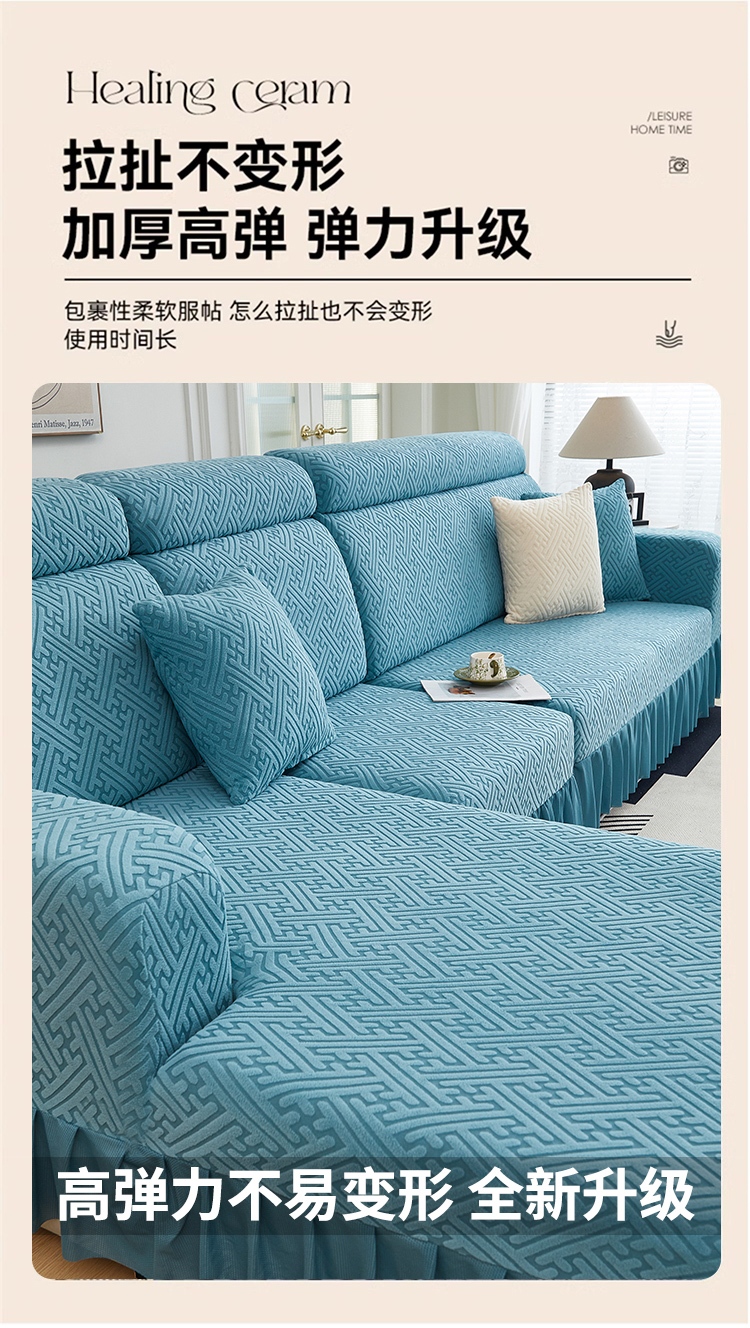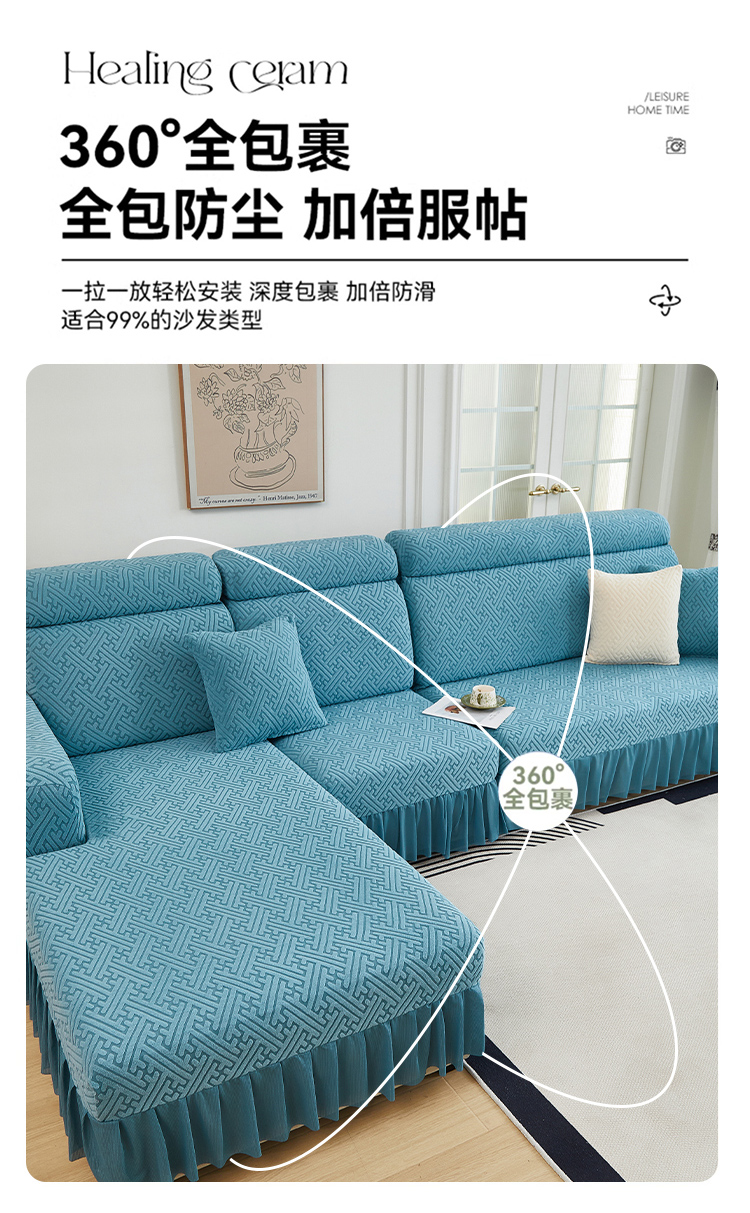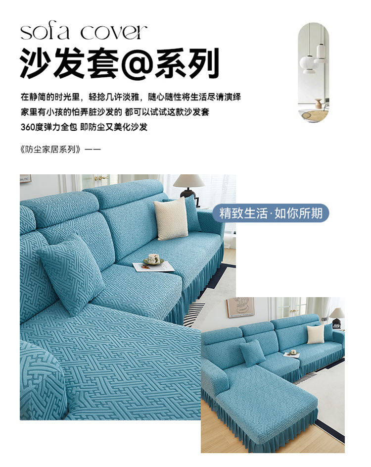 (总)2024新款加厚高弹拉花绒全包防尘沙发套罩-清韵系列