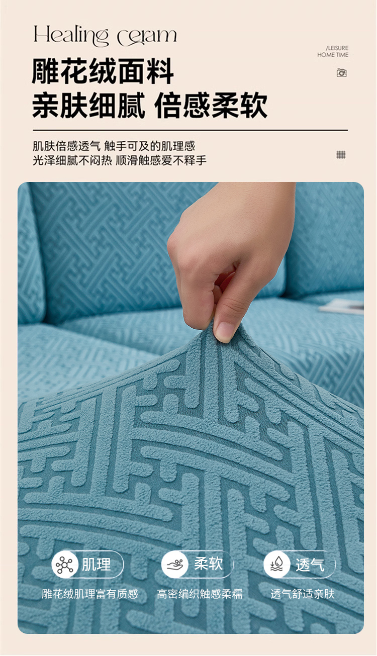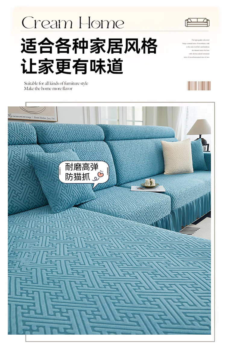 商品名称:(总)2024新款加厚高弹拉花绒全包防尘沙发套罩-清韵系列