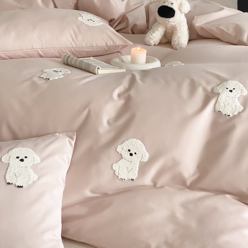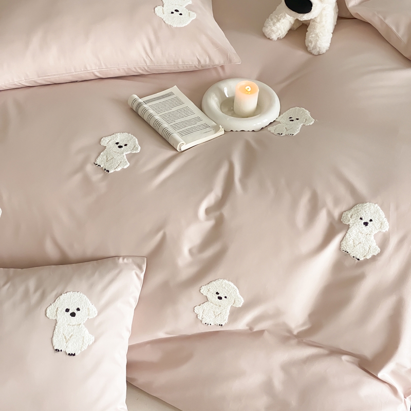 商品名称:(总)鹿班家居 2024新款100S全棉磨毛毛巾绣系列四件套-云朵小狗(标准会员-20)