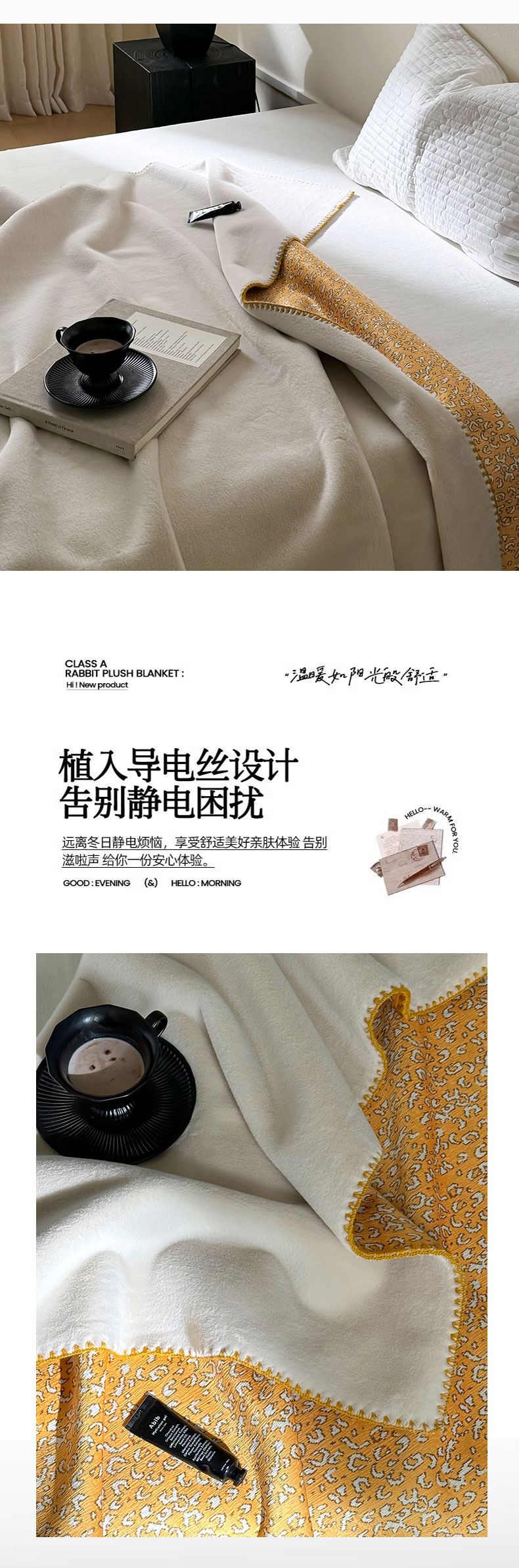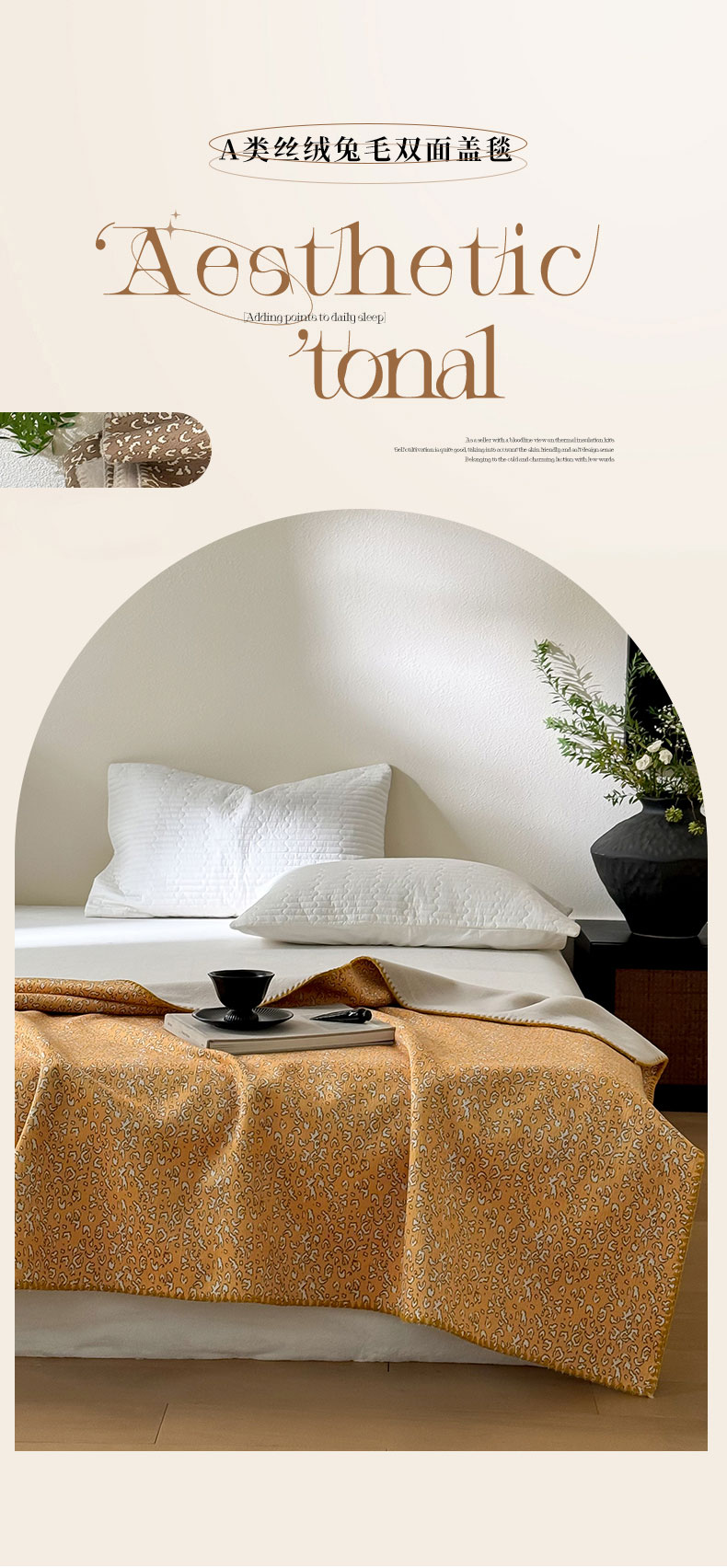FORTWO家纺 2024新款丝绒兔毛双面盖毯-午歇毯 午歇-橘