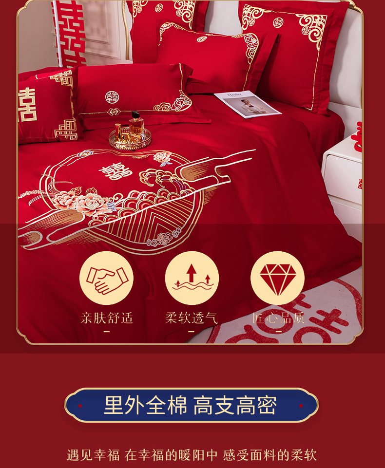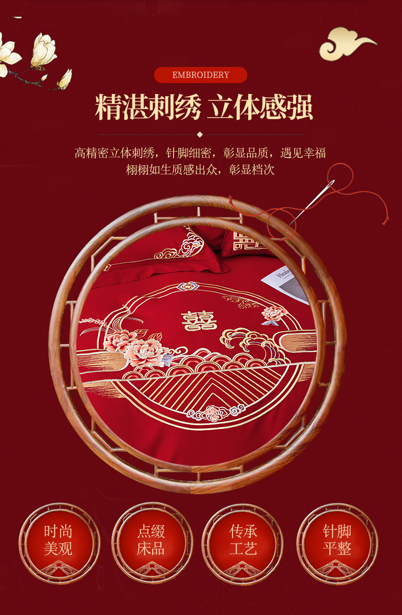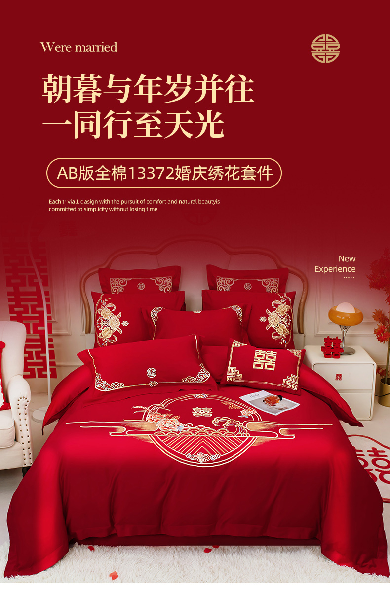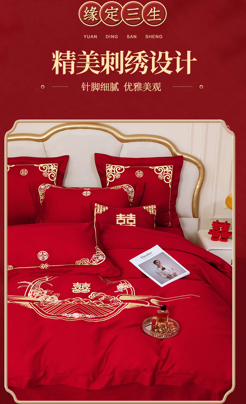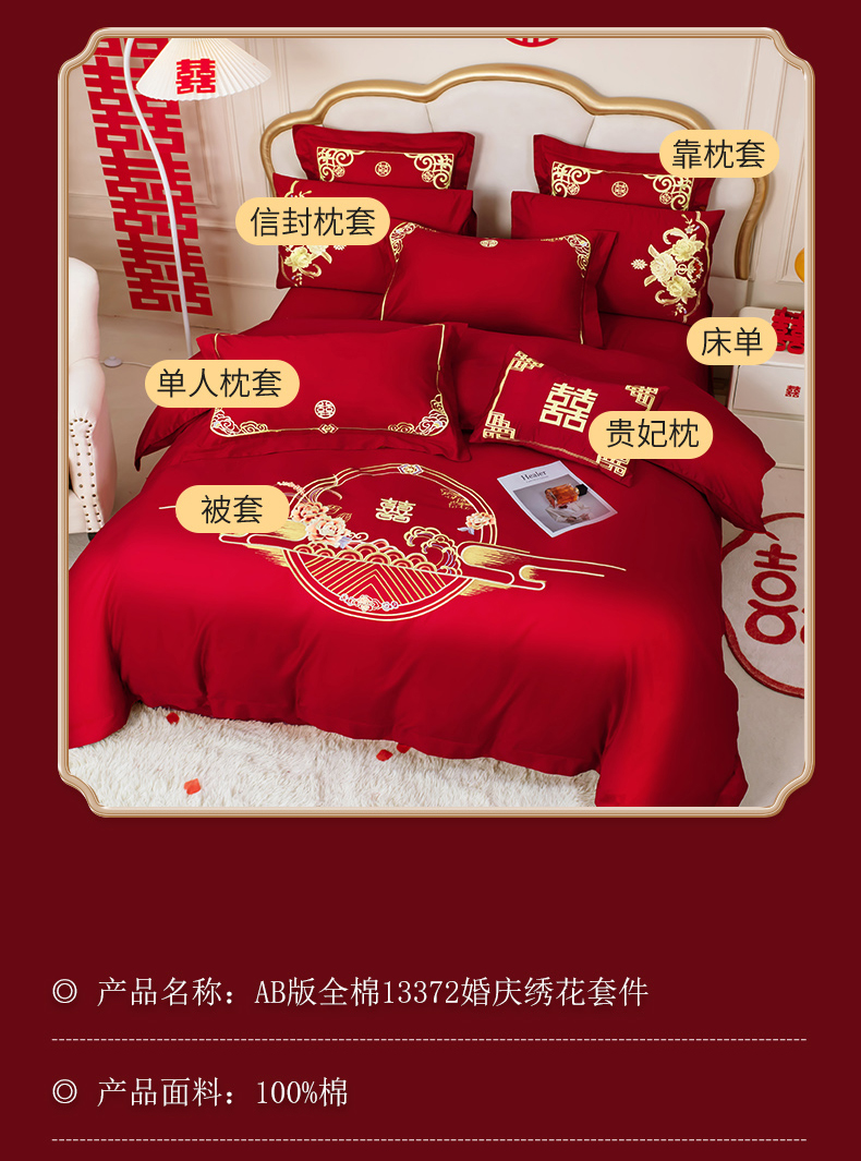 当前位置: 91家纺网 > 商品网购 > 床品套件 > 四件套 > 婚庆四件套 > 千禧家纺 2025新款全棉13372婚庆绣花系列喜迎相伴