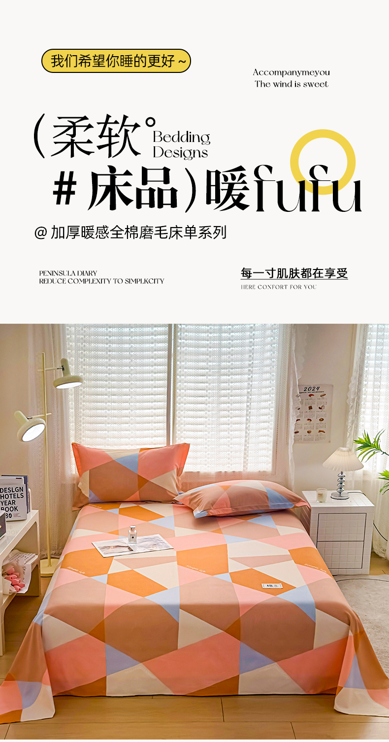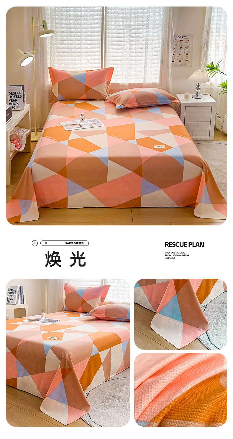 • 91家纺网 家纺一手货源 找家纺 丝芙妮家居(原乐视家纺) 2024新款全棉磨毛多规格AB版单品套件系列(第二波)--单床单及三件套 焕光