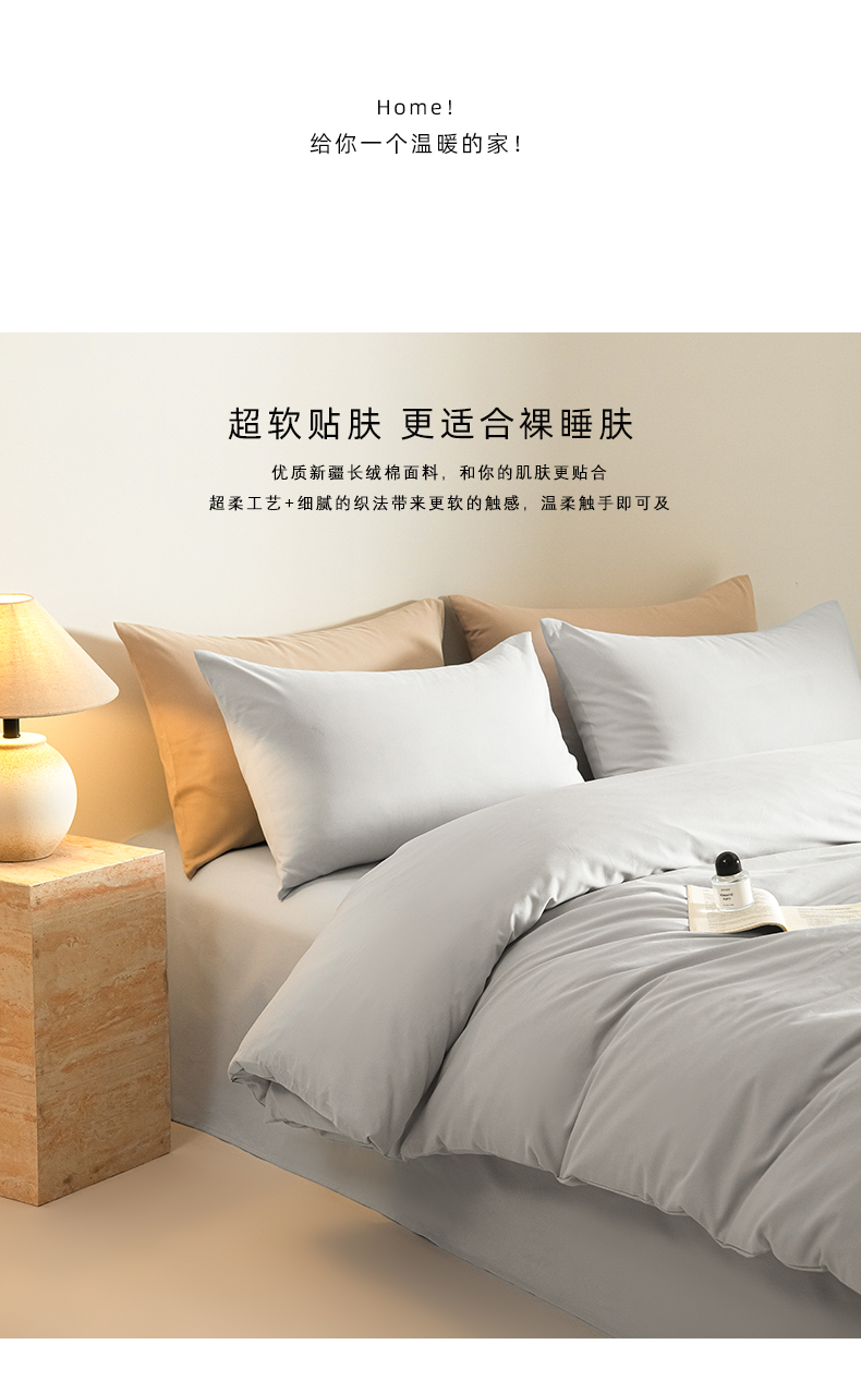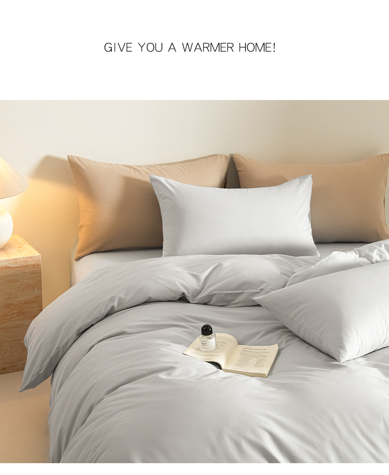 Mr.pig猪先生水洗棉 2024新款A类50全棉磨毛单品-四件套 松灰
