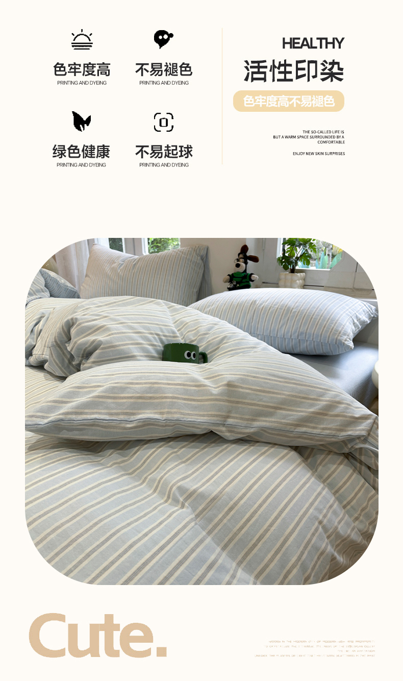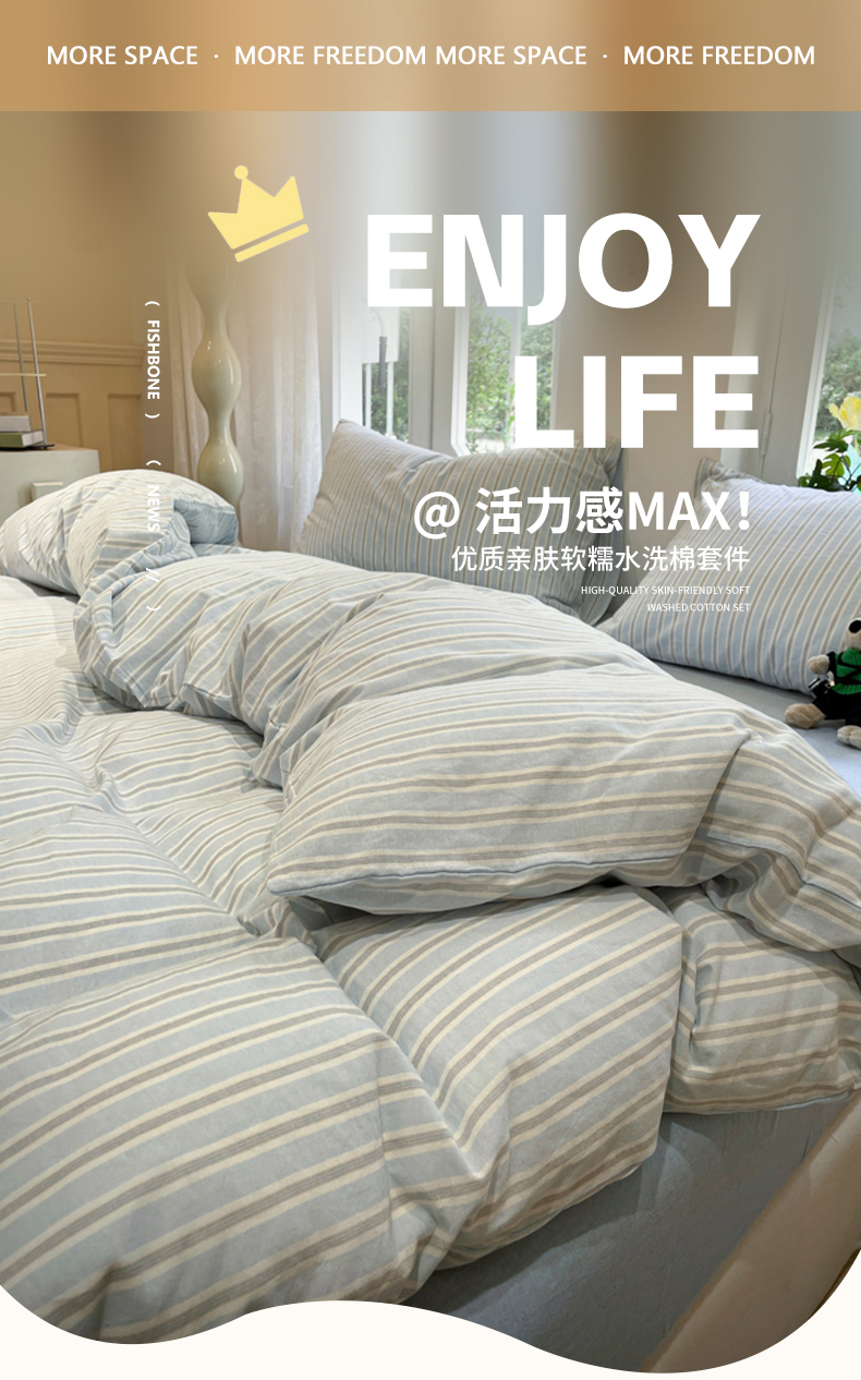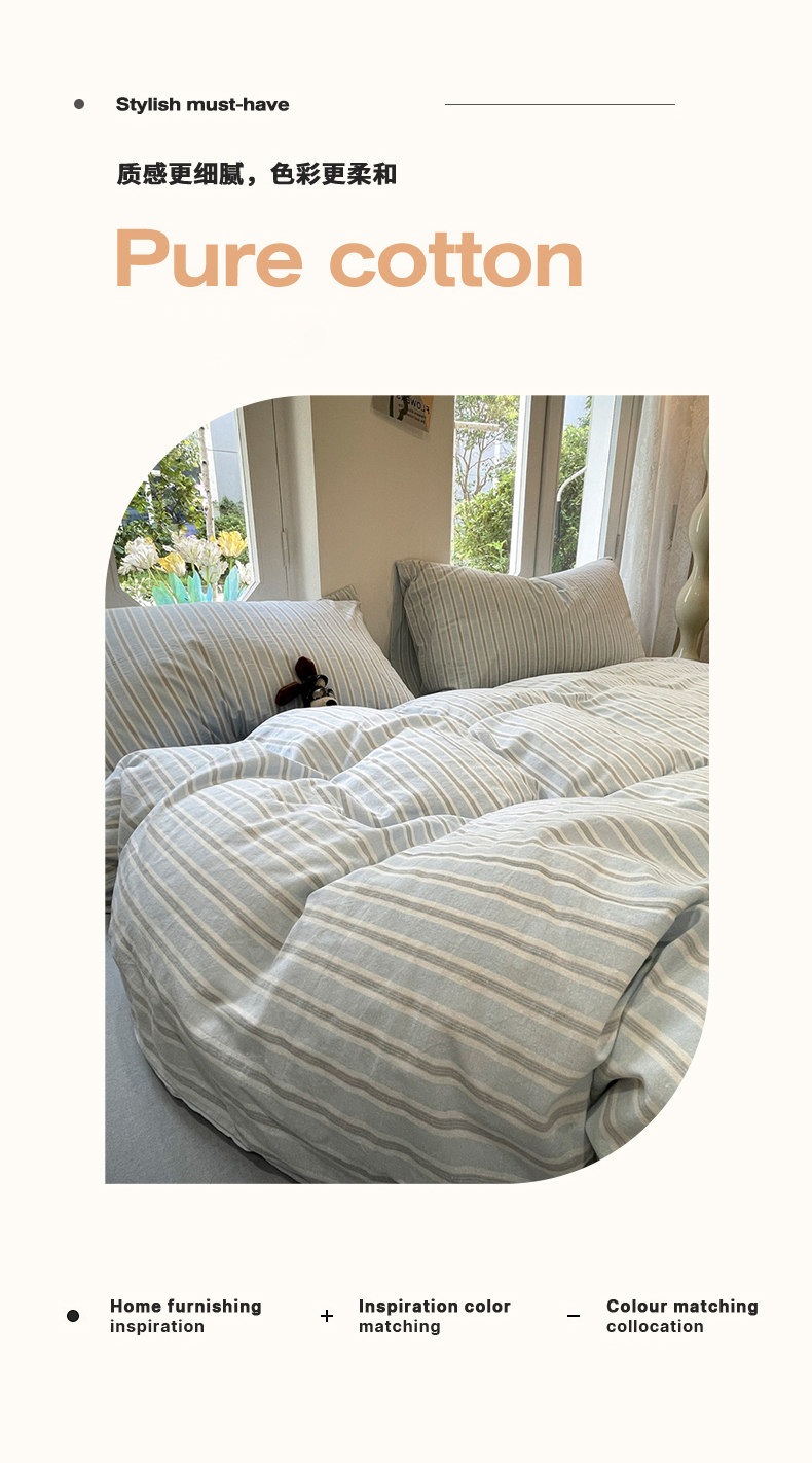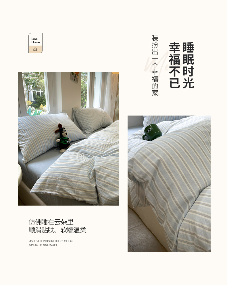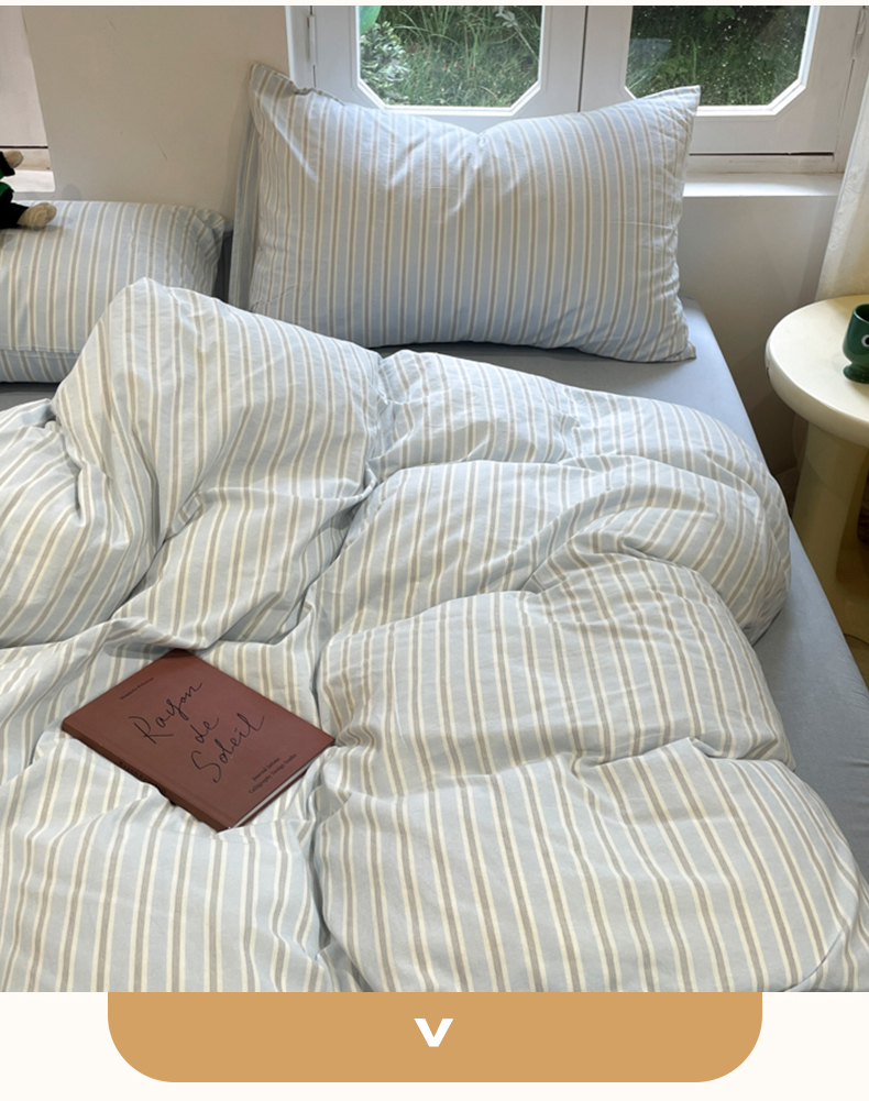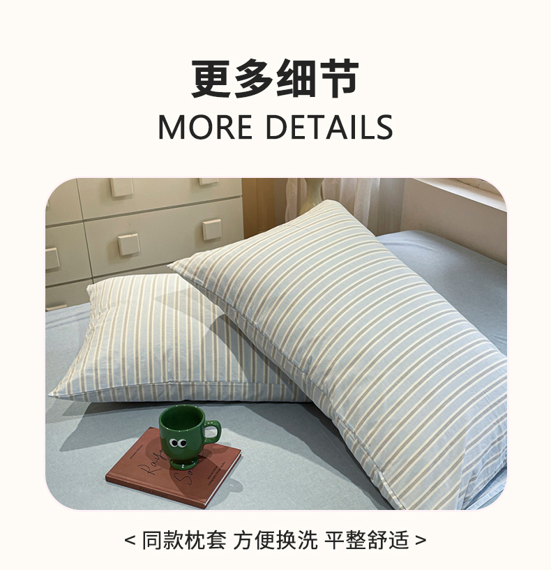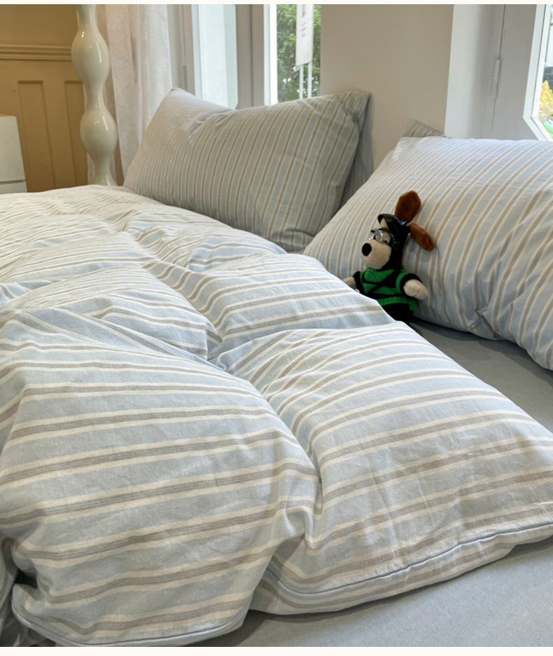 当前位置: 91家纺网 > 商品网购 > 床品套件 > 四件套 > 水洗棉四件套 > 欣晴家纺 2024新款软糯亲肤云朵棉无印风条格水洗棉三件套四件套 塞西蓝