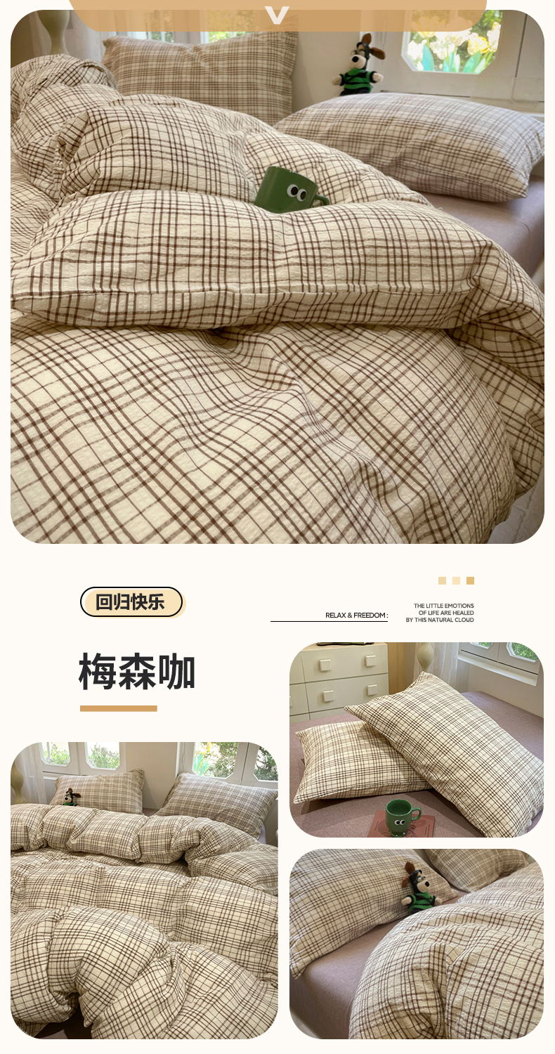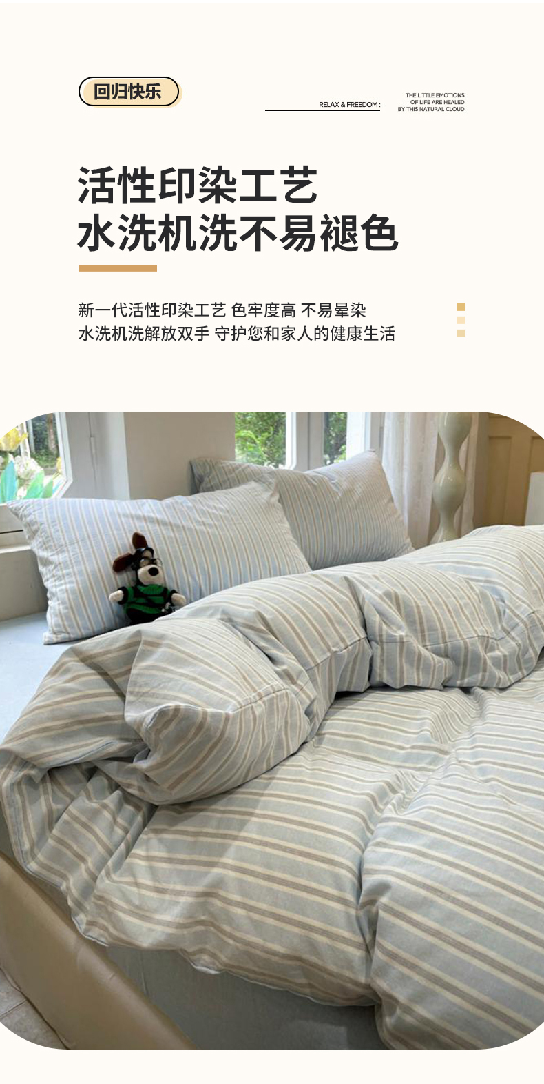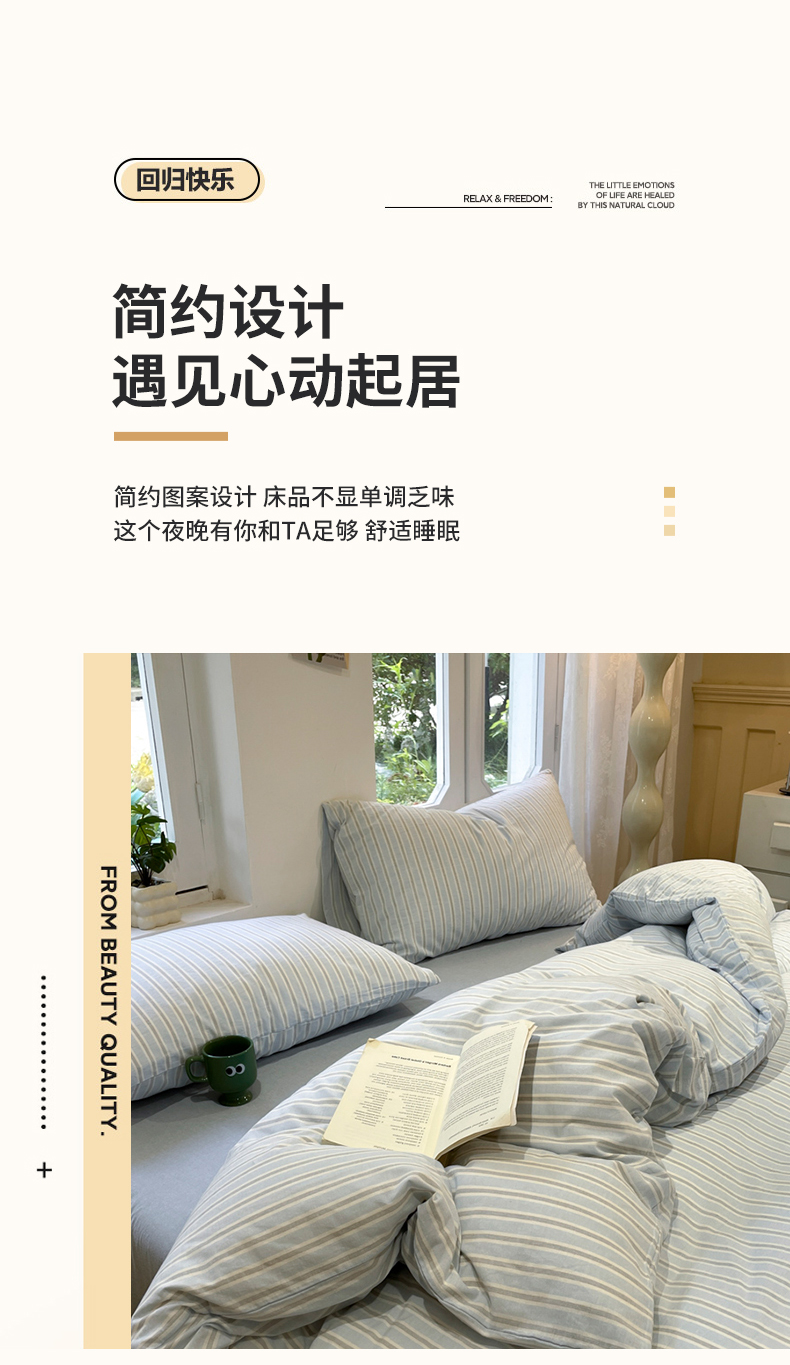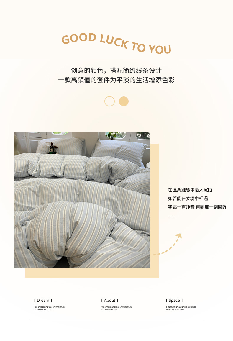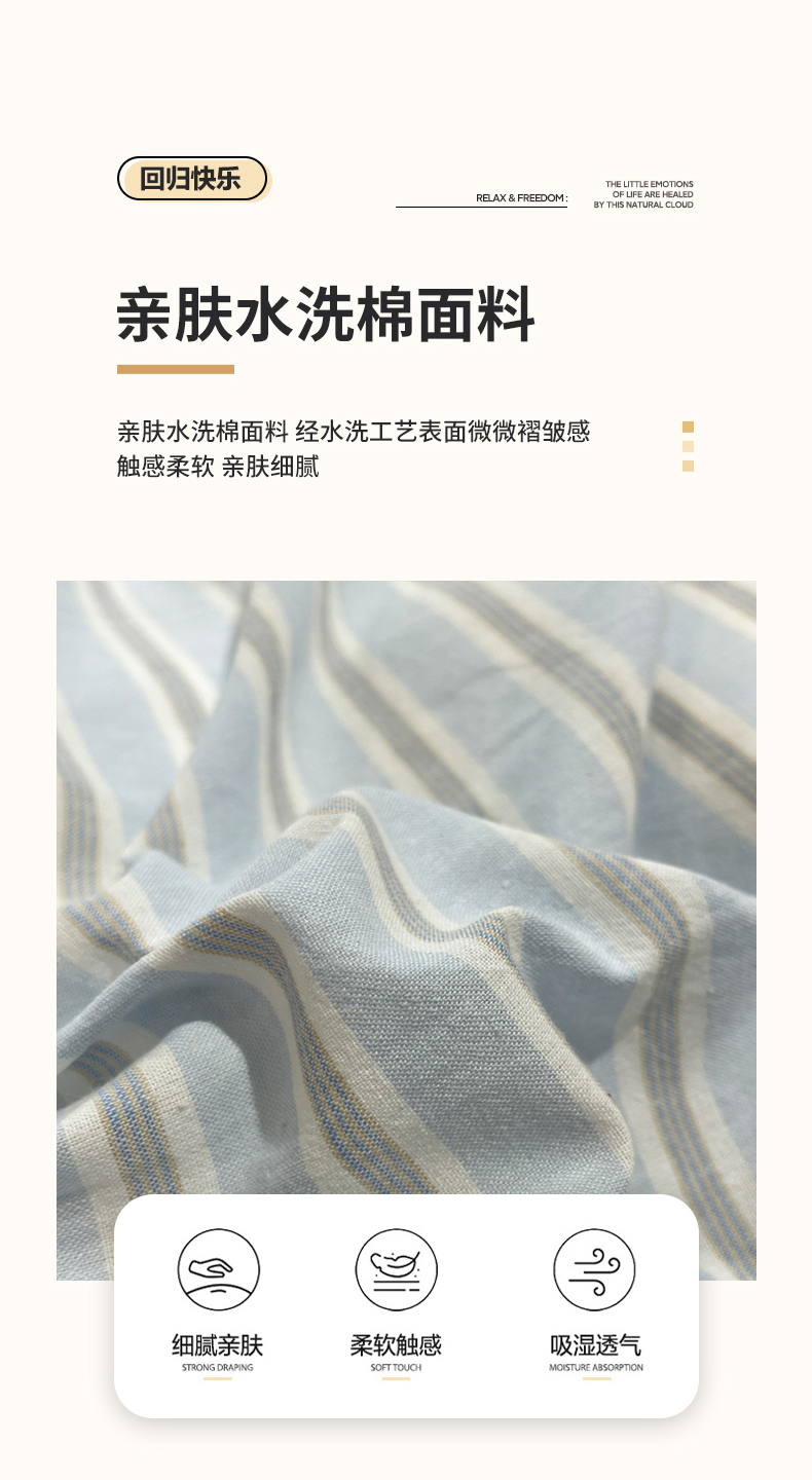 当前位置: 91家纺网 > 商品网购 > 床品套件 > 四件套 > 水洗棉四件套 > 欣晴家纺 2024新款软糯亲肤云朵棉无印风条格水洗棉三件套四件套 塞西蓝