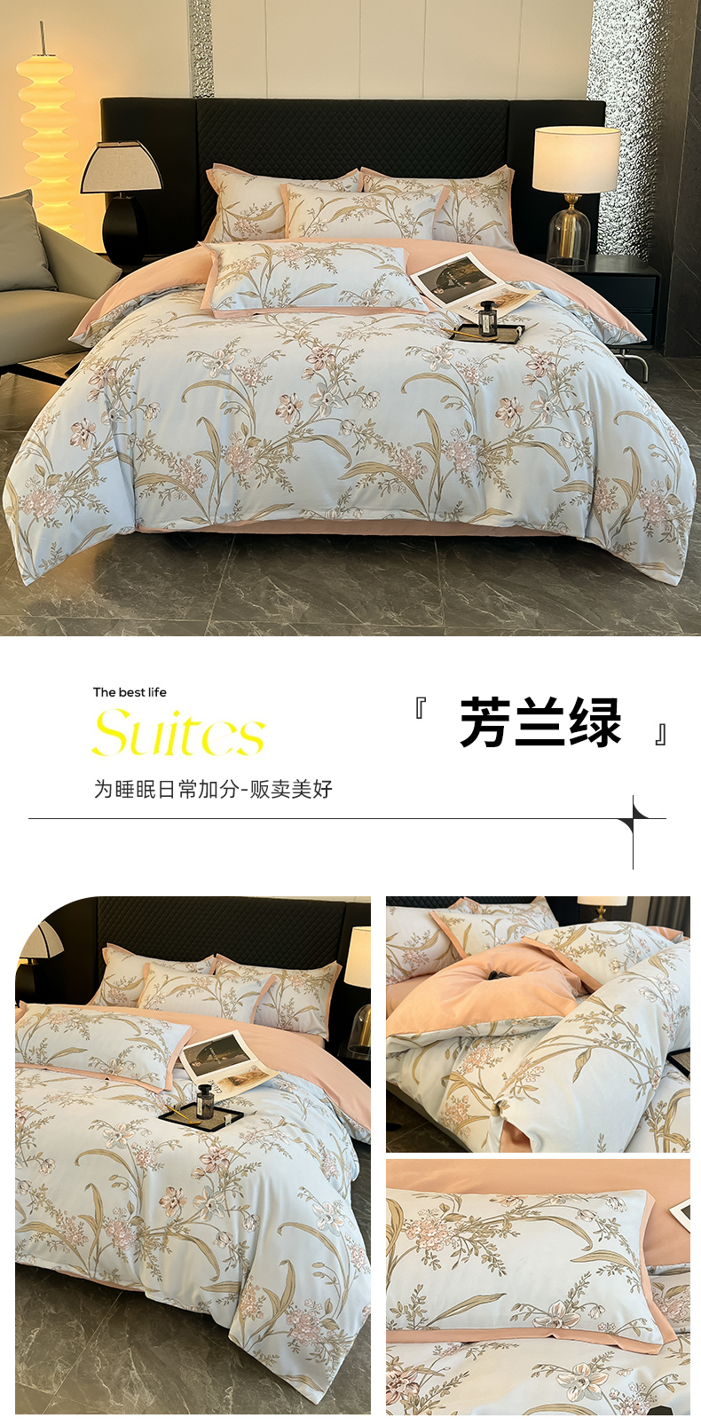 玉海棠家纺 2024新款锦棉印花四件套 芳兰绿