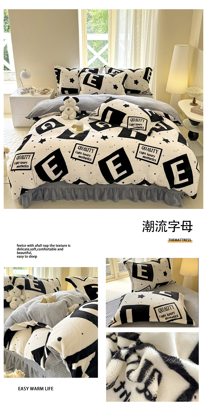 商品名称:富之航 2024新款印花牛奶绒床盖四件套 潮流字母