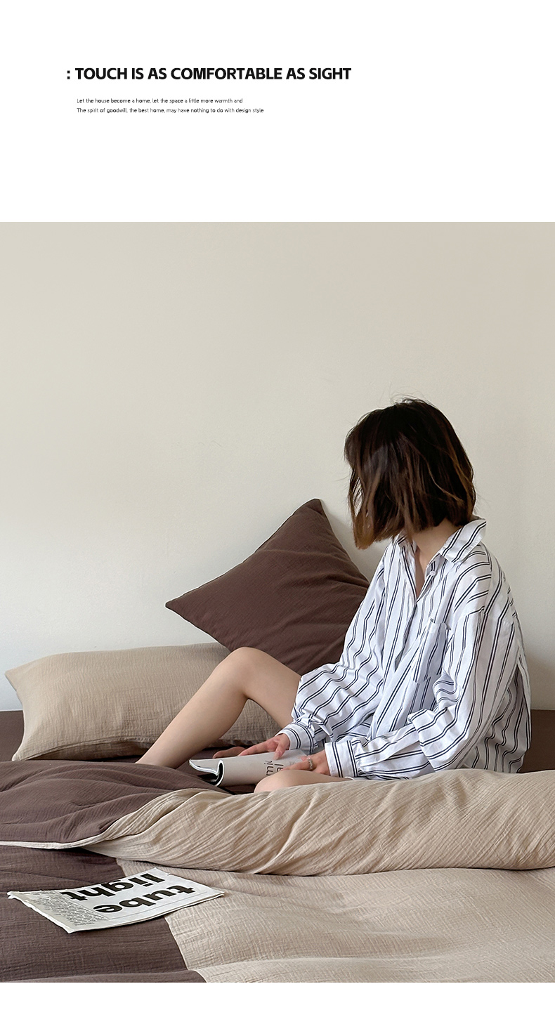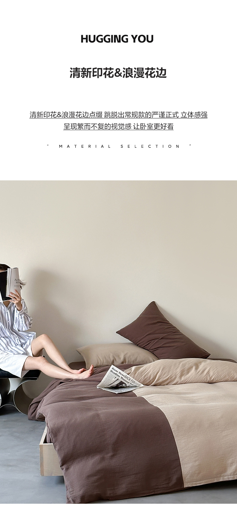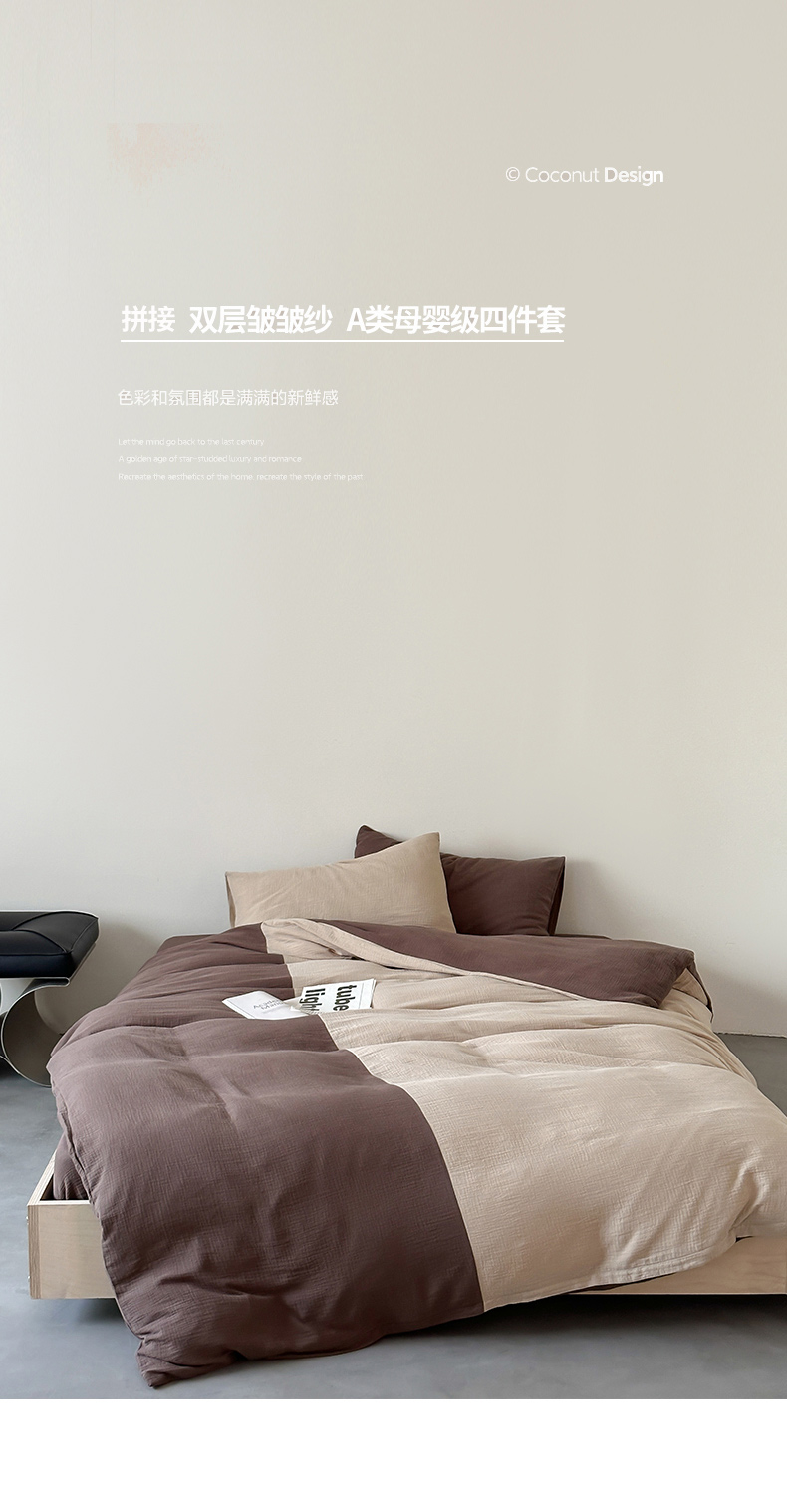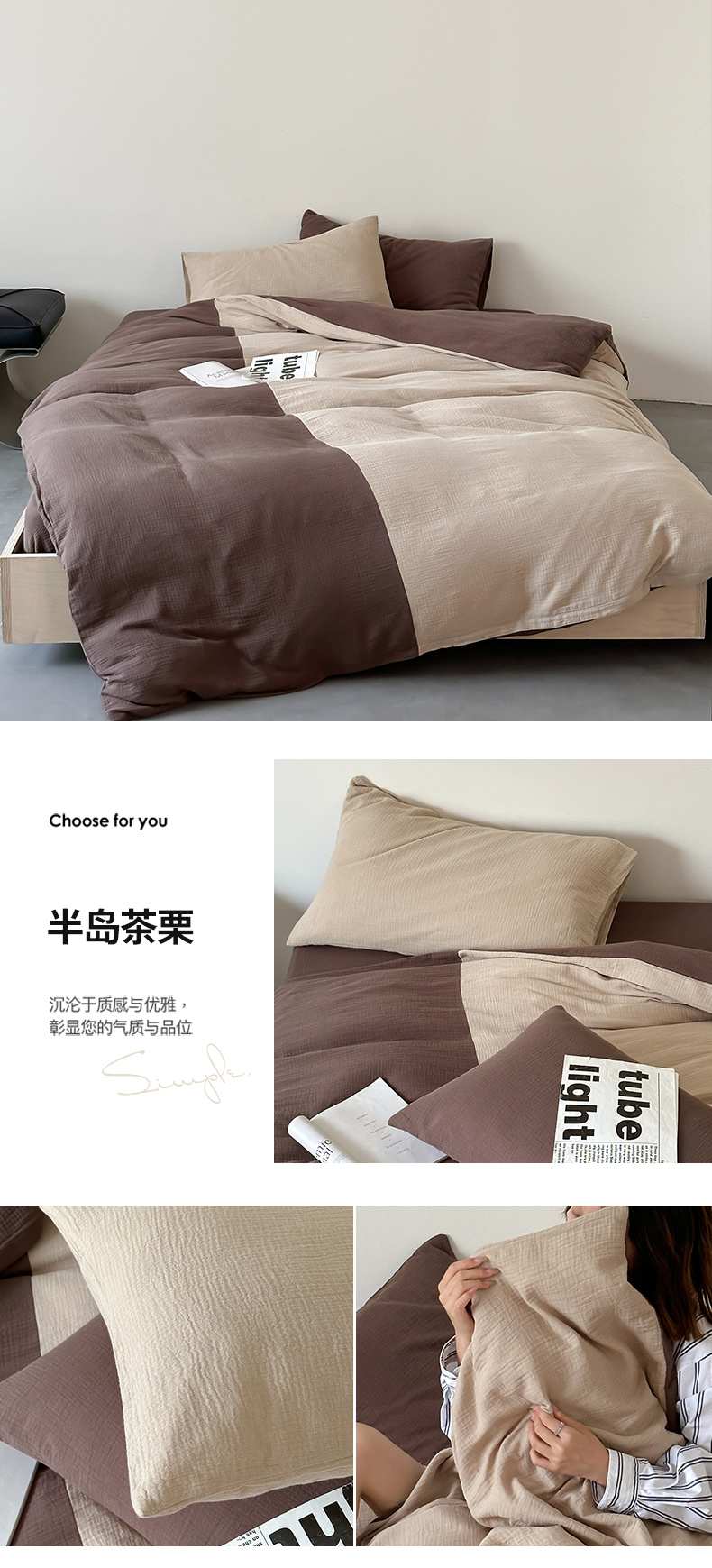 商品名称:山舍家居 2024新款原创格调全棉双层纱四件套系列 半岛茶栗