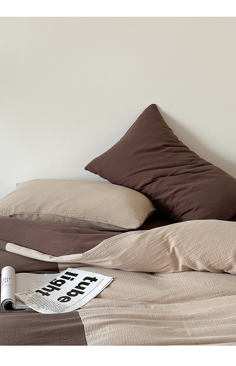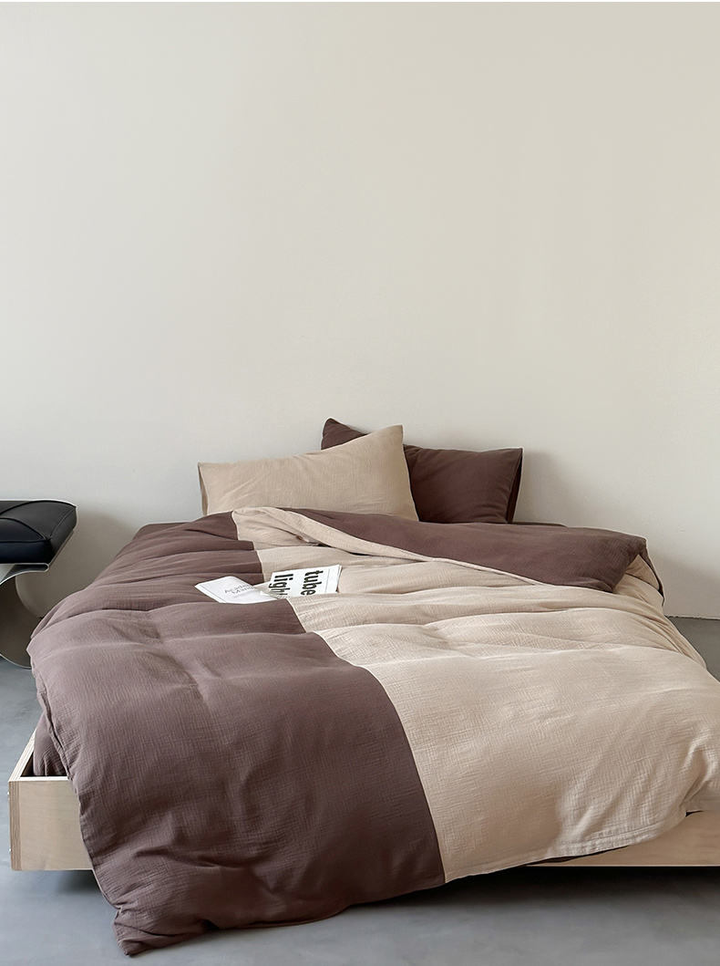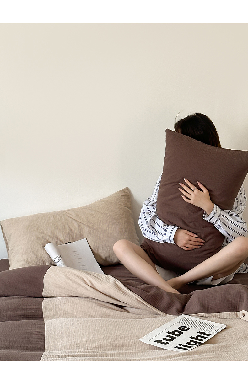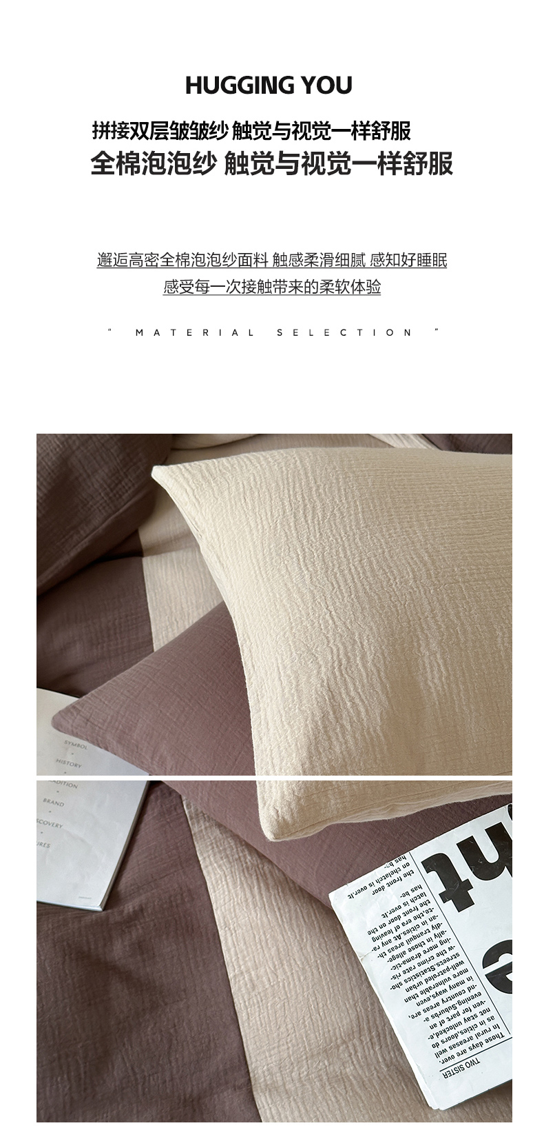 商品名称:山舍家居 2024新款原创格调全棉双层纱四件套系列 半岛茶栗