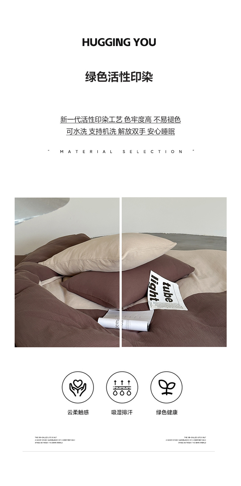(总)山舍家居 2022新款双层纱布四件套,莱茵蓝,清绿,透白,雅灰,芥黄,裸粉,茶卡,甜白,星蓝,摩卡