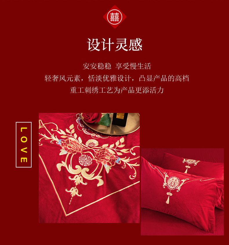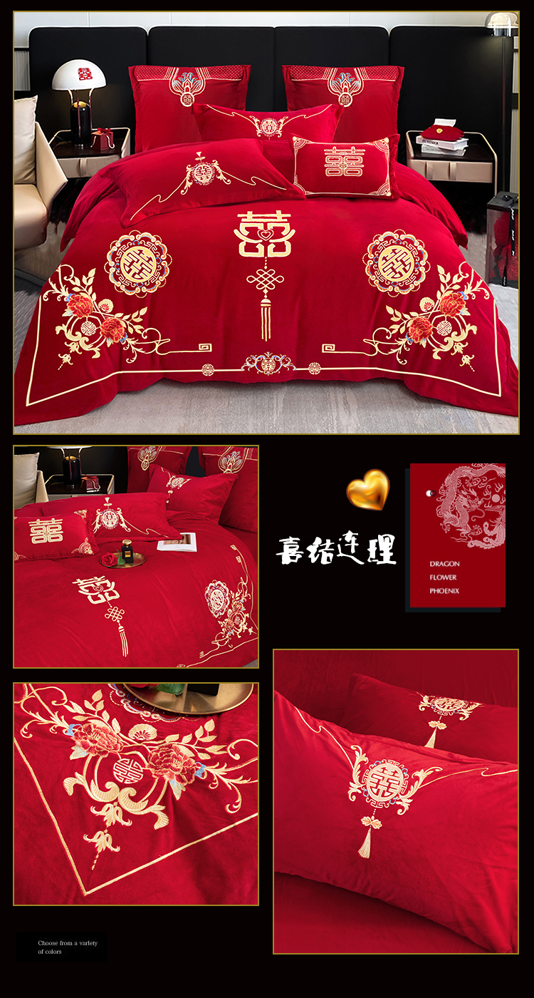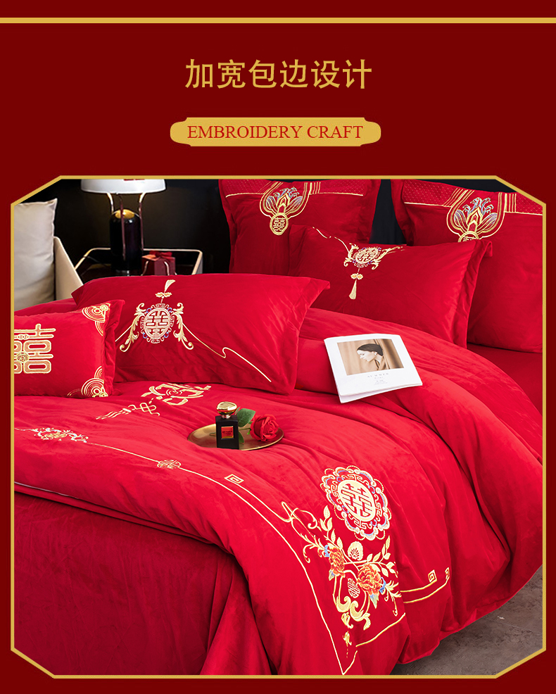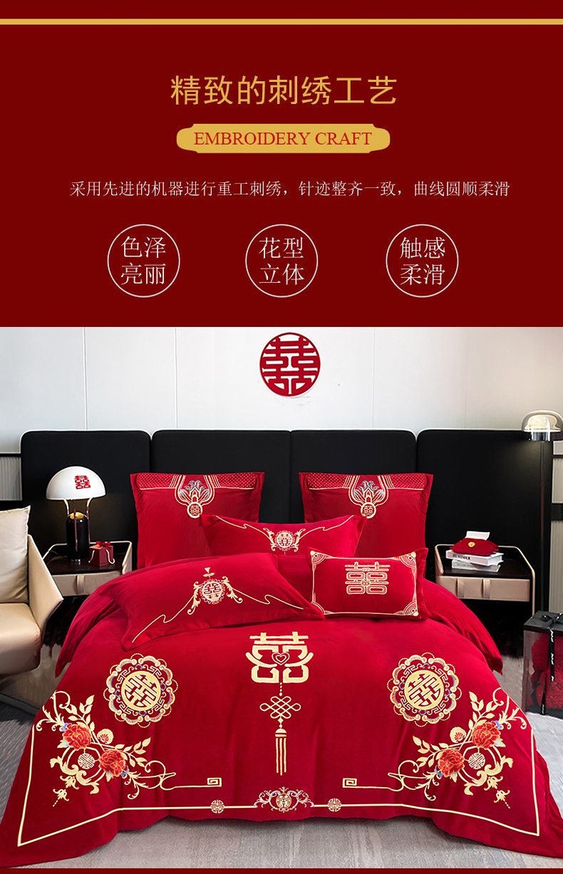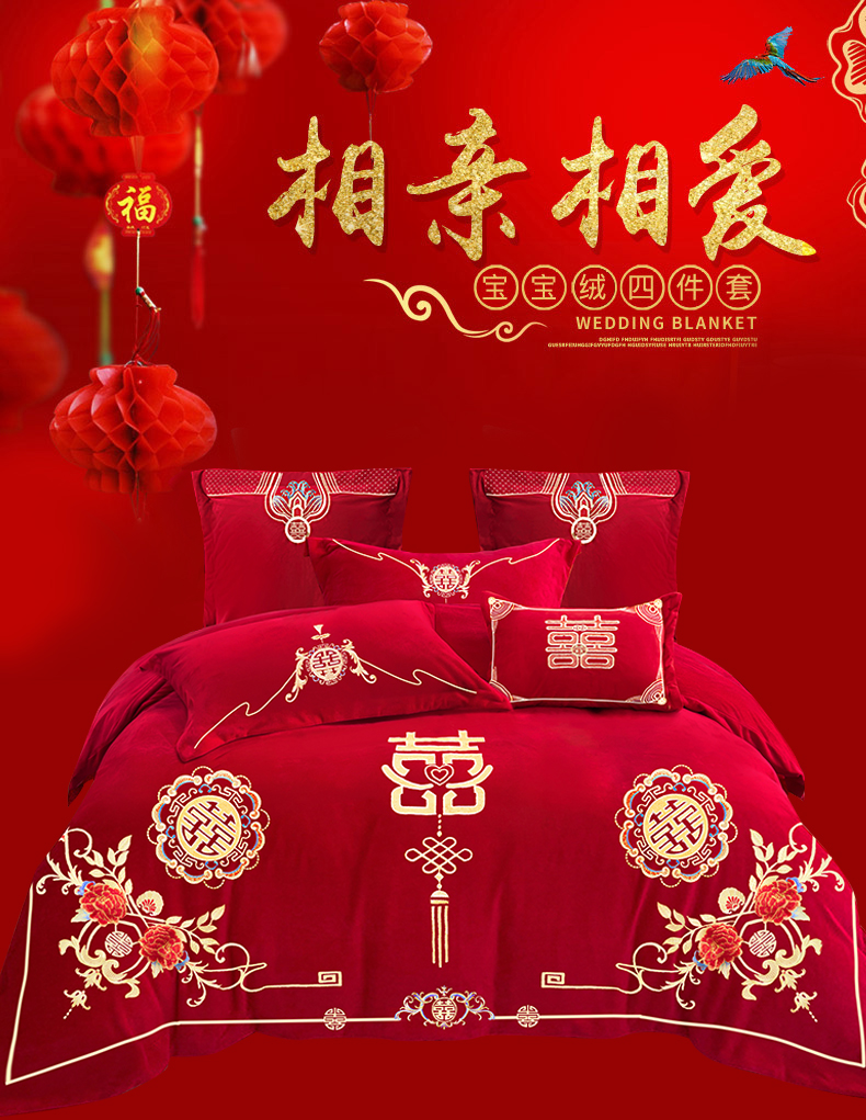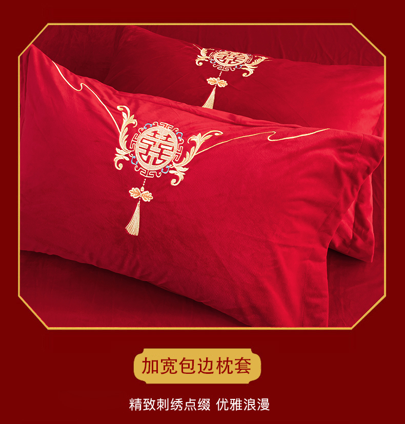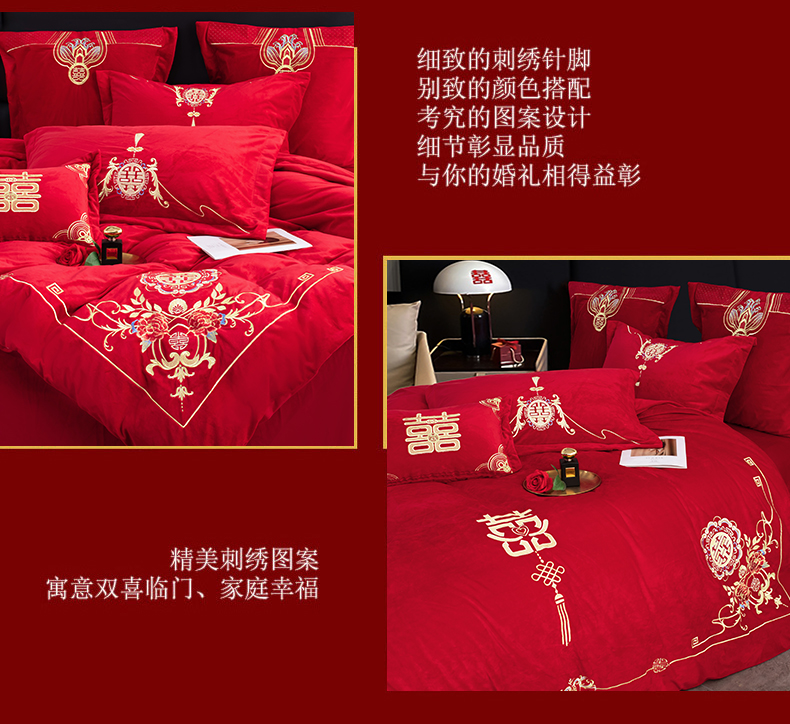 当前位置: 91家纺网 > 商品网购 > 床品套件 > 四件套 > 婚庆四件套 > 芊囍纺 2024新款刺绣宝宝绒婴儿绒牛奶绒婚庆四件套 喜结连理