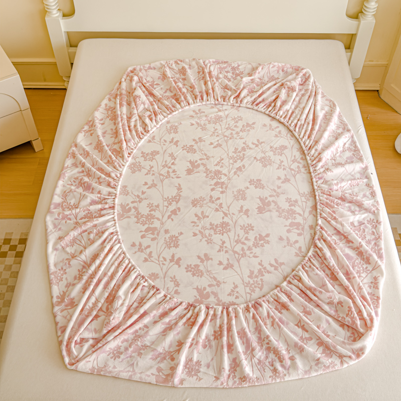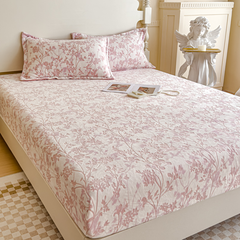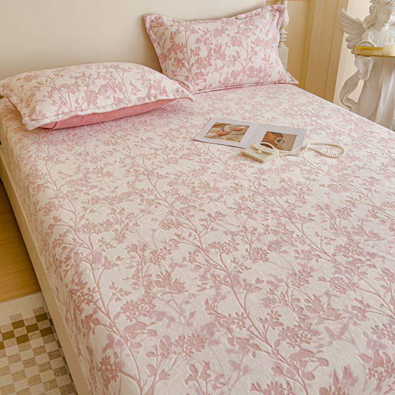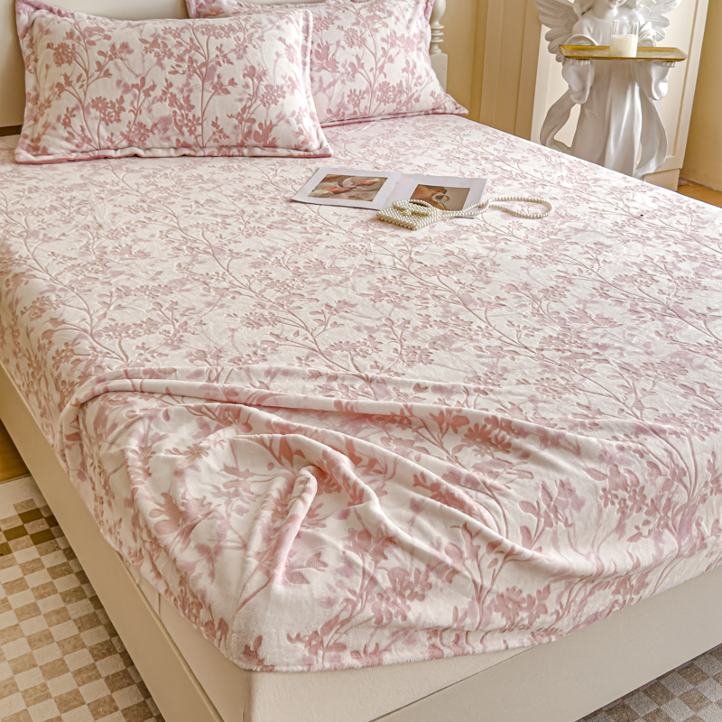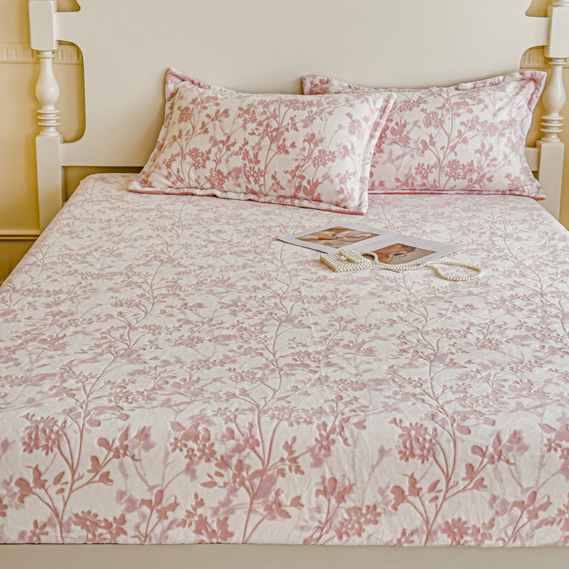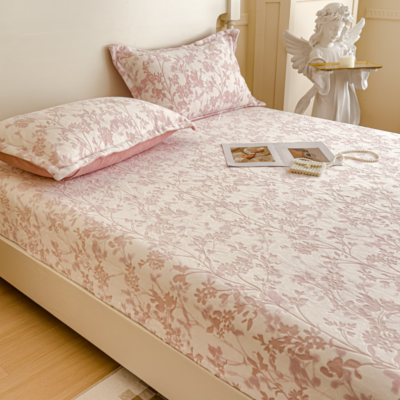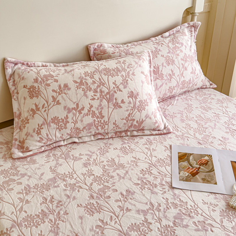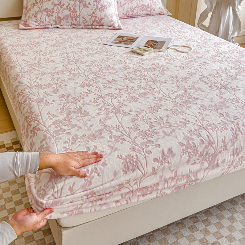 金丝鸟家纺 2024新款加厚240g立体雕花牛奶绒床笠 繁花 粉