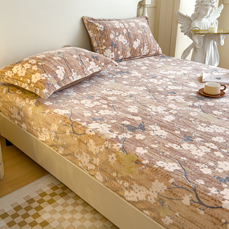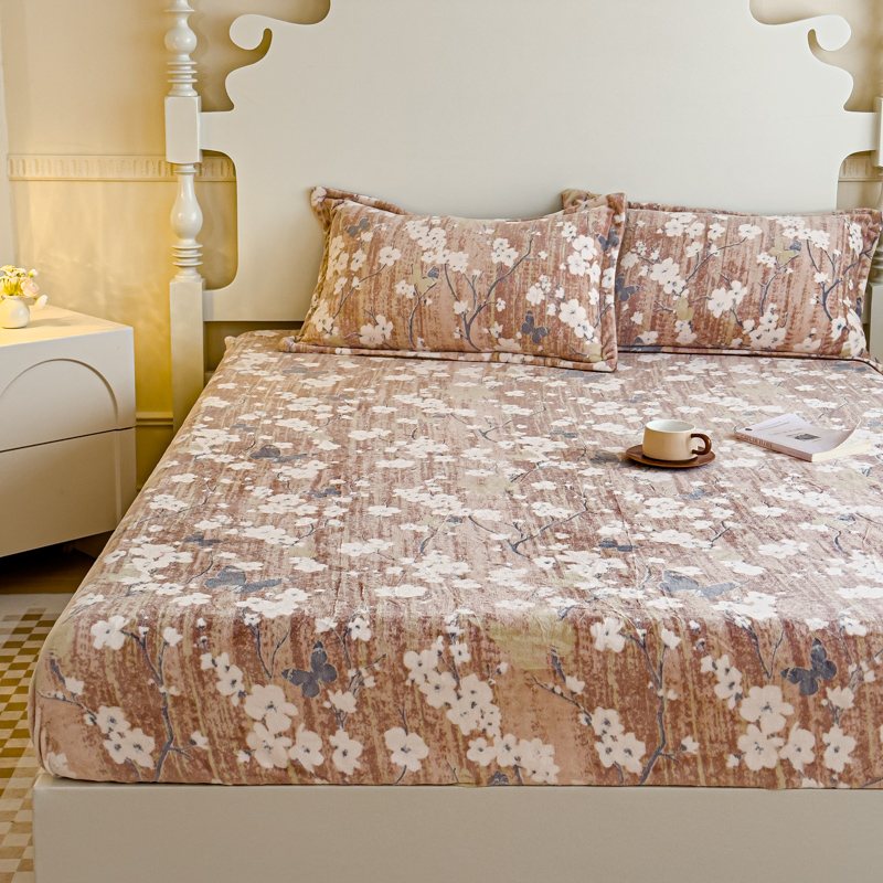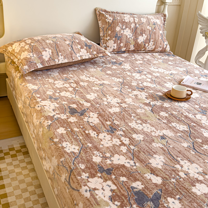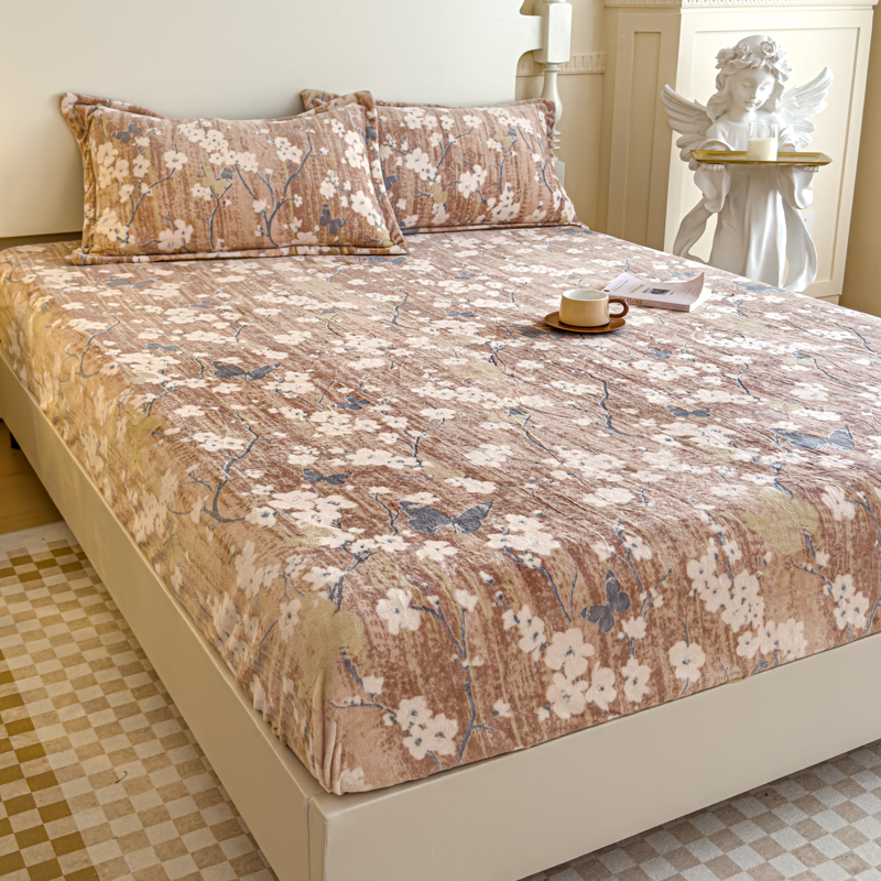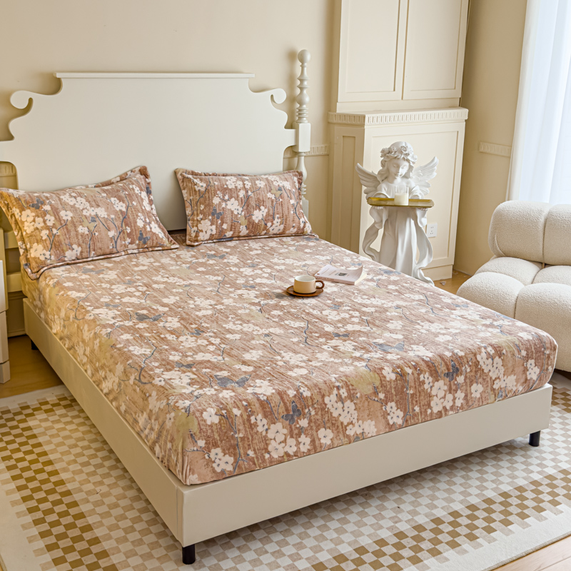 金丝鸟家纺 2024新款加厚240g立体雕花牛奶绒床笠 蝴蝶花 咖