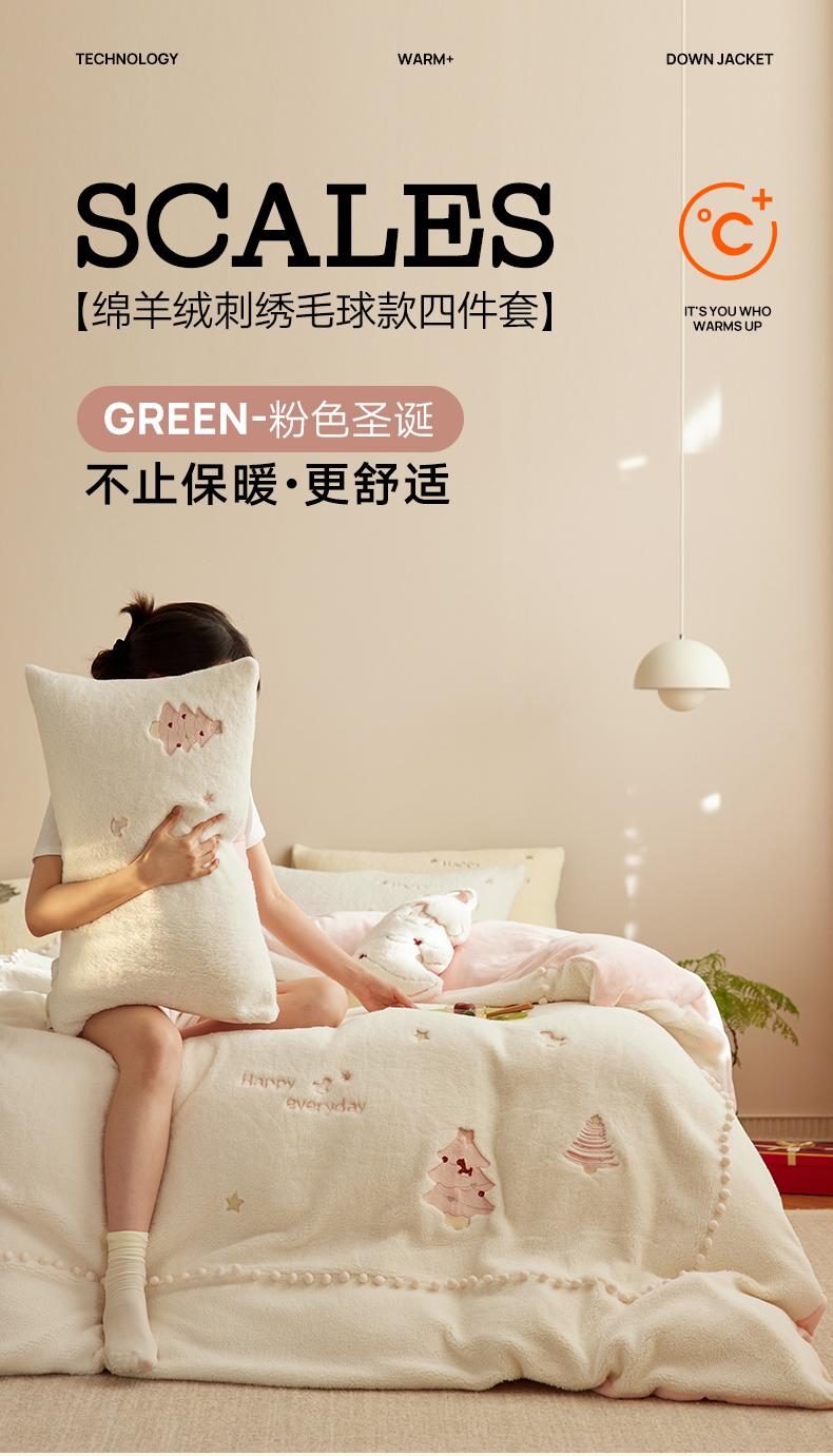 当前位置: 91家纺网 > 商品网购 > 床品套件 > 四件套 > 其它四件套 > (总)安莱生活 2024新款绵羊绒工艺款圣诞毛球四件套