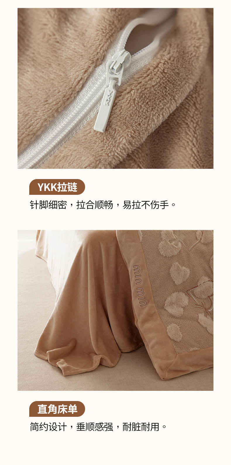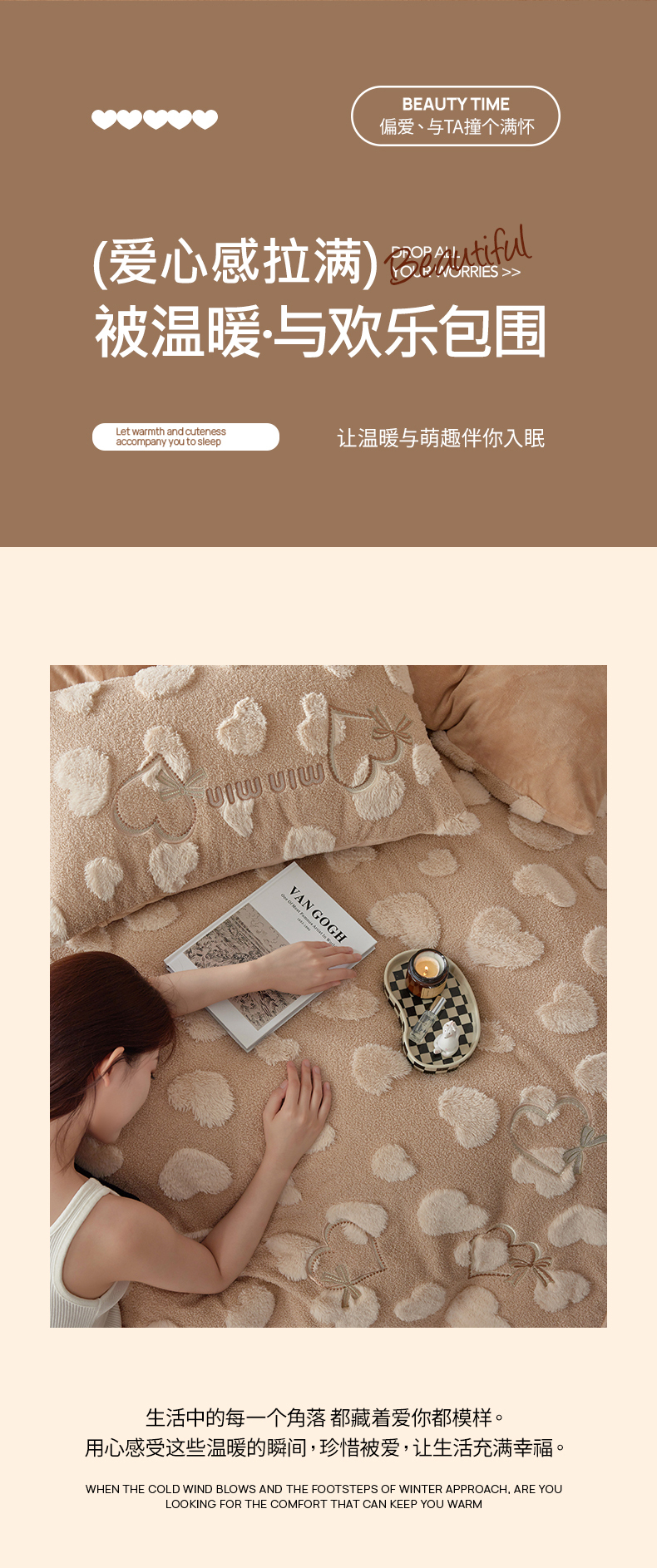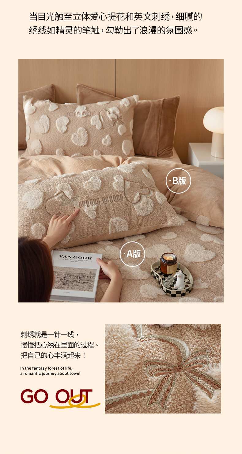 安莱生活 2024新款minmin泰迪绒立体提花爱心四件套 爱心绒-奶茶杏