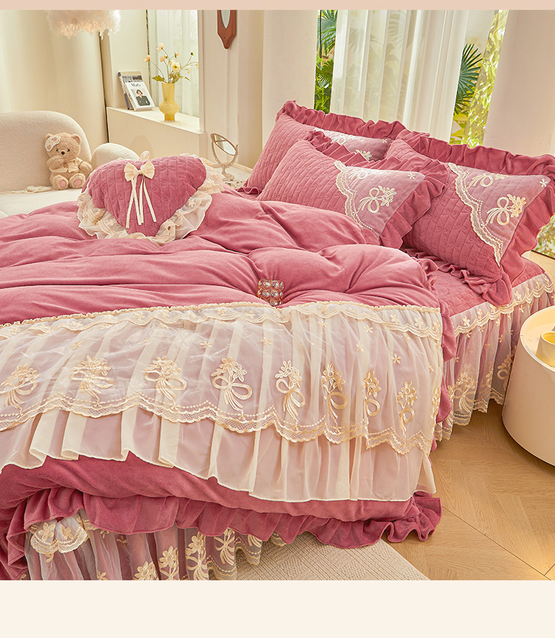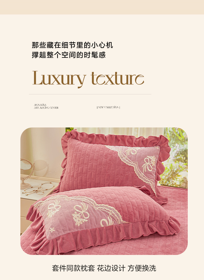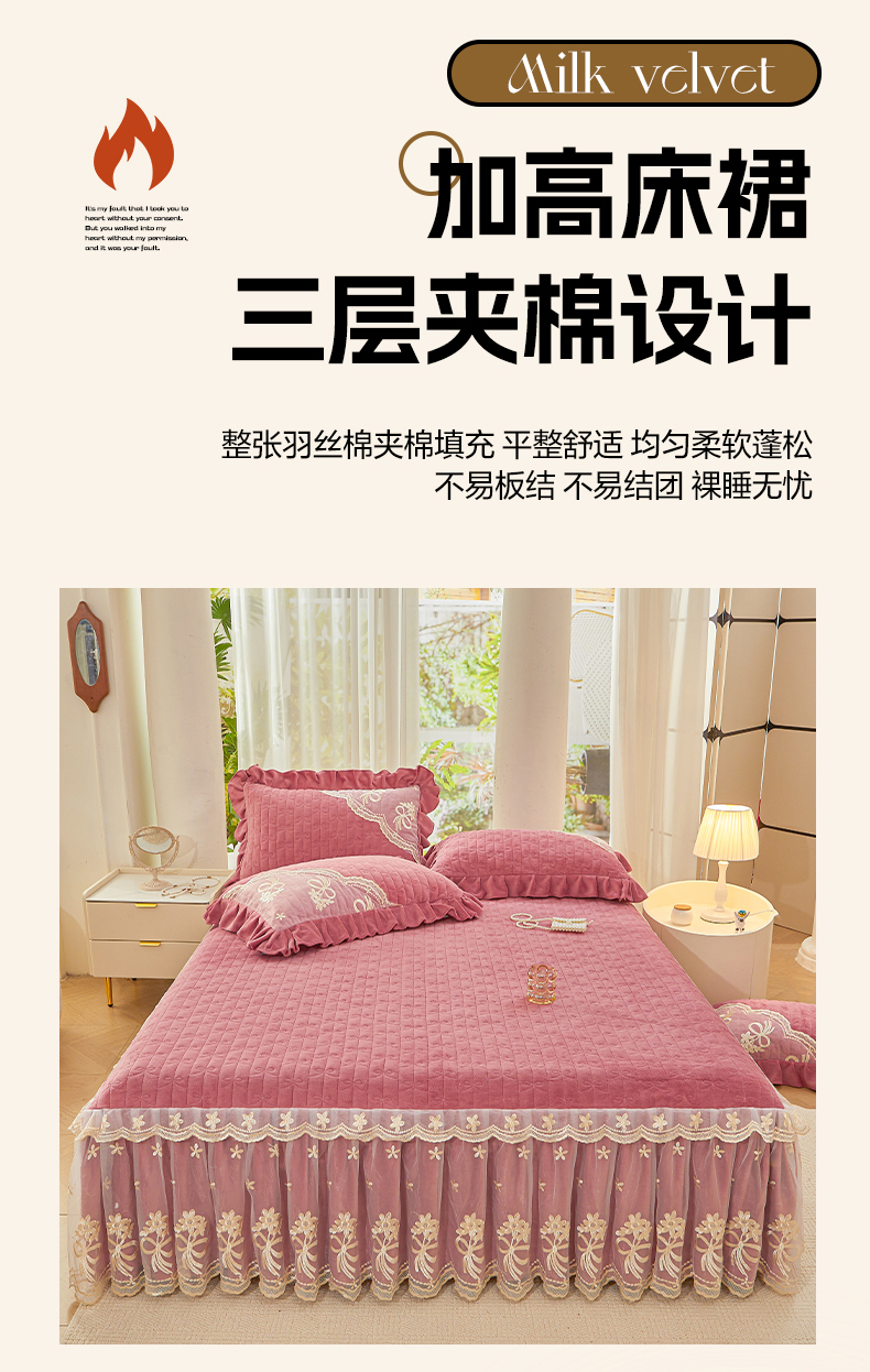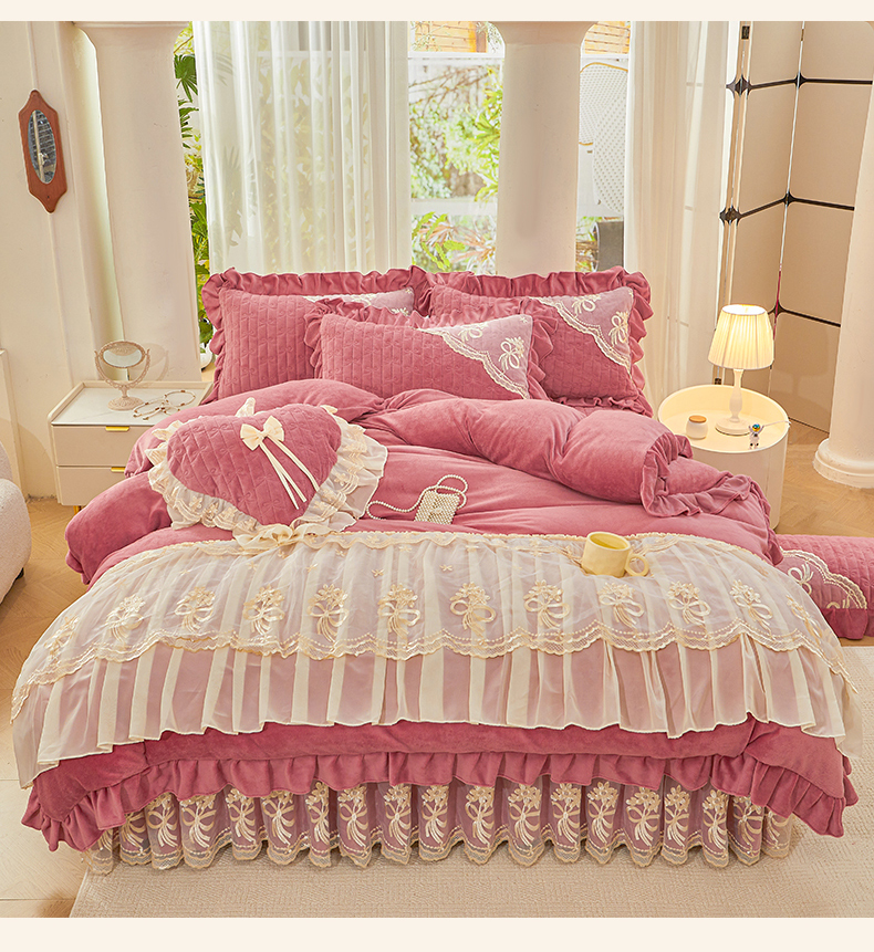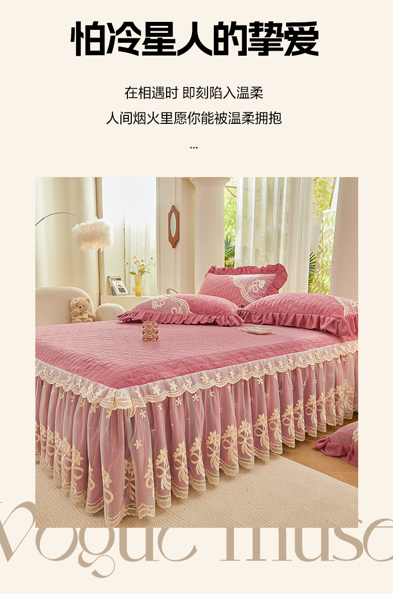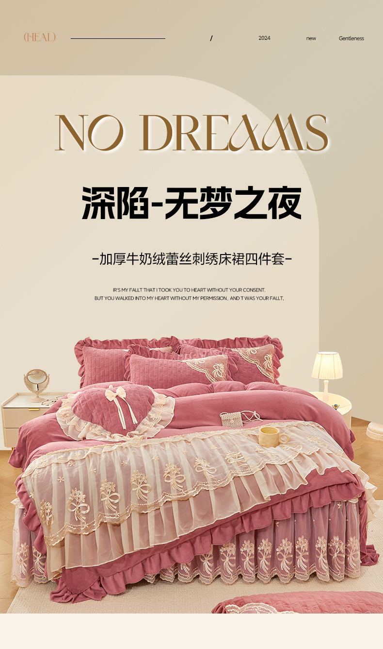 当前位置: 91家纺网 > 商品网购 > 床品套件 > 四件套 > 牛奶绒四件套 > 2024新款加厚牛奶绒蕾丝刺绣床裙四件套-莫奈花园系列 莫奈花园-豆沙红