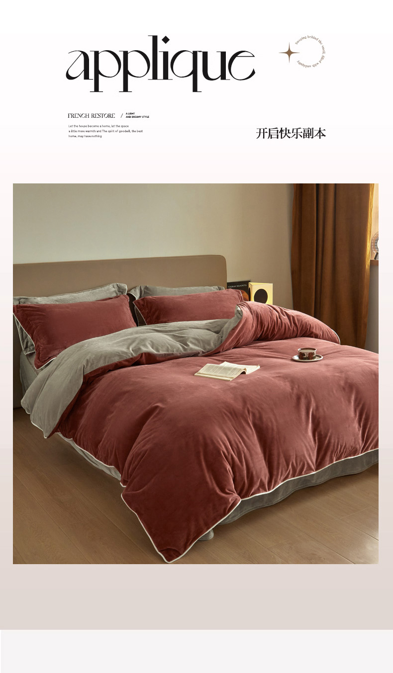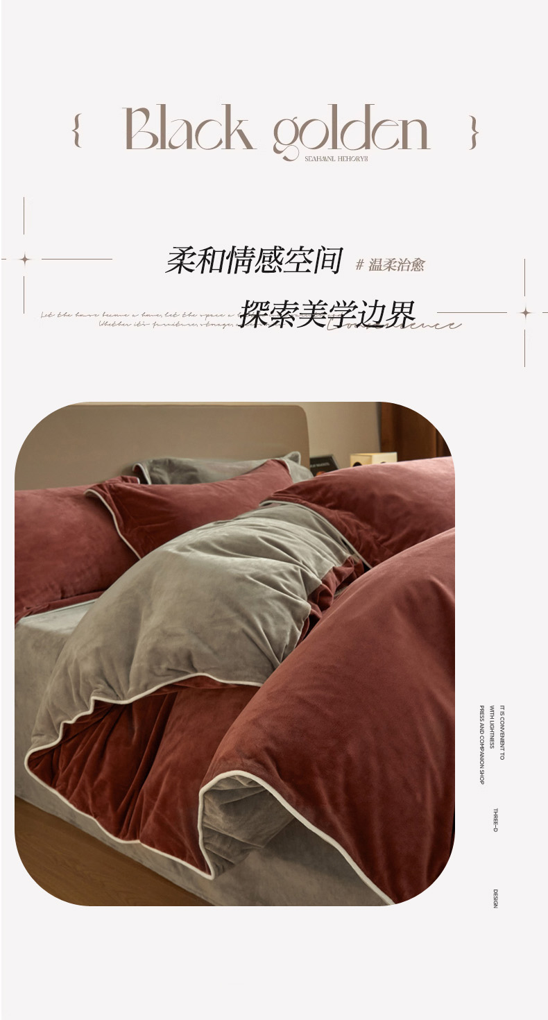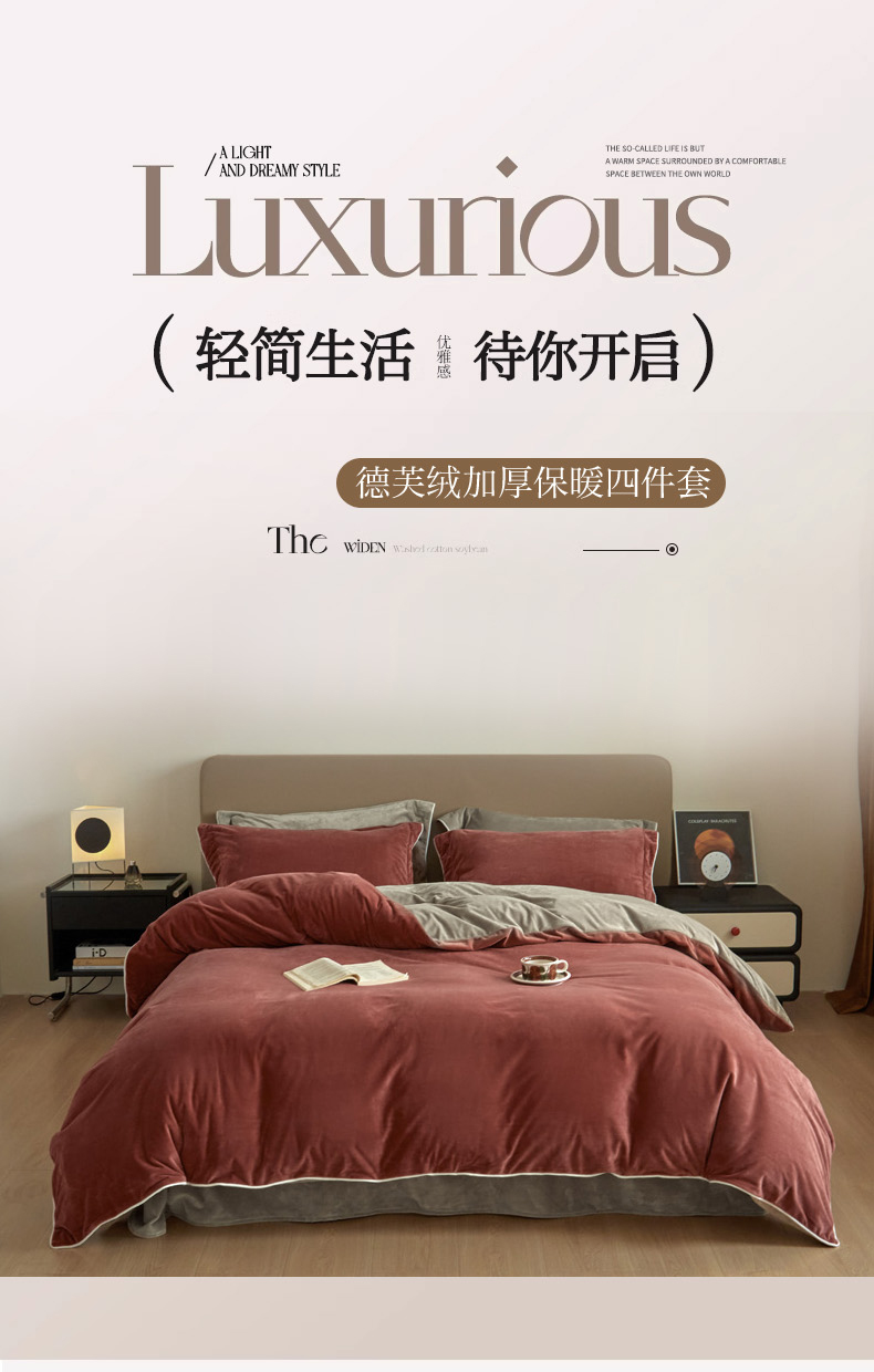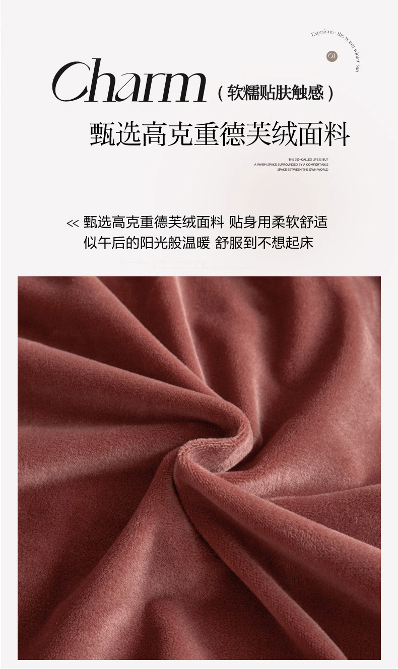当前位置: 91家纺网 > 商品网购 > 床品套件 > 四件套 > 牛奶绒四件套 > 万盛家纺 2025新款德芙绒牛奶绒法莱绒水晶绒双拼四件套 晨曦红-米灰