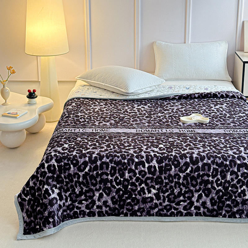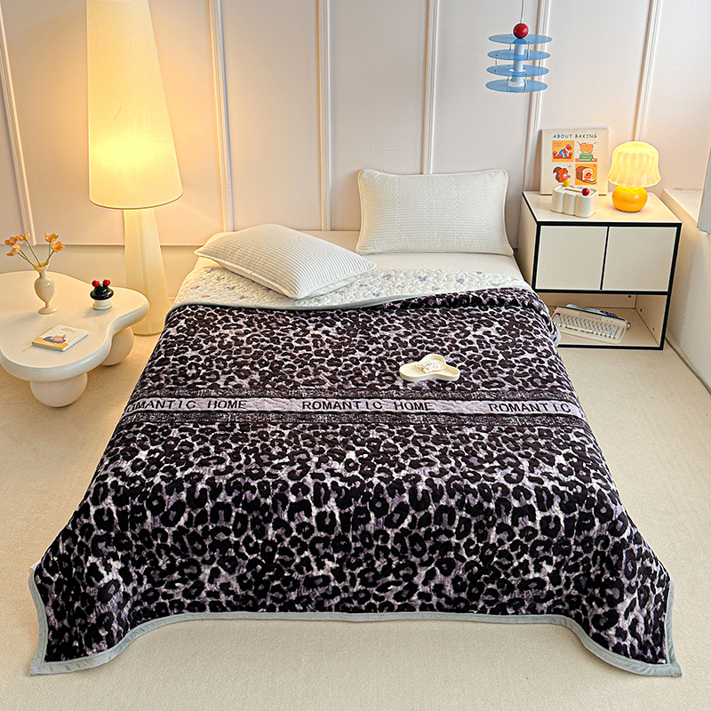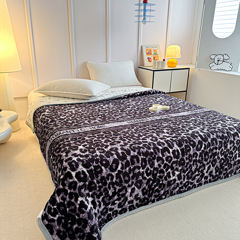 2025新款高克重牛奶绒印花单床盖 豹纹