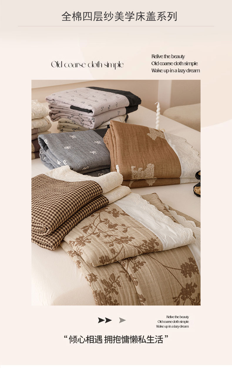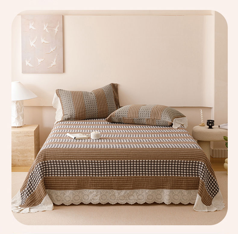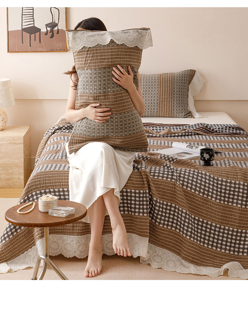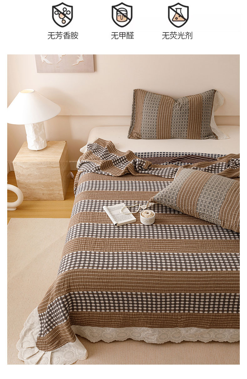 商品名称:麻依 2024新款全棉四层纱美学床盖 条语格格