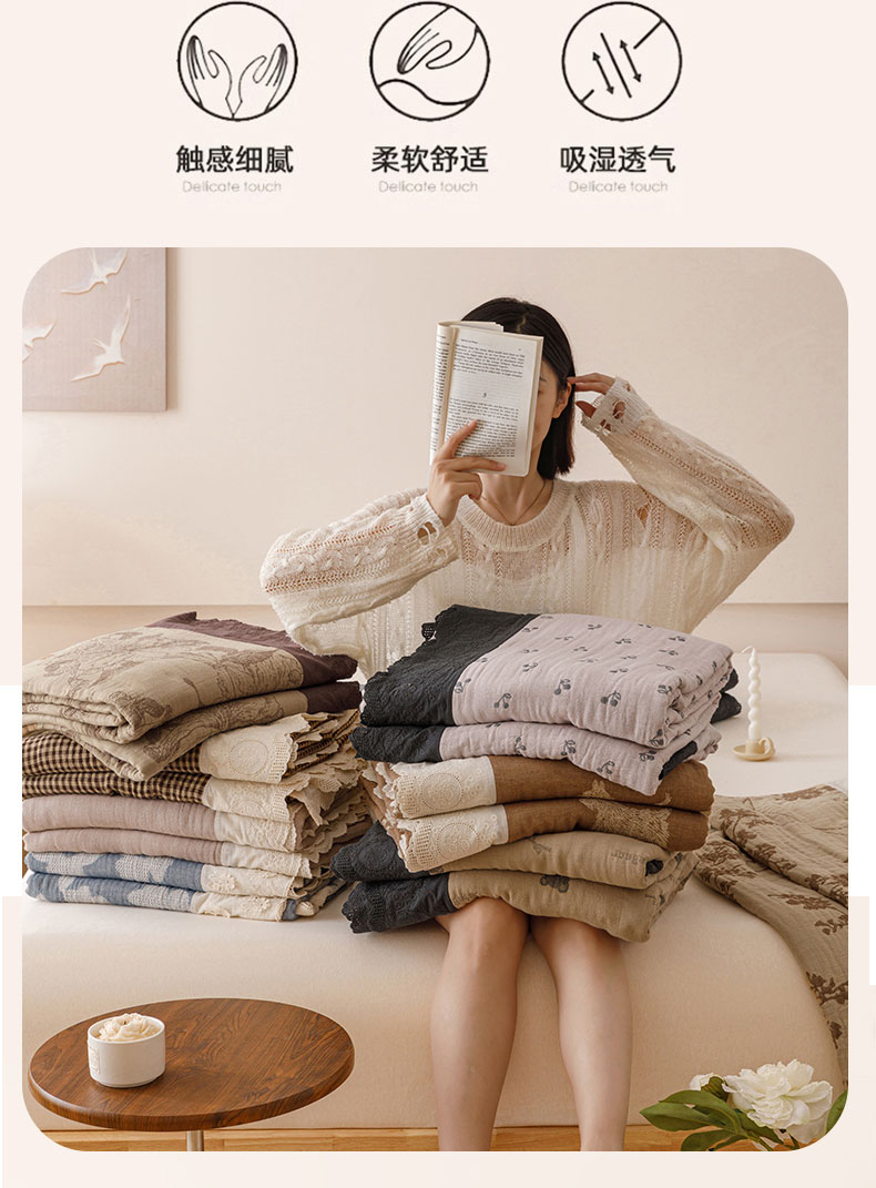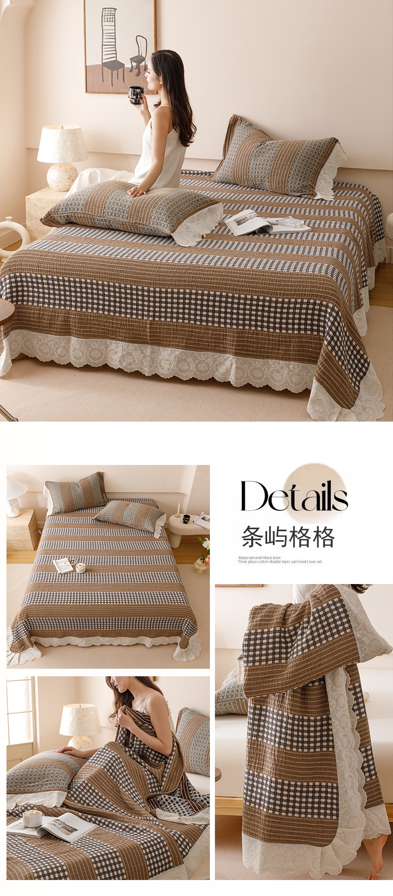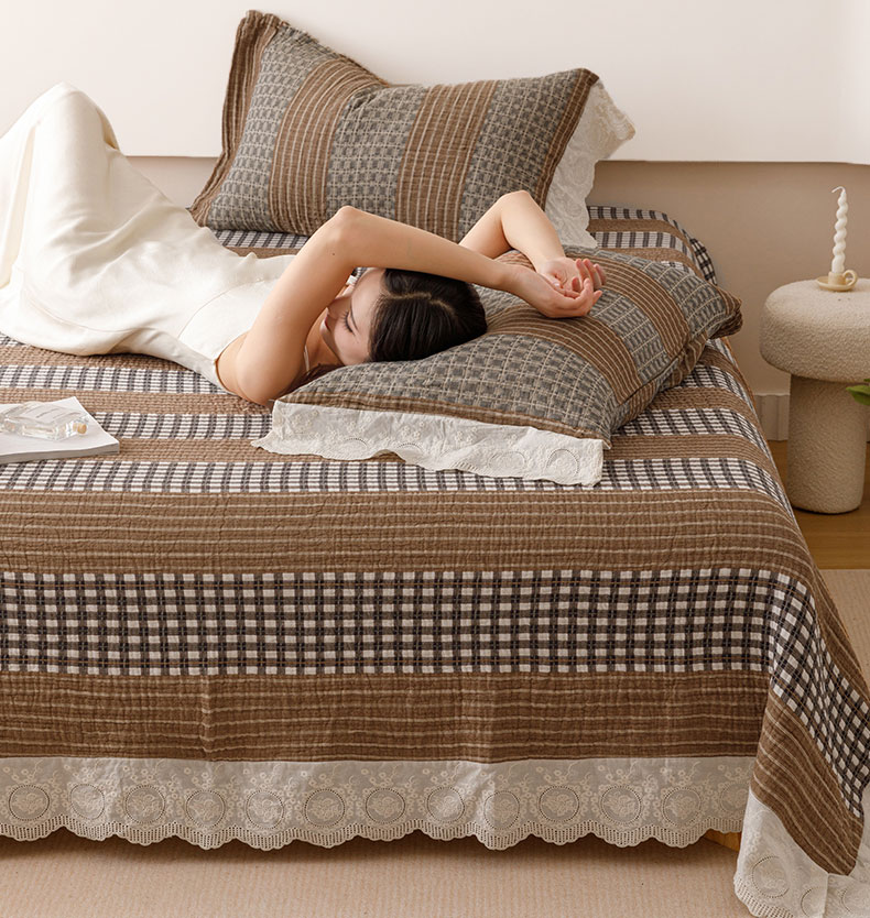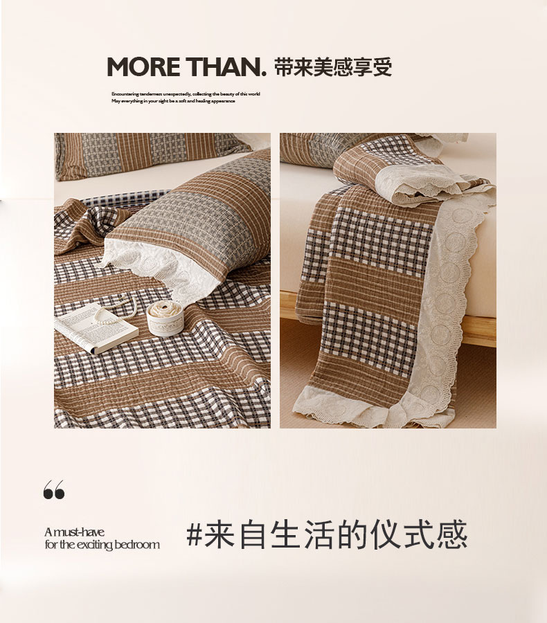 商品名称:麻依 2024新款全棉四层纱美学床盖 条语格格