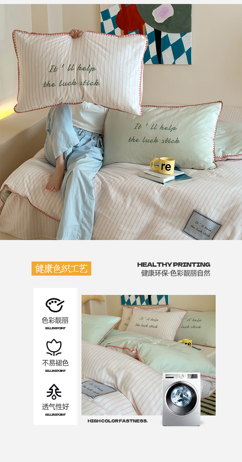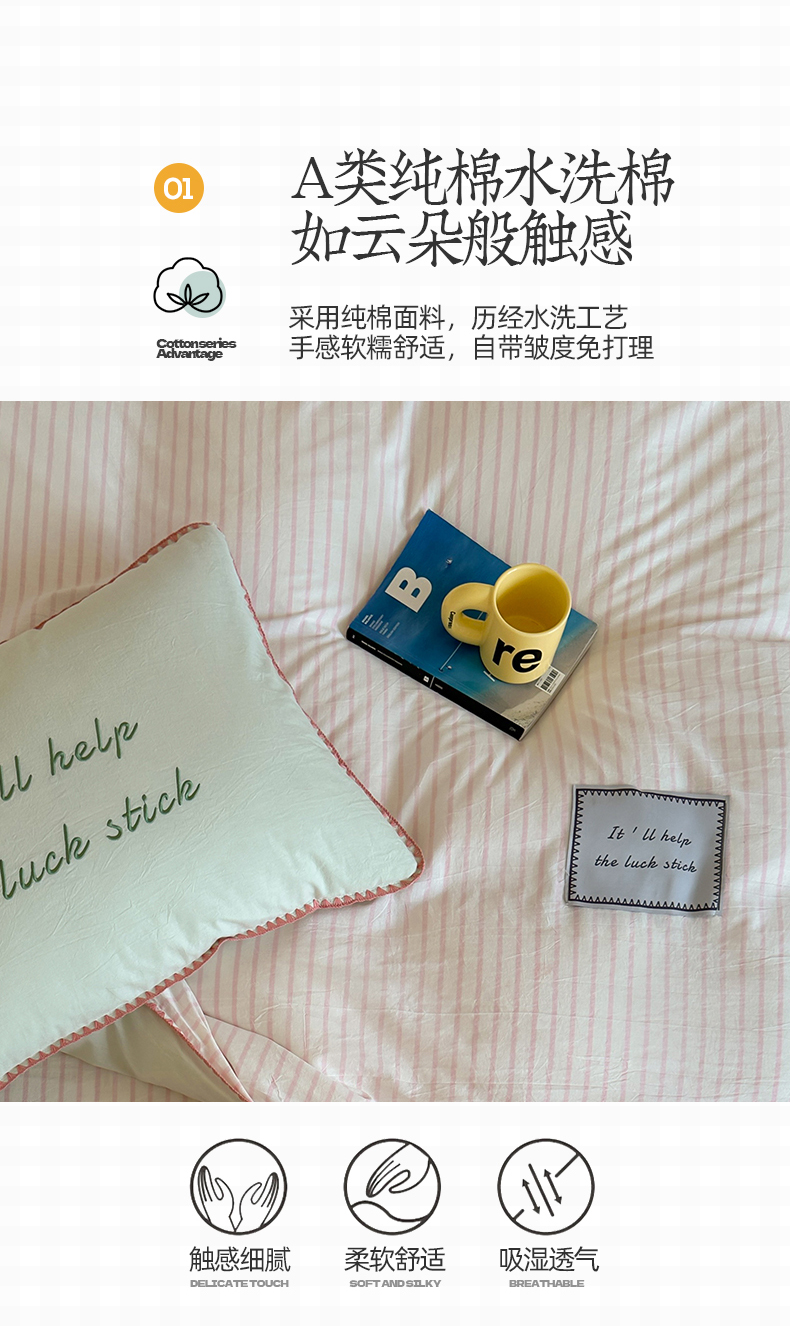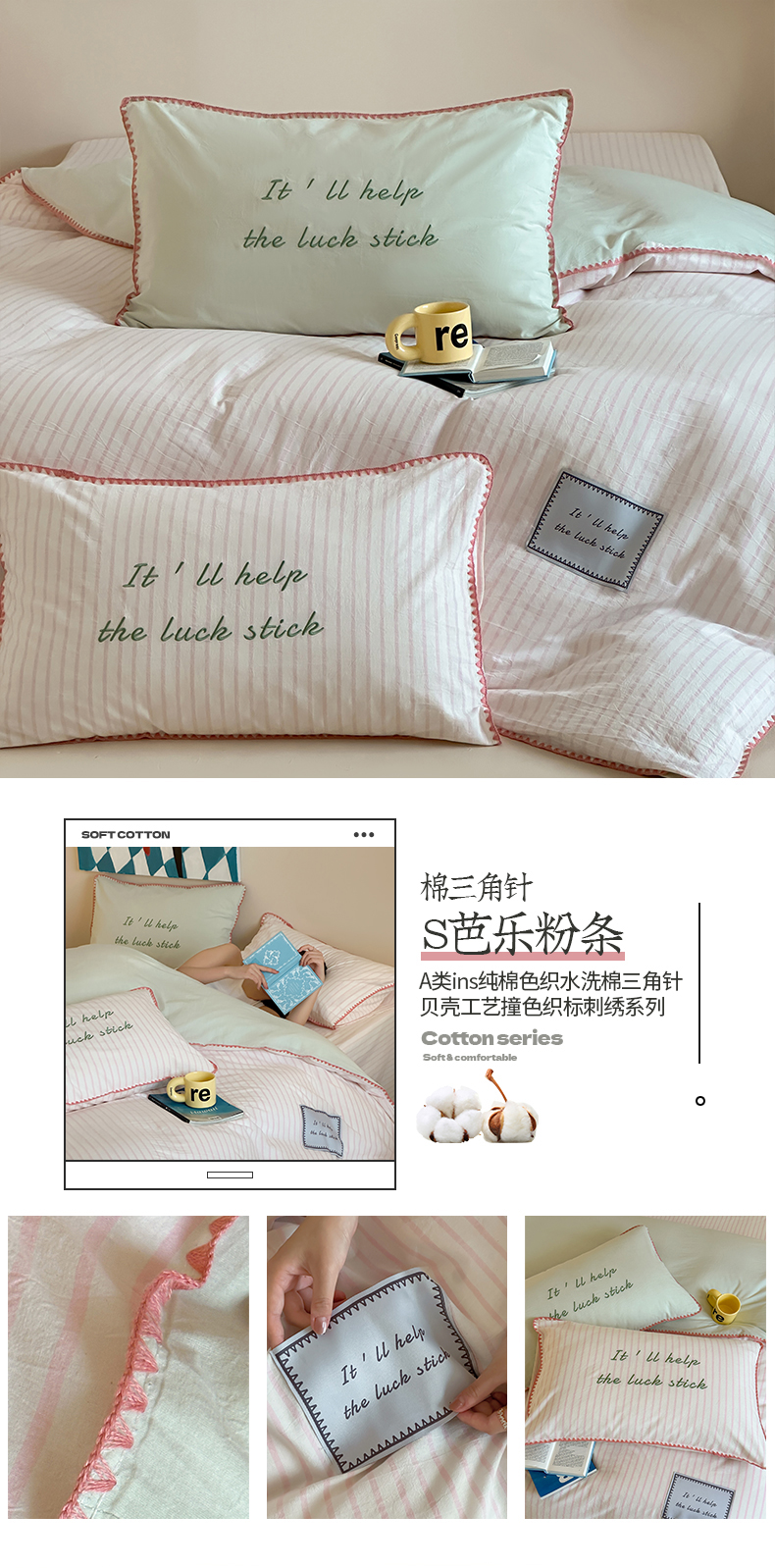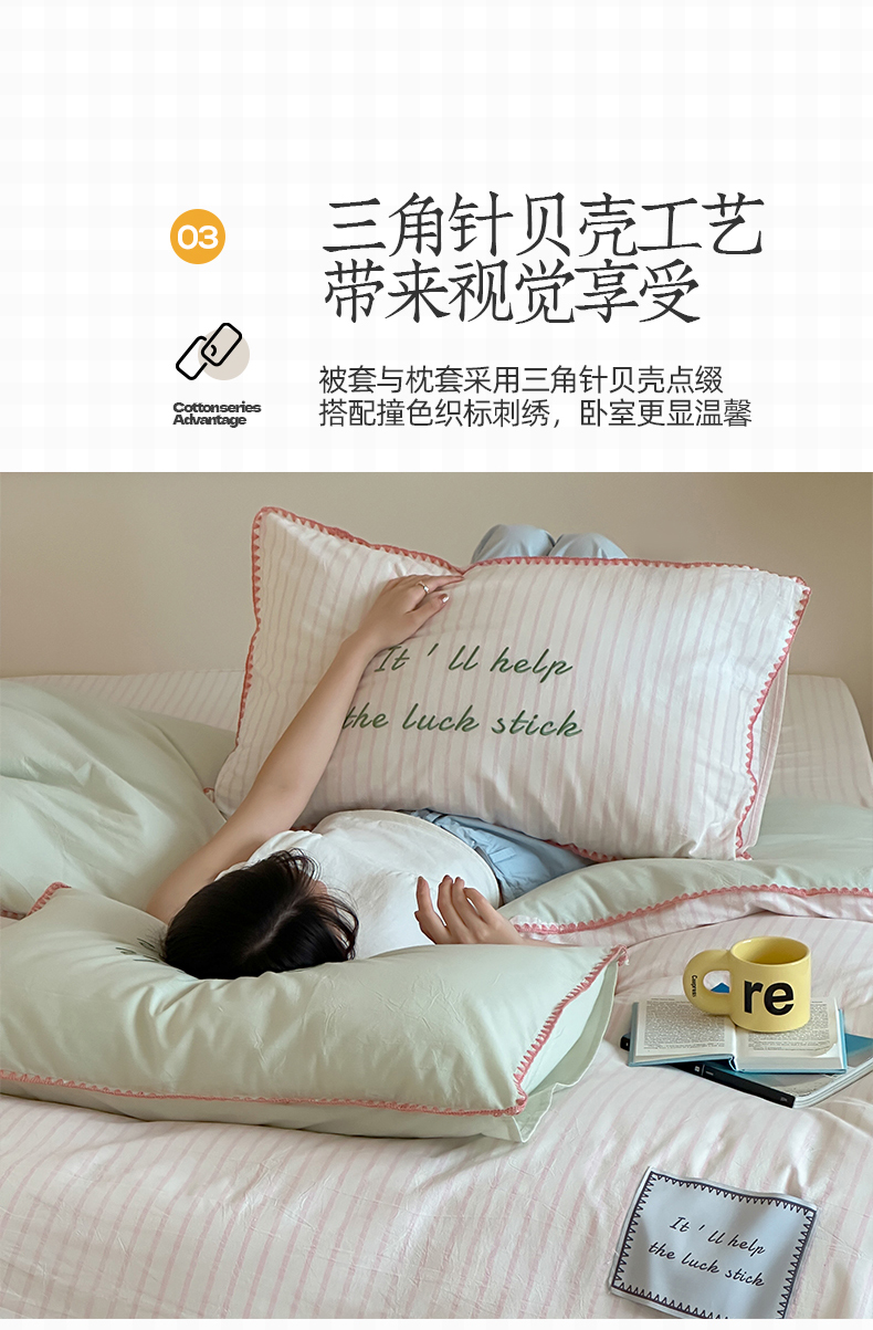 当前位置: 91家纺网 > 商品网购 > 床品套件 > 四件套 > 水洗棉四件套 > 桃子家居 2025新款A类ins纯棉色织水洗棉三角针贝壳工艺撞色织标刺绣系列四件套 棉三角针-S芭乐粉条
