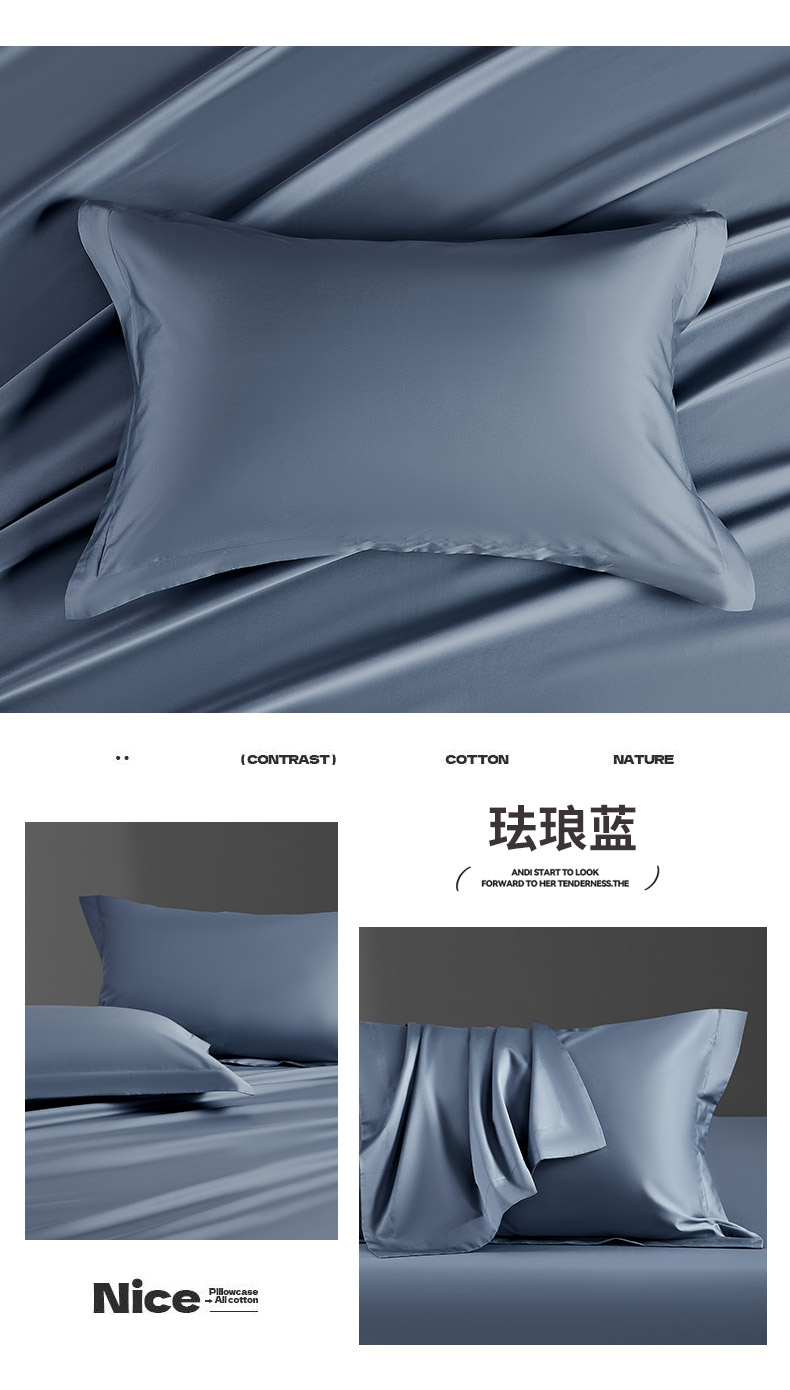 轩和家居 2024新款70S长绒棉单枕套 珐琅蓝