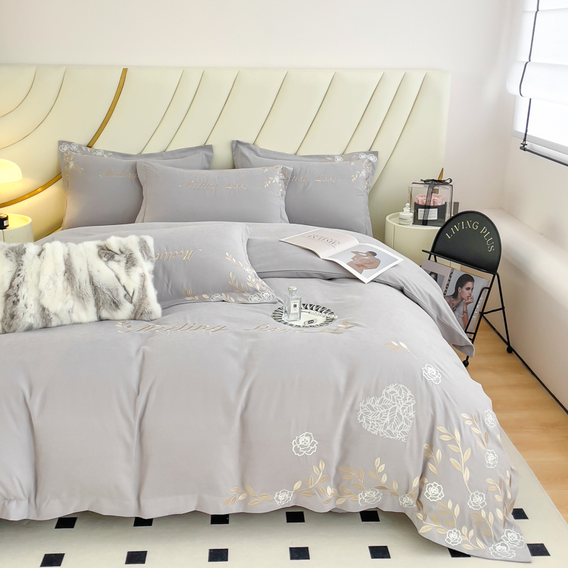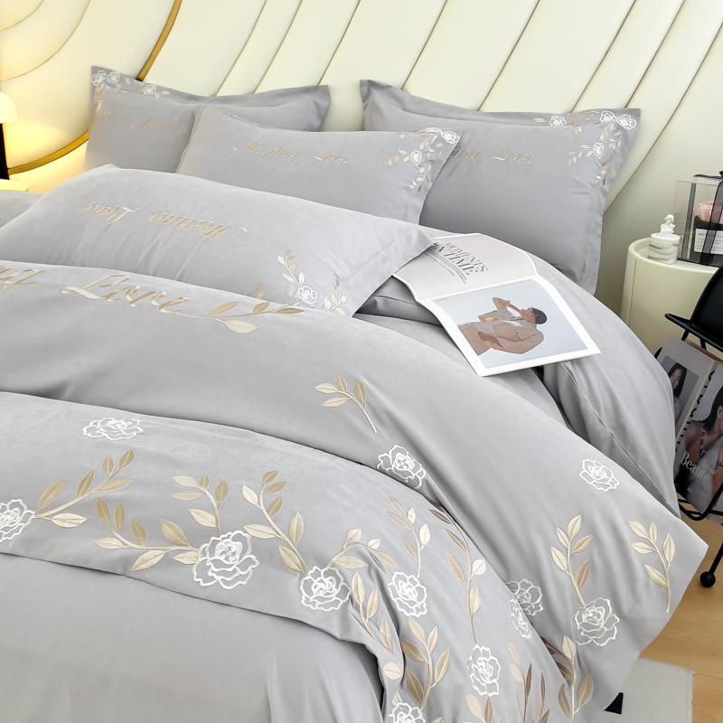梧桐家居 2024新款140克锦棉四件套-花语 花语-银灰