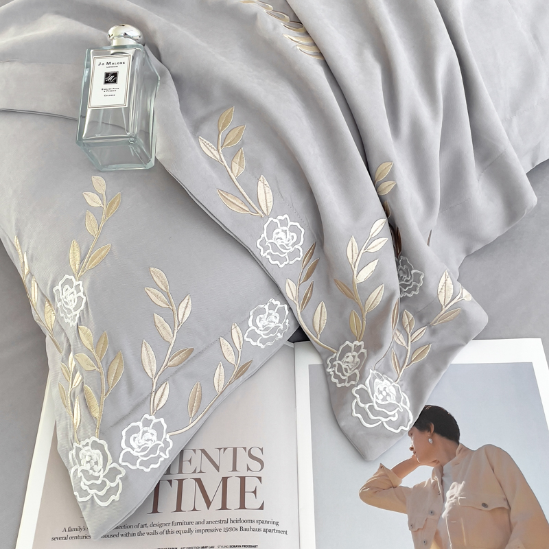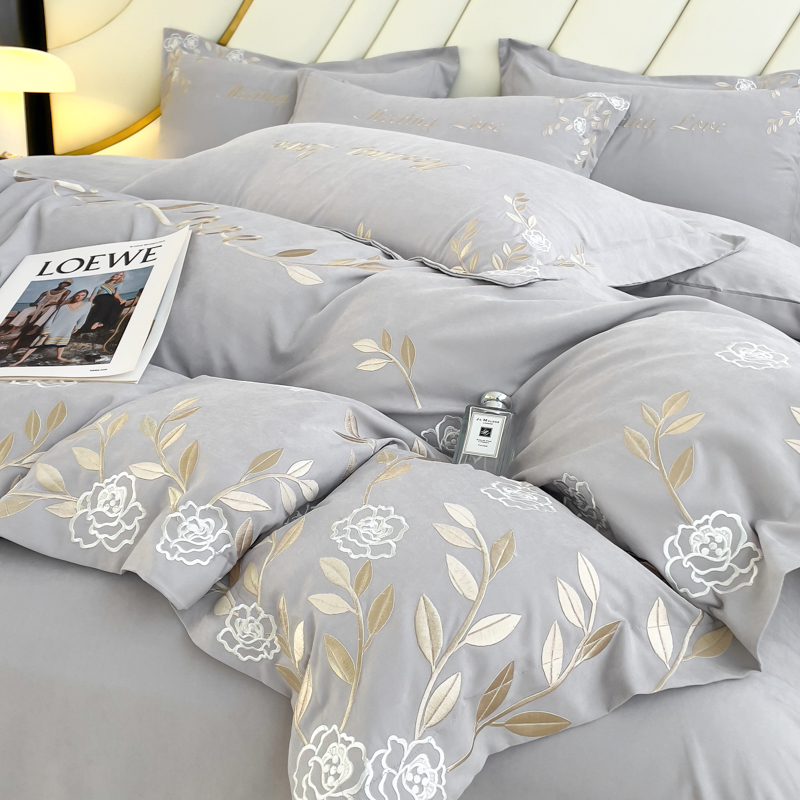 (总)梧桐家居 2025春夏新款全棉纯棉轻奢刺绣四件套-金枝玉叶,金枝玉叶-高级灰,金枝玉叶-飘蓝,金枝玉叶-香芋紫