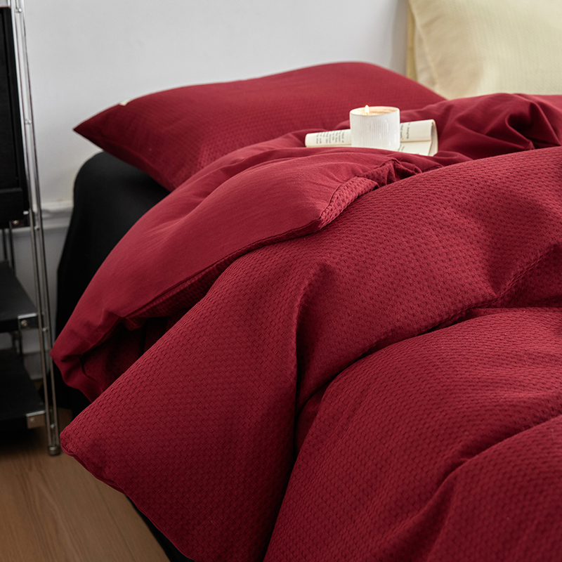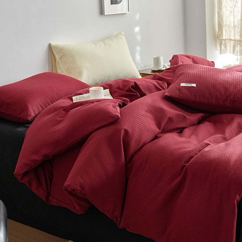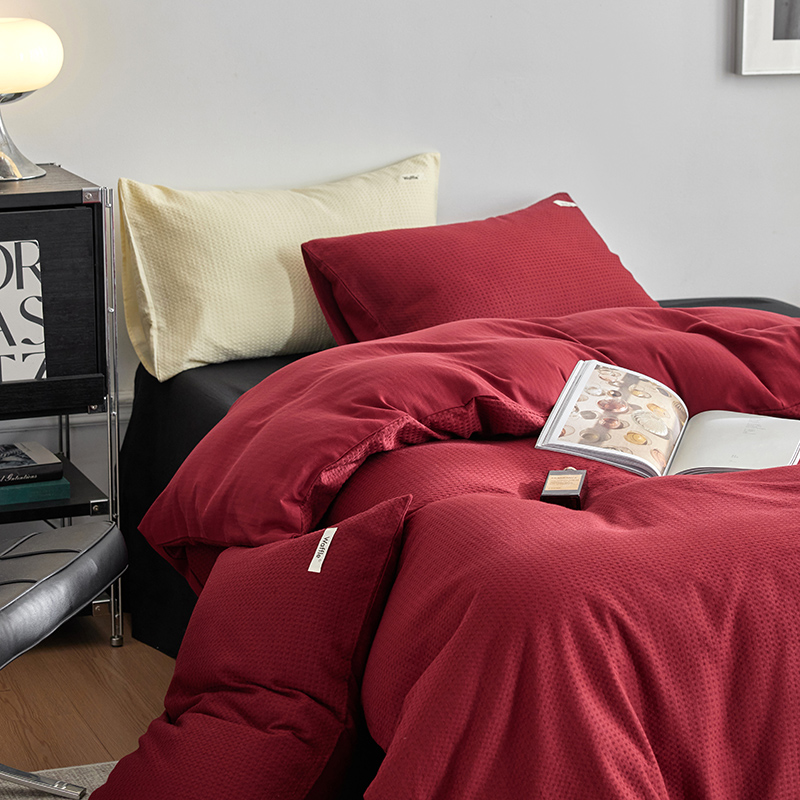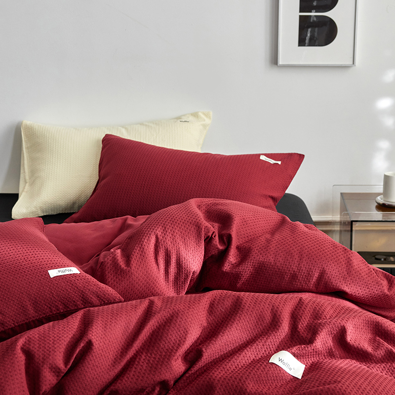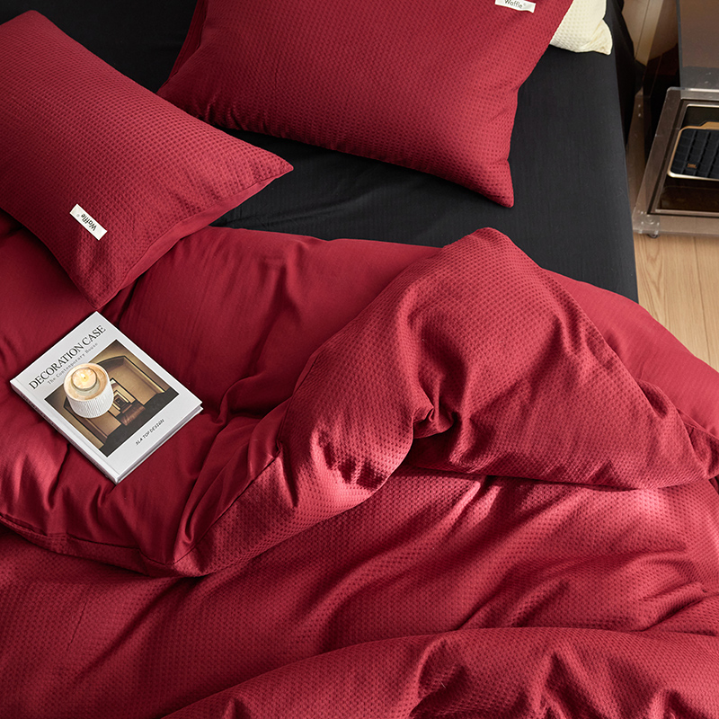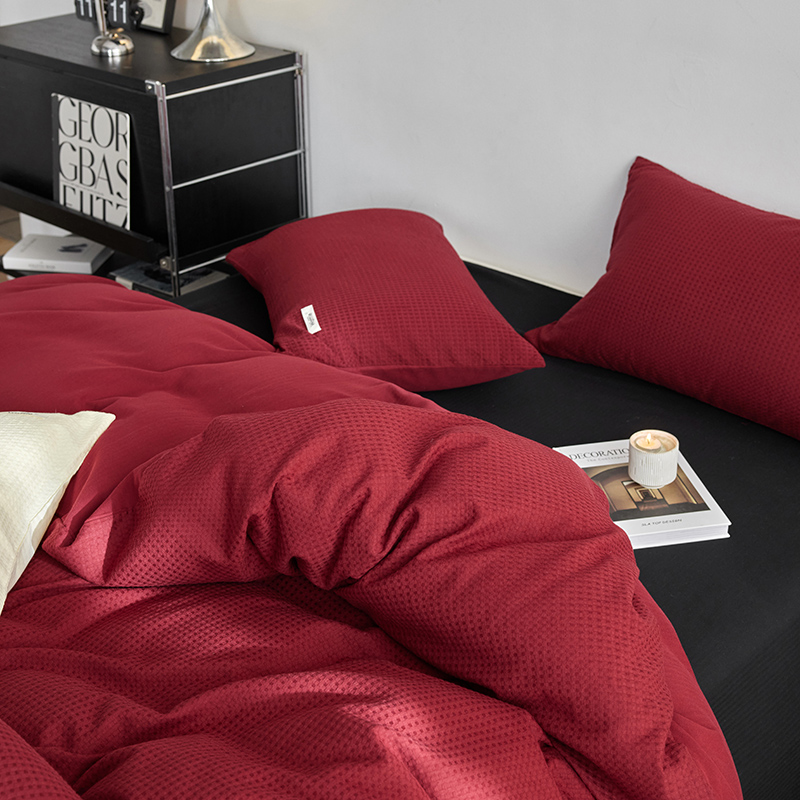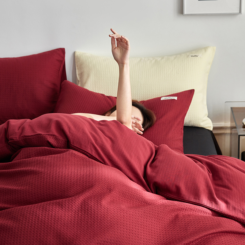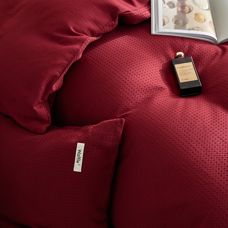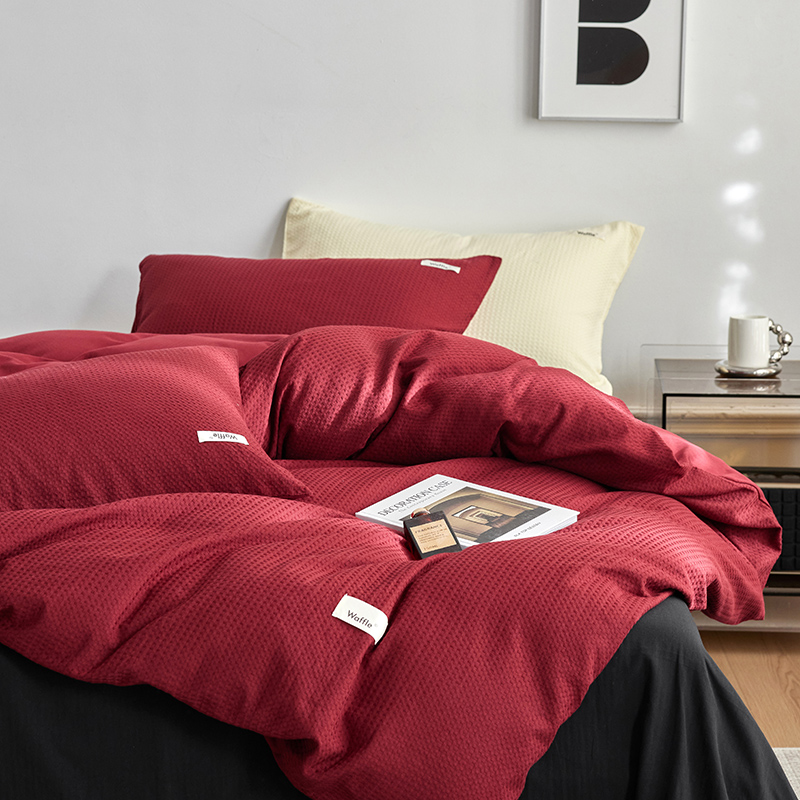 当前位置: 91家纺网 > 商品网购 > 床品套件 > 四件套 > 其它四件套 > 简家居 2024新款华夫格新颜色混搭系列四件套 安哥拉红夜阑黑(枕套安哥拉红色+鹅黄)