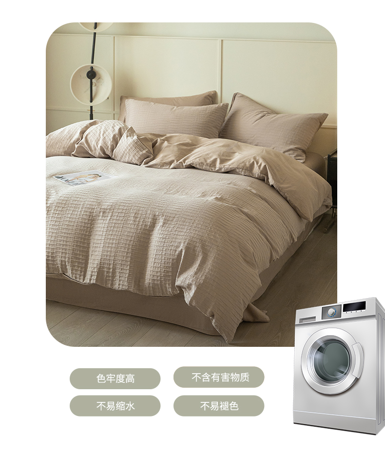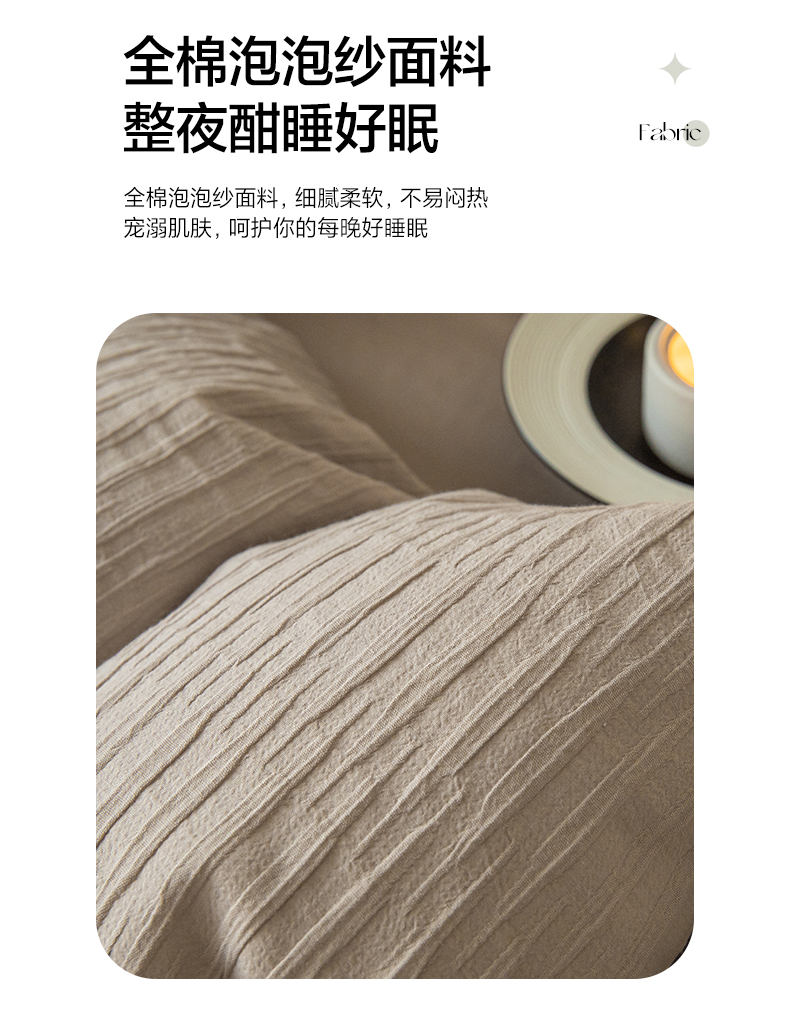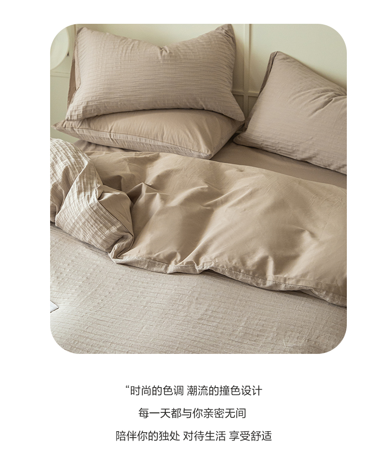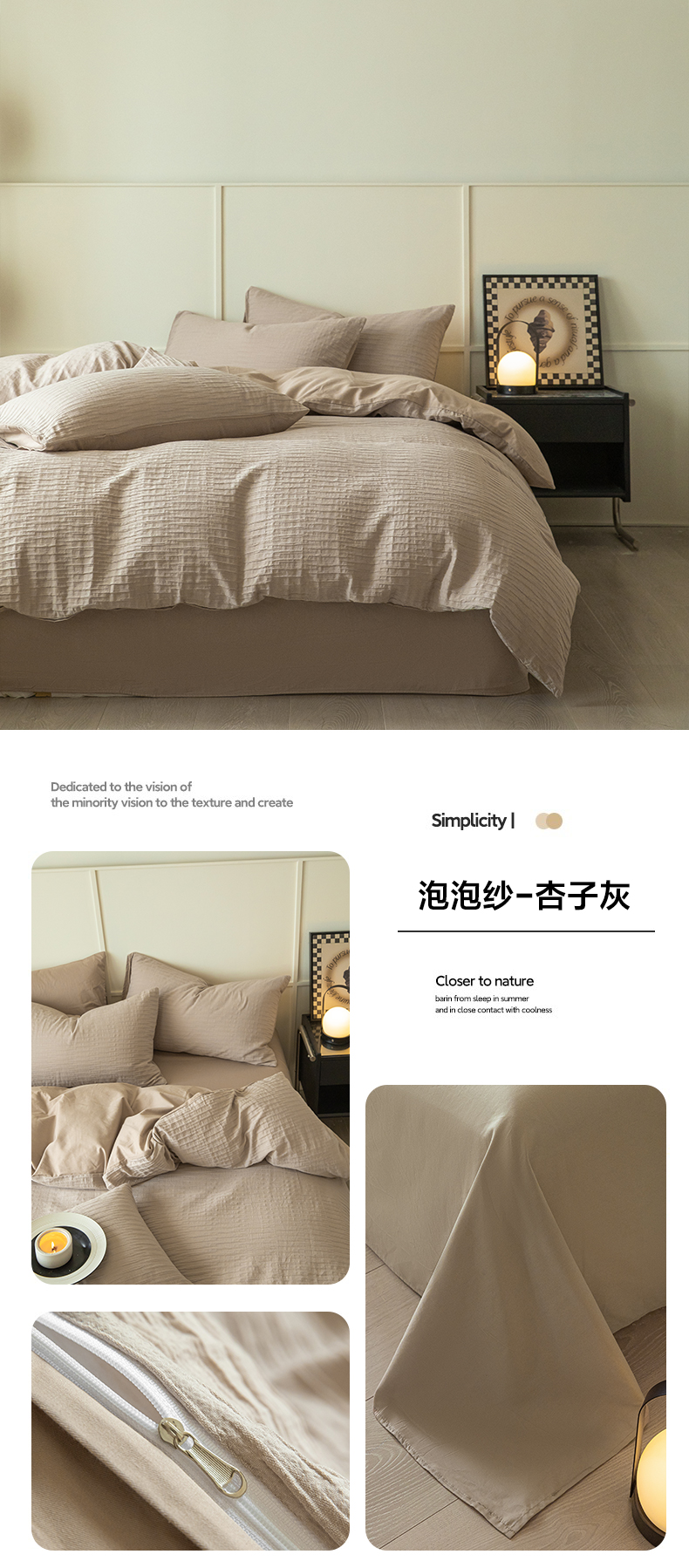 商品名称:雅居纺家纺 2025新款全棉泡泡纱四件套 泡泡纱-杏子灰