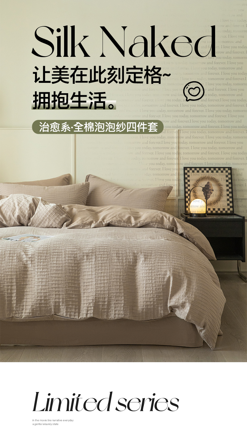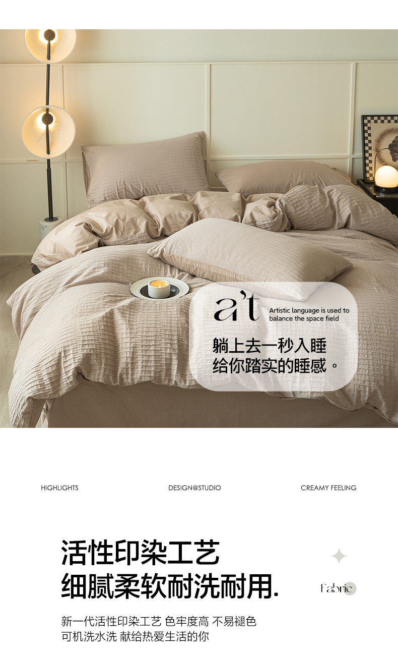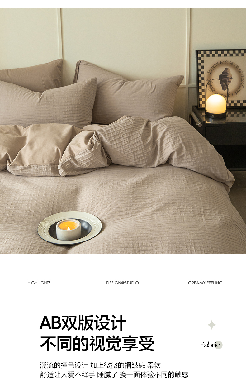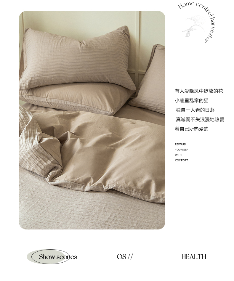 商品名称:雅居纺家纺 2025新款全棉泡泡纱四件套 泡泡纱-杏子灰