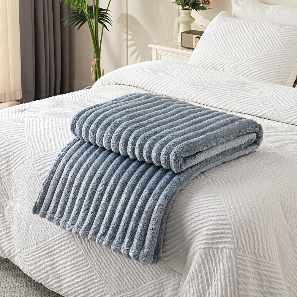 商品名称:慕莎家纺 2025新款抽条兔毛绒多功能毛毯 抽条蓝灰