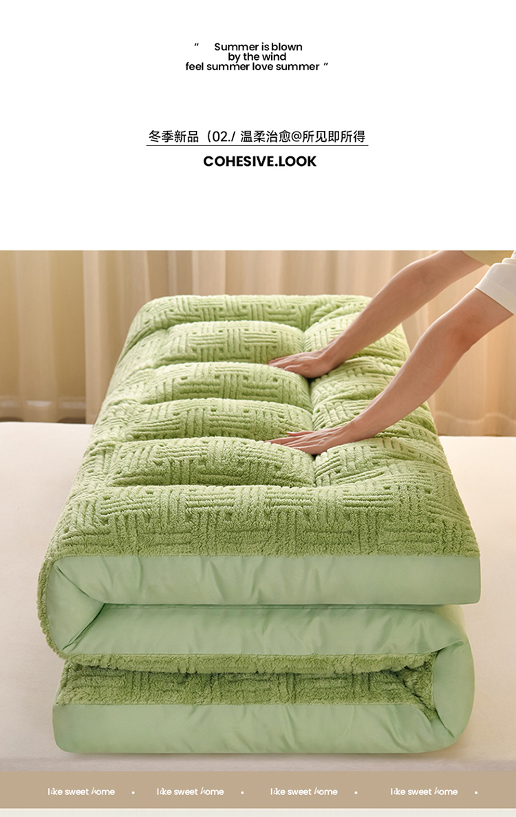 (买家秀热款不断货)A类母婴级舒棉绒牛奶绒床垫子雪花绒床垫子牛奶绒床褥子羽丝绒床垫褥子多功能床垫软垫 华夫格绿