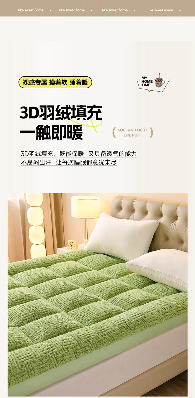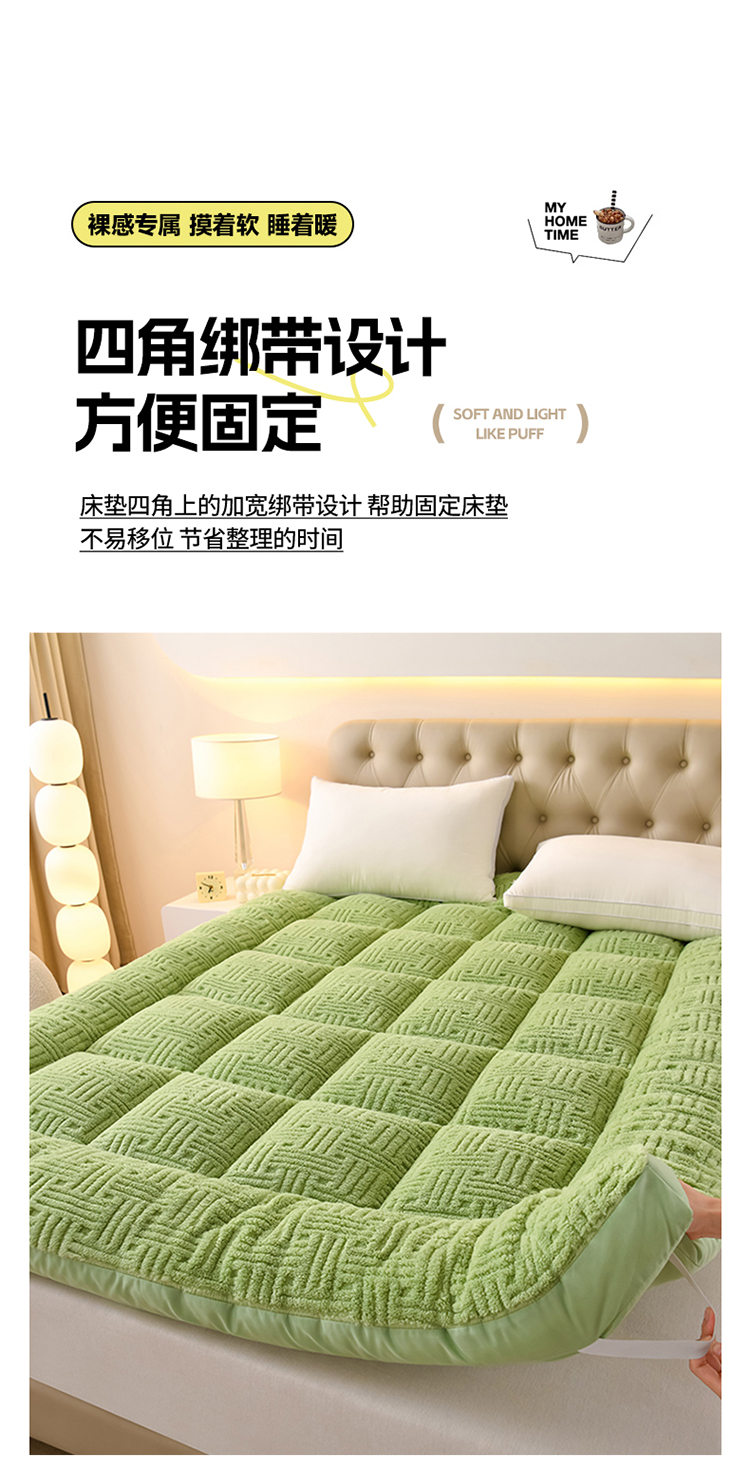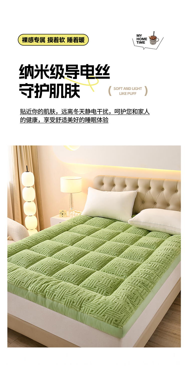 商品名称:(买家秀热款不断货)A类母婴级舒棉绒牛奶绒床垫子雪花绒床垫子牛奶绒床褥子羽丝绒床垫褥子多功能床垫软垫 华夫格绿