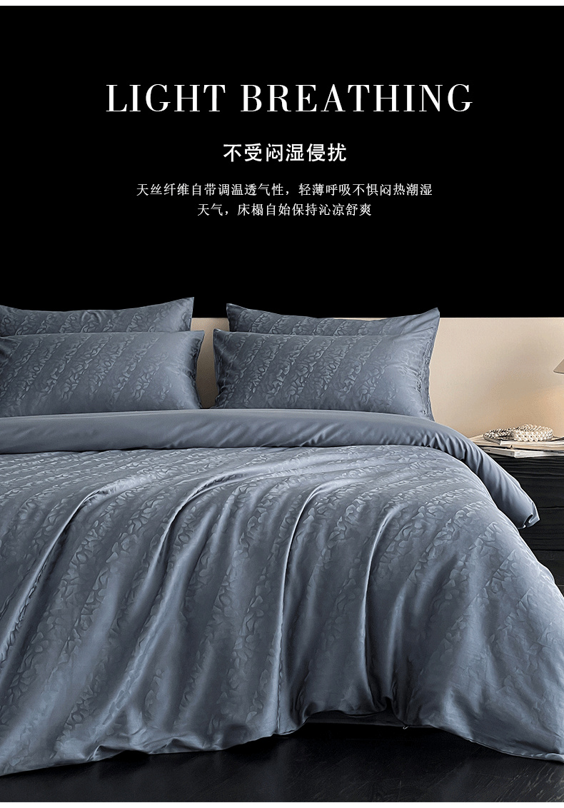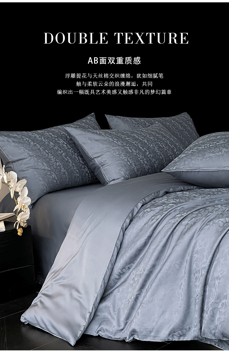 商品名称:2025新款天丝棉提花系列四件套 灰蓝