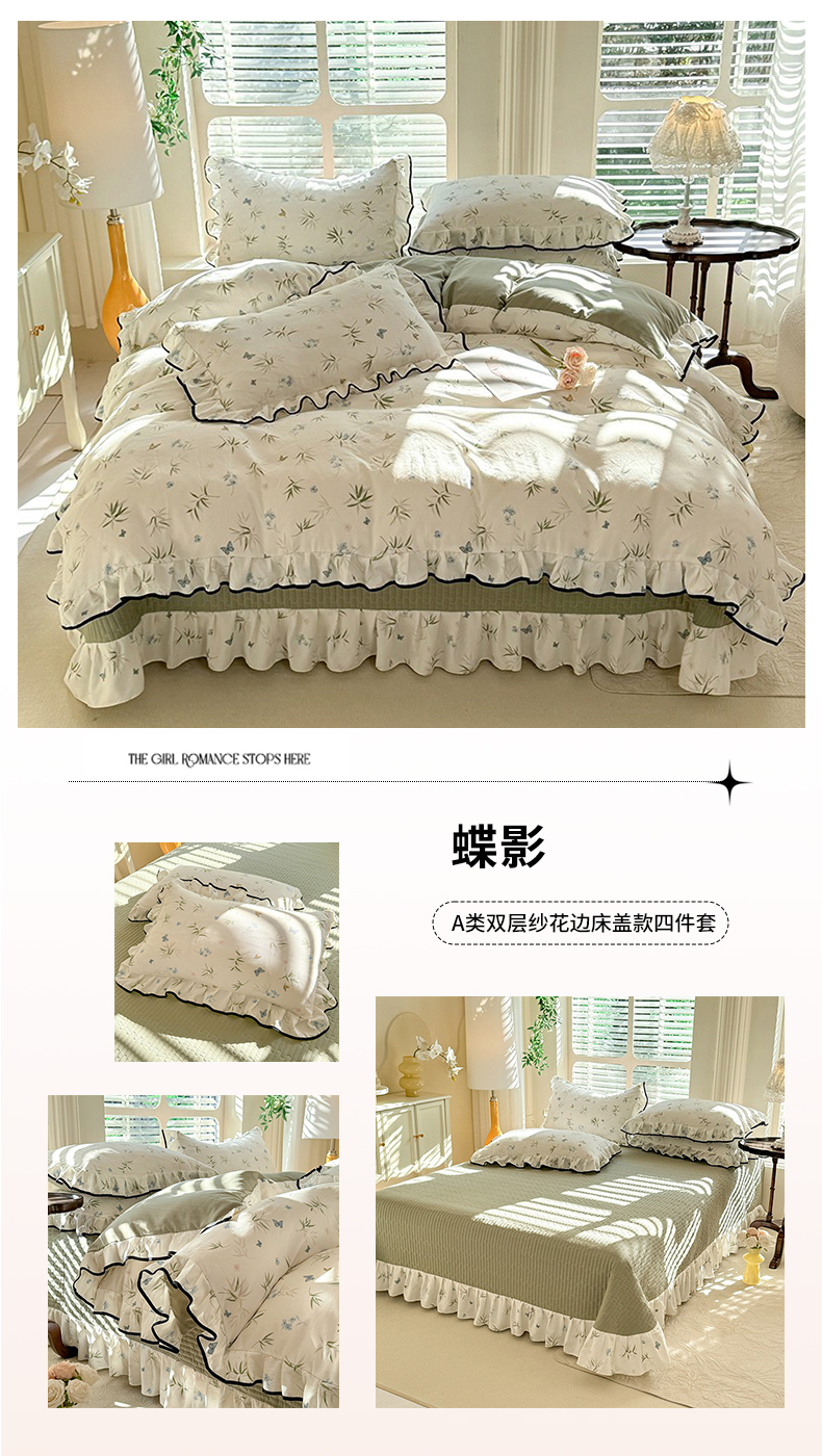 韩约家纺 2025新款1针织双层纱花边款床盖四件套 蝶影(花边款)