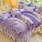 商品名称:2025秋冬新款230g全消光牛奶绒床裙款四件套纯色蕾丝花边刺绣蕾丝床裙款床盖款法式蕾丝公主粉奶油风四件套 甜心—梦幻紫