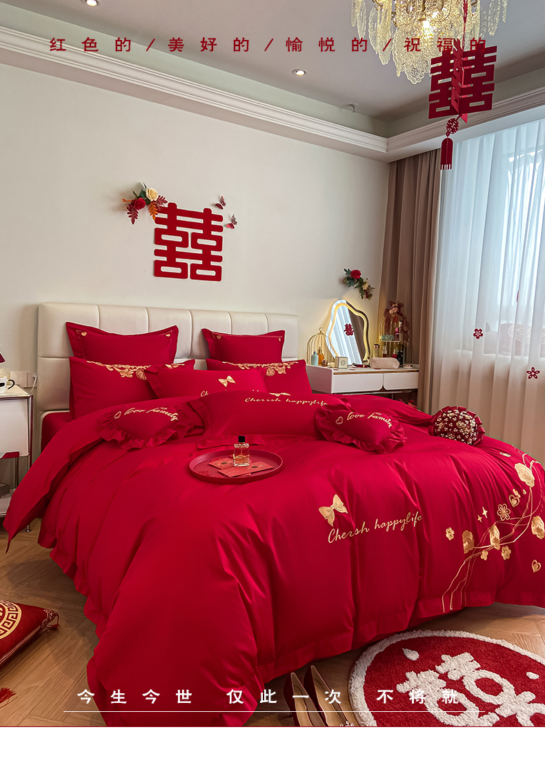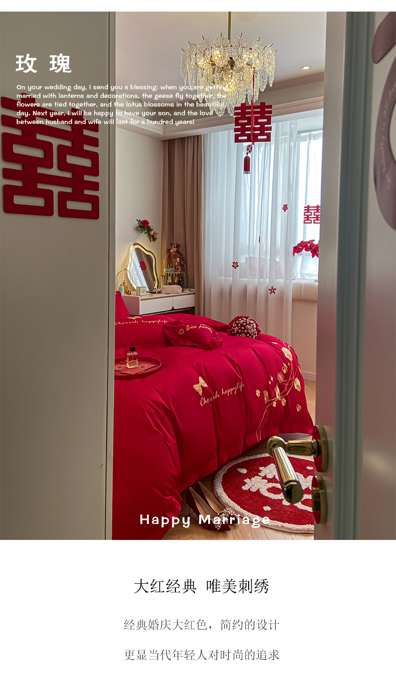 当前位置: 91家纺网 > 商品网购 > 床品套件 > 四件套 > 婚庆四件套 > 东方合美(原:皇家传奇) 2023新款小红书风格热款40S婚庆系列 玫瑰