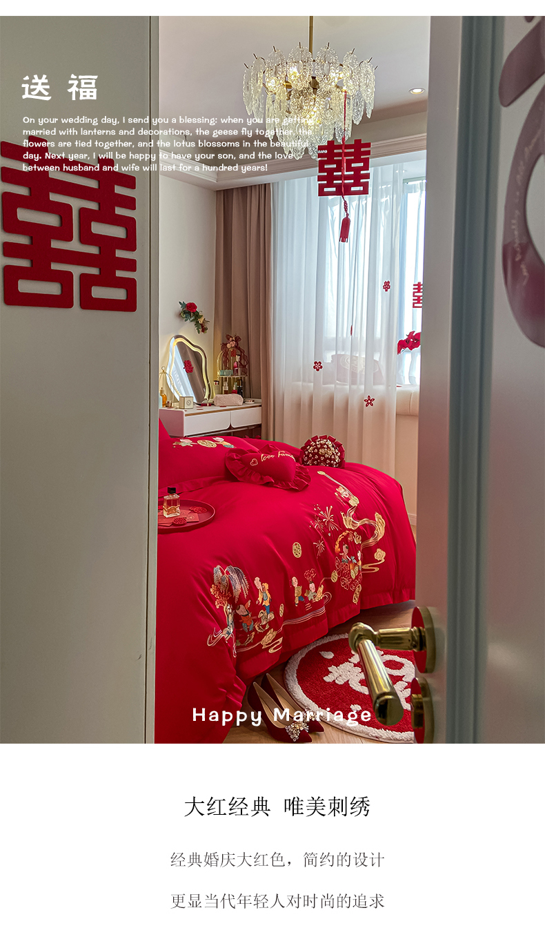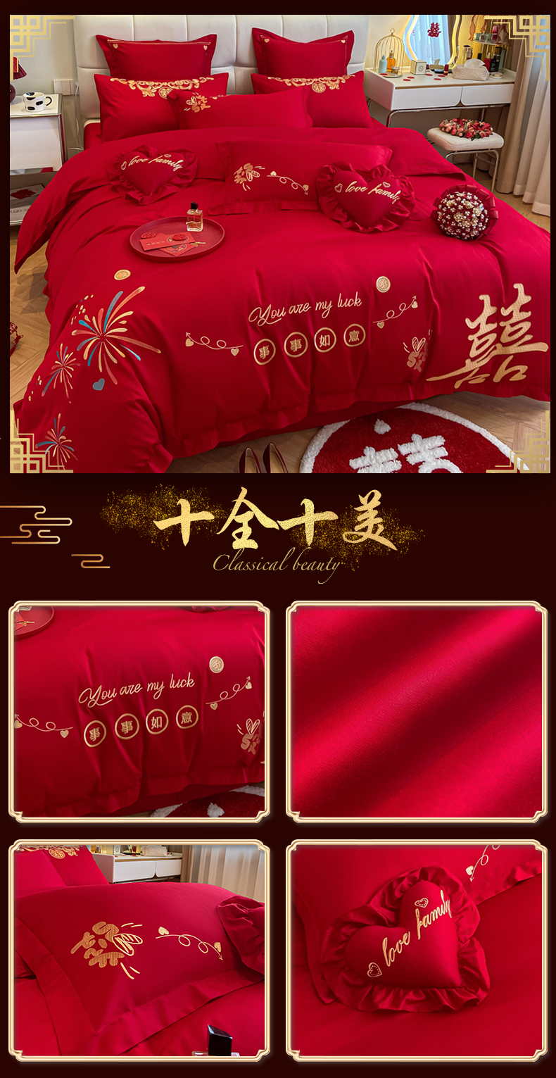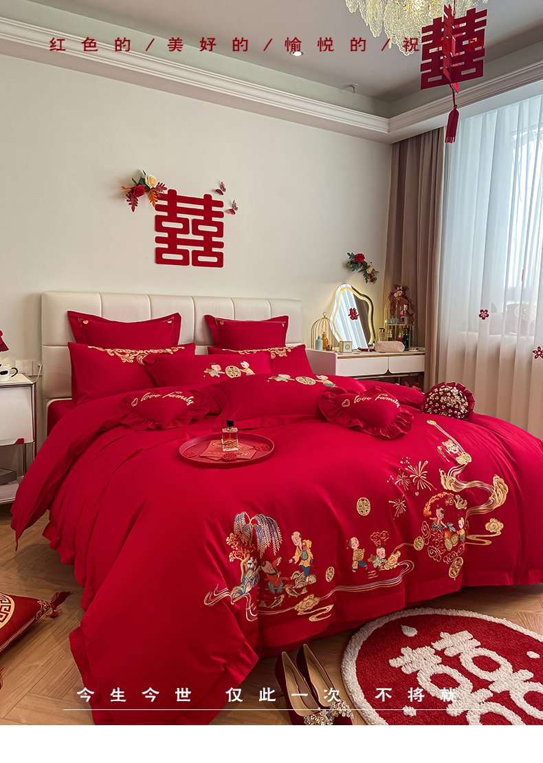 当前位置: 91家纺网 > 商品网购 > 床品套件 > 四件套 > 婚庆四件套 > 东方合美(原:皇家传奇) 2023新款小红书风格热款40S婚庆系列 送福
