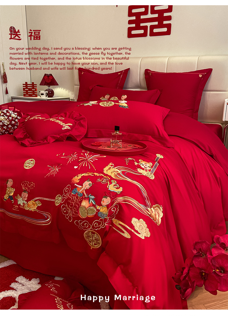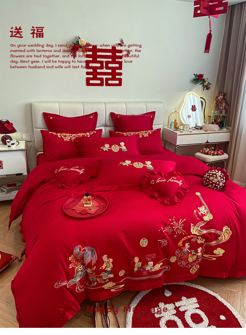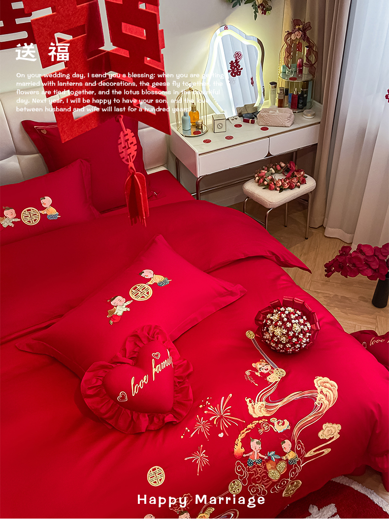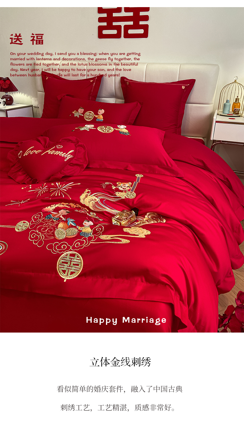 当前位置: 91家纺网 > 商品网购 > 床品套件 > 四件套 > 婚庆四件套 > 东方合美(原:皇家传奇) 2023新款小红书风格热款40S婚庆系列 送福
