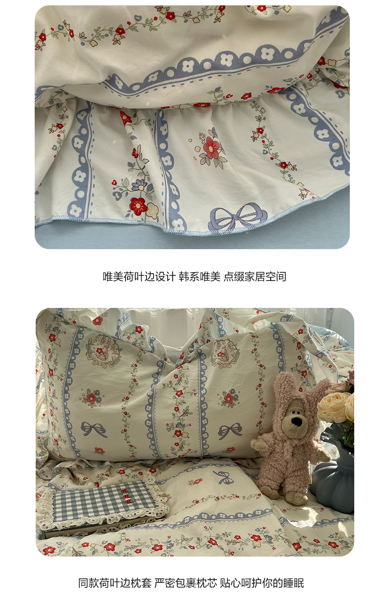 当前位置: 91家纺网 > 商品网购 > 床品套件 > 四件套 > 水洗棉四件套 > 原素 2025新款韩系小花卉花边水洗棉四件套 季夏
