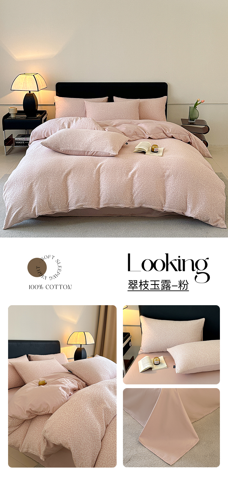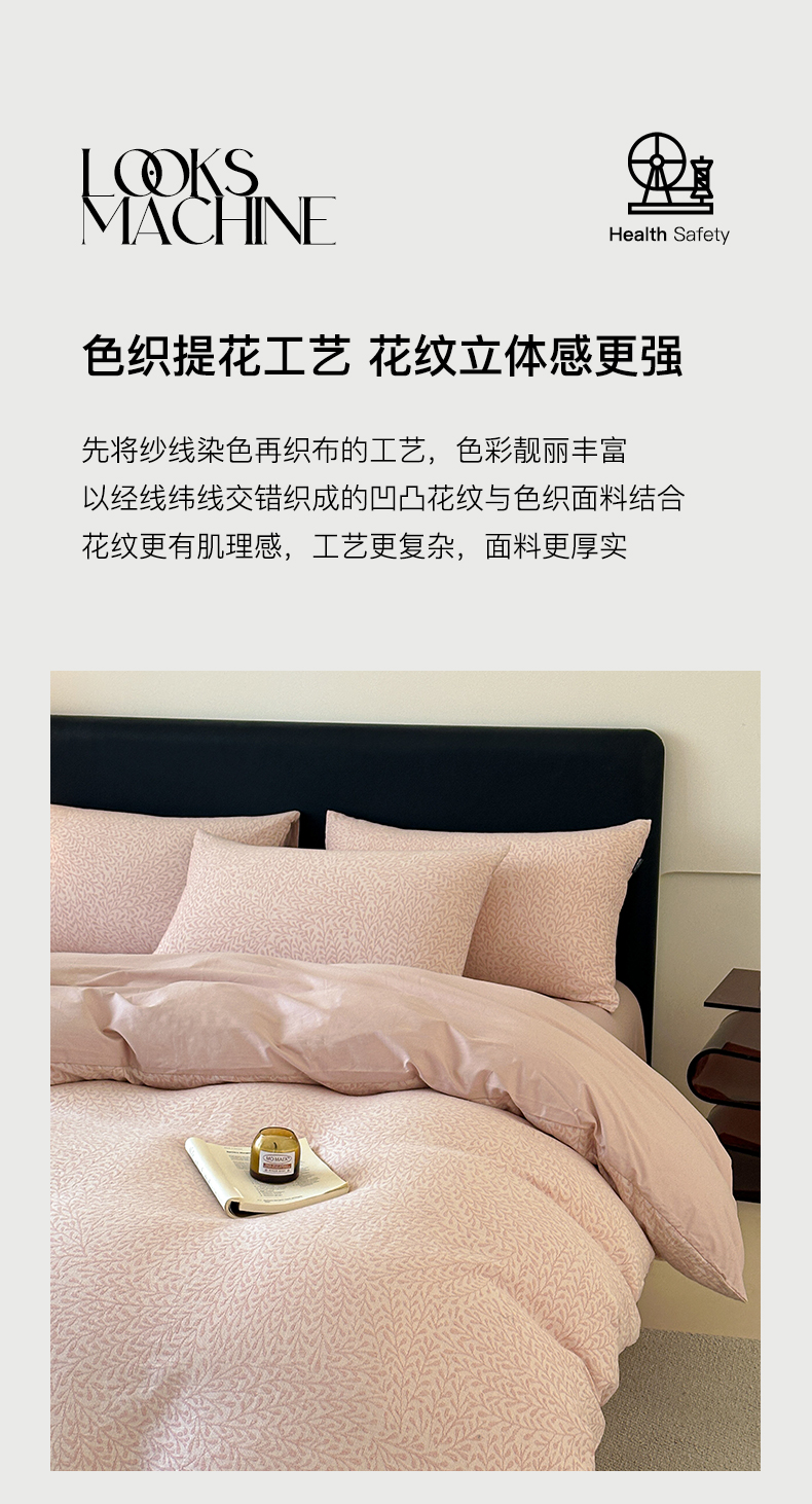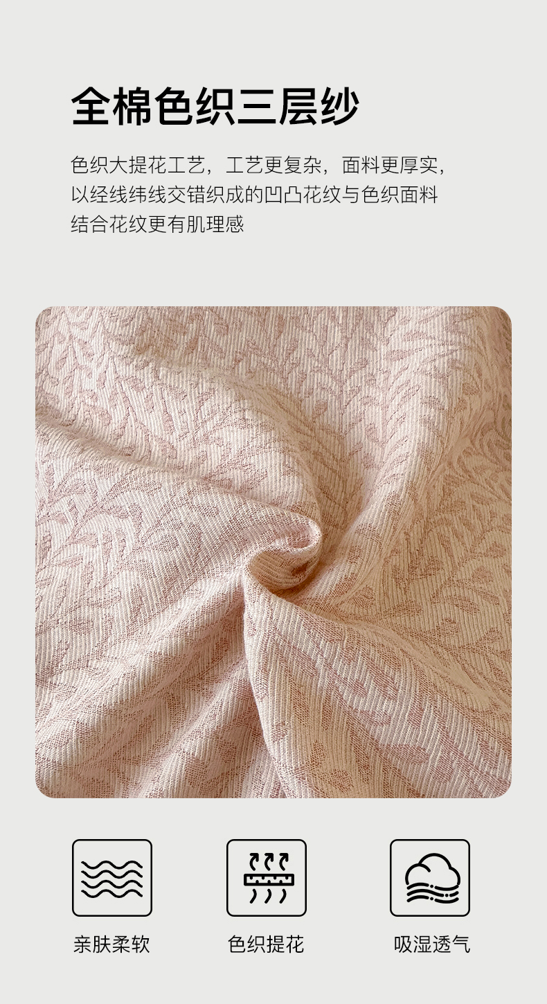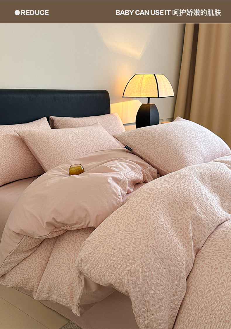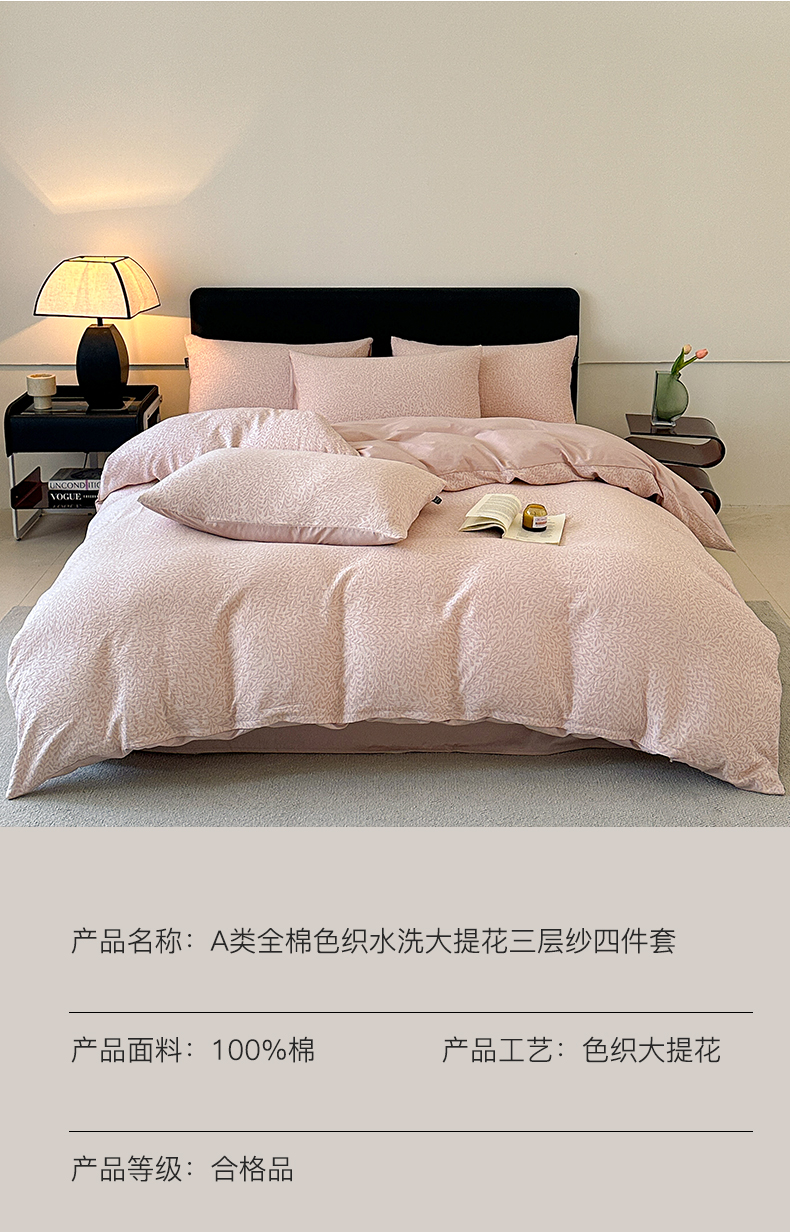 商品名称:格里芬家纺 2025新款全棉色织水洗三层纱提花纯棉四件套 翠枝玉露-粉