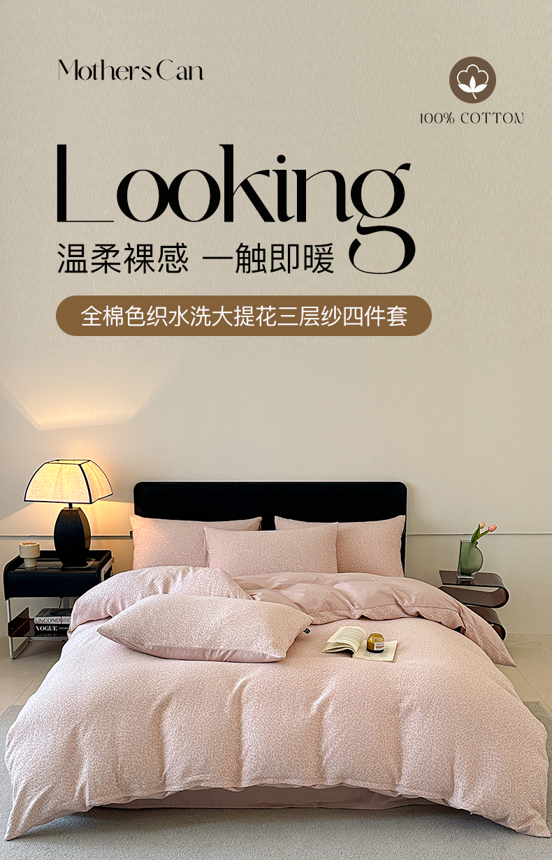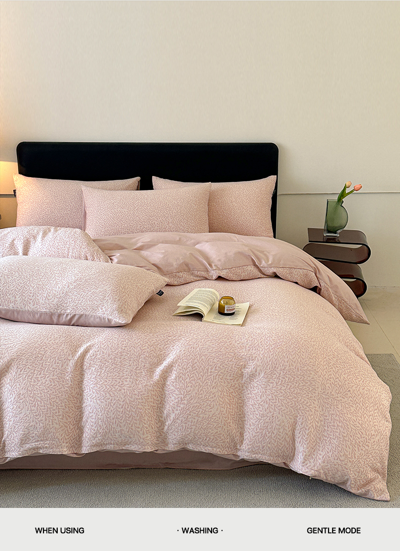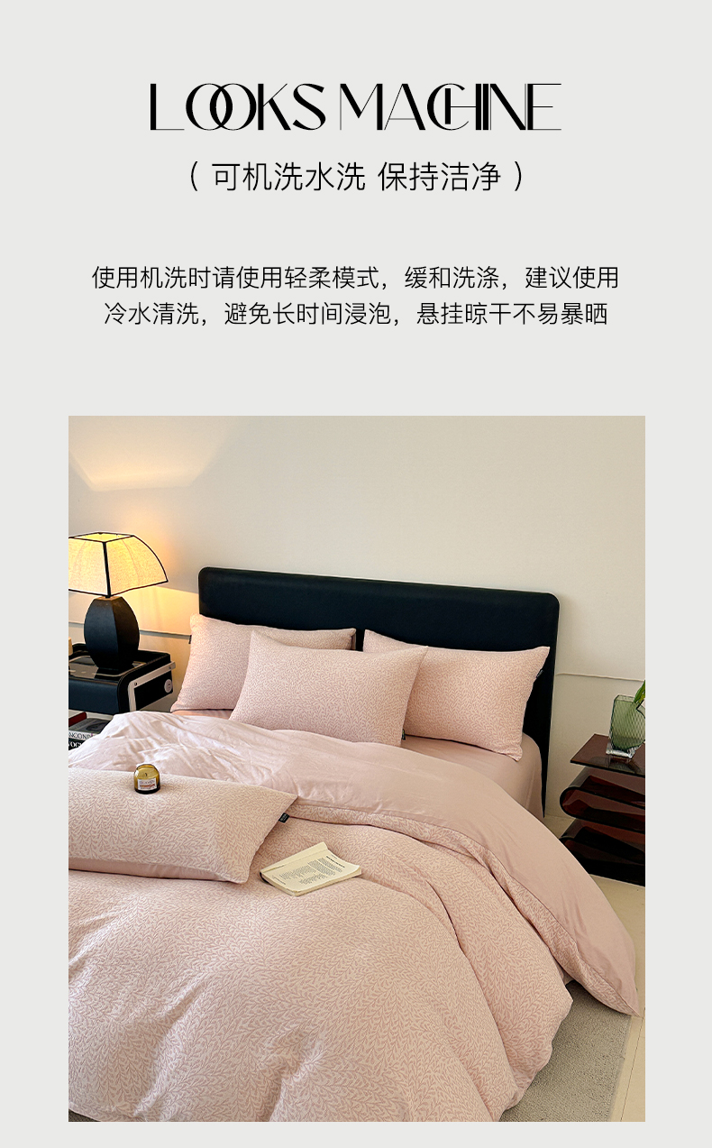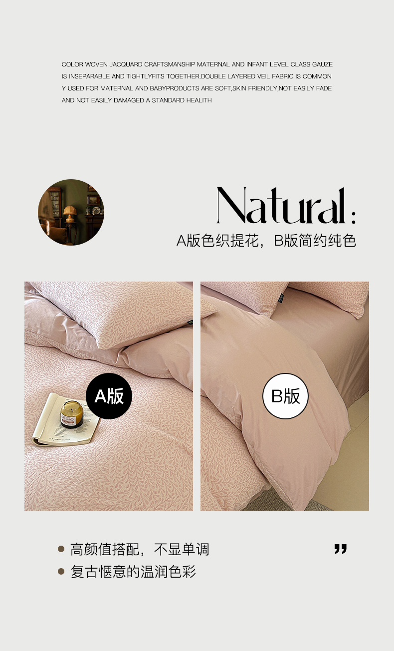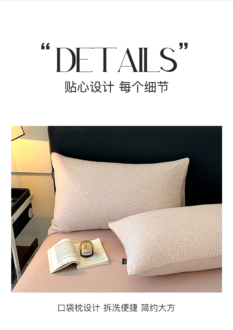 商品名称:格里芬家纺 2025新款全棉色织水洗三层纱提花纯棉四件套 翠枝玉露-粉