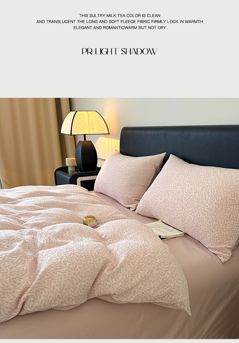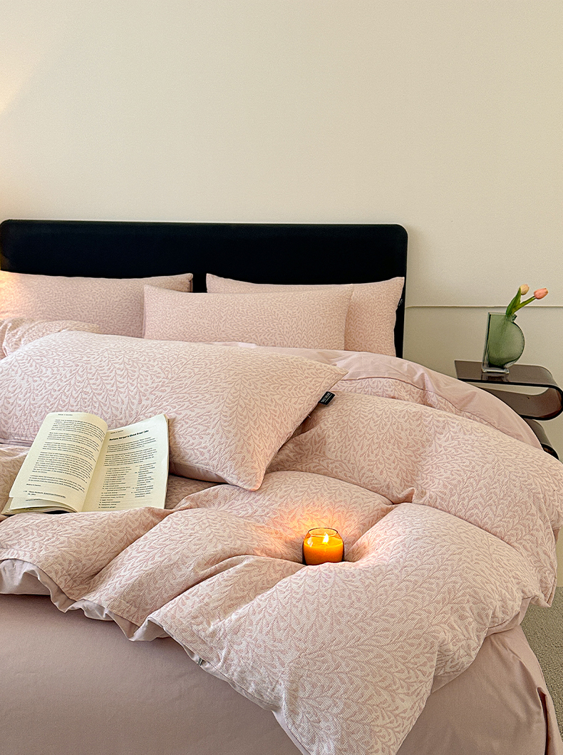 格里芬家纺 2025新款全棉色织水洗三层纱提花纯棉四件套 翠枝玉露-粉