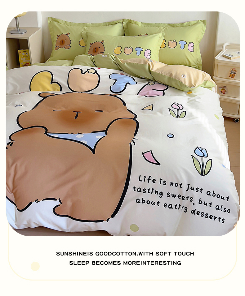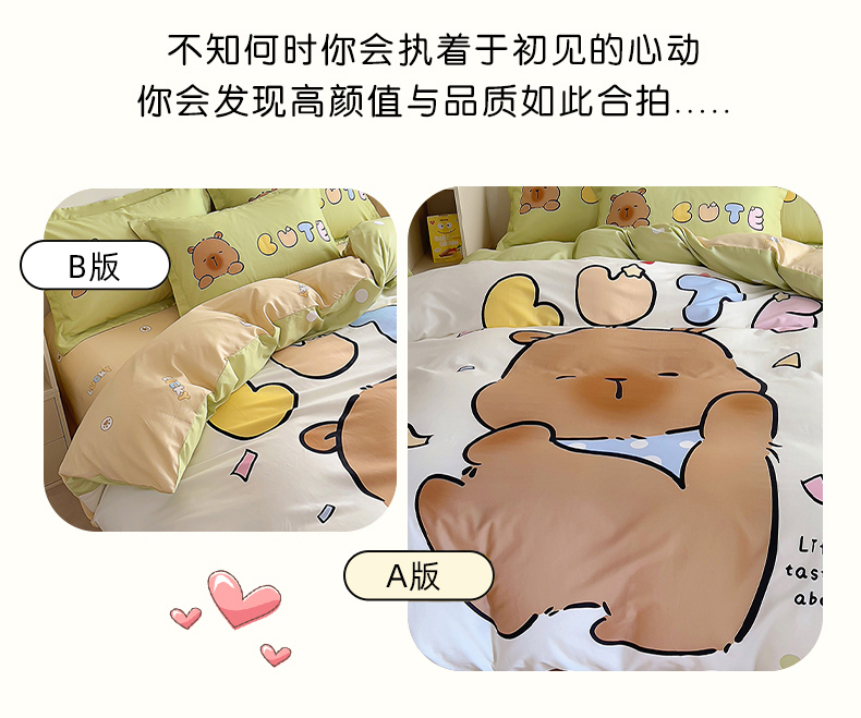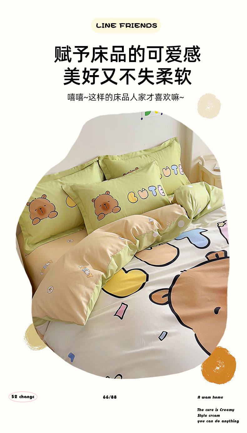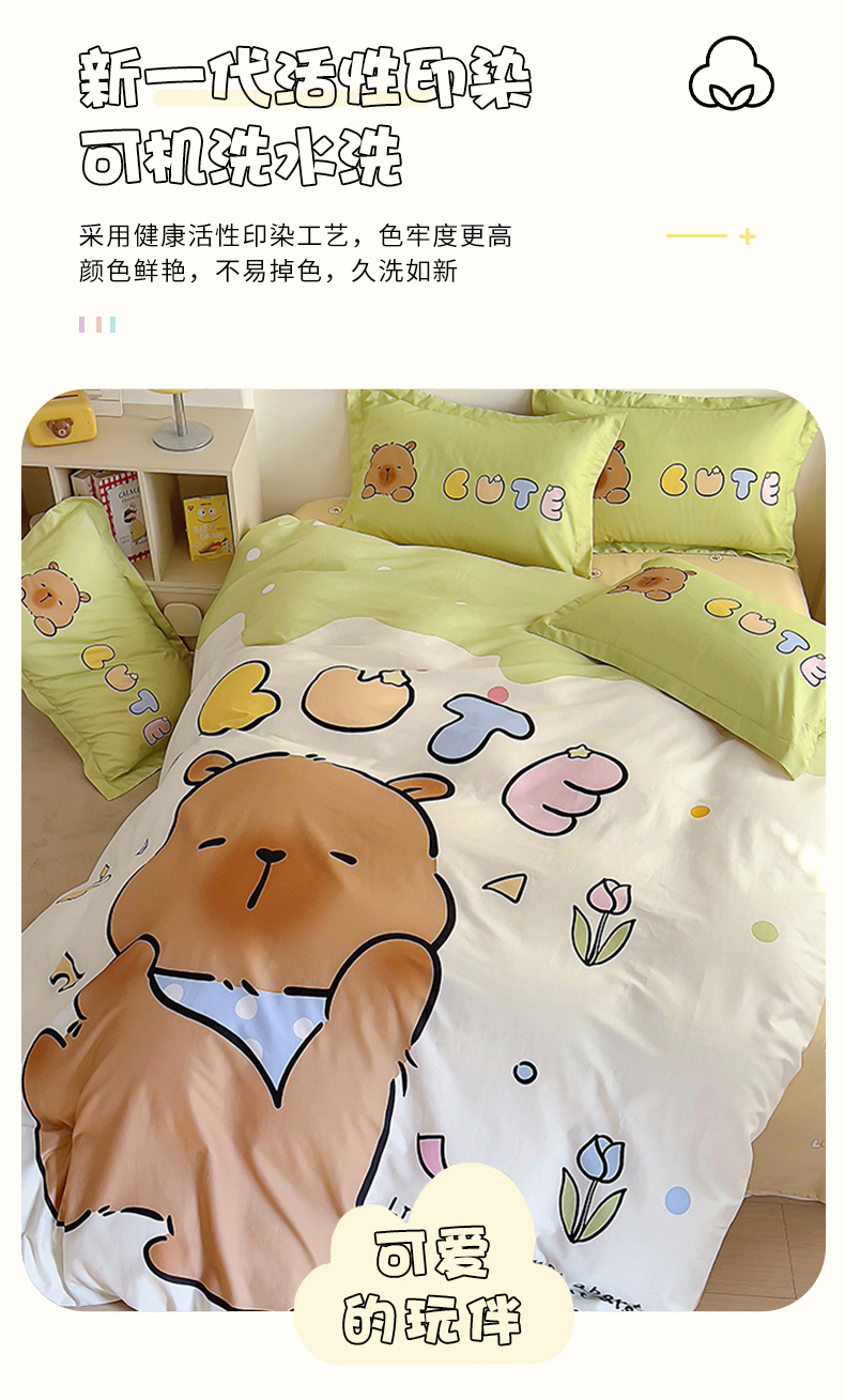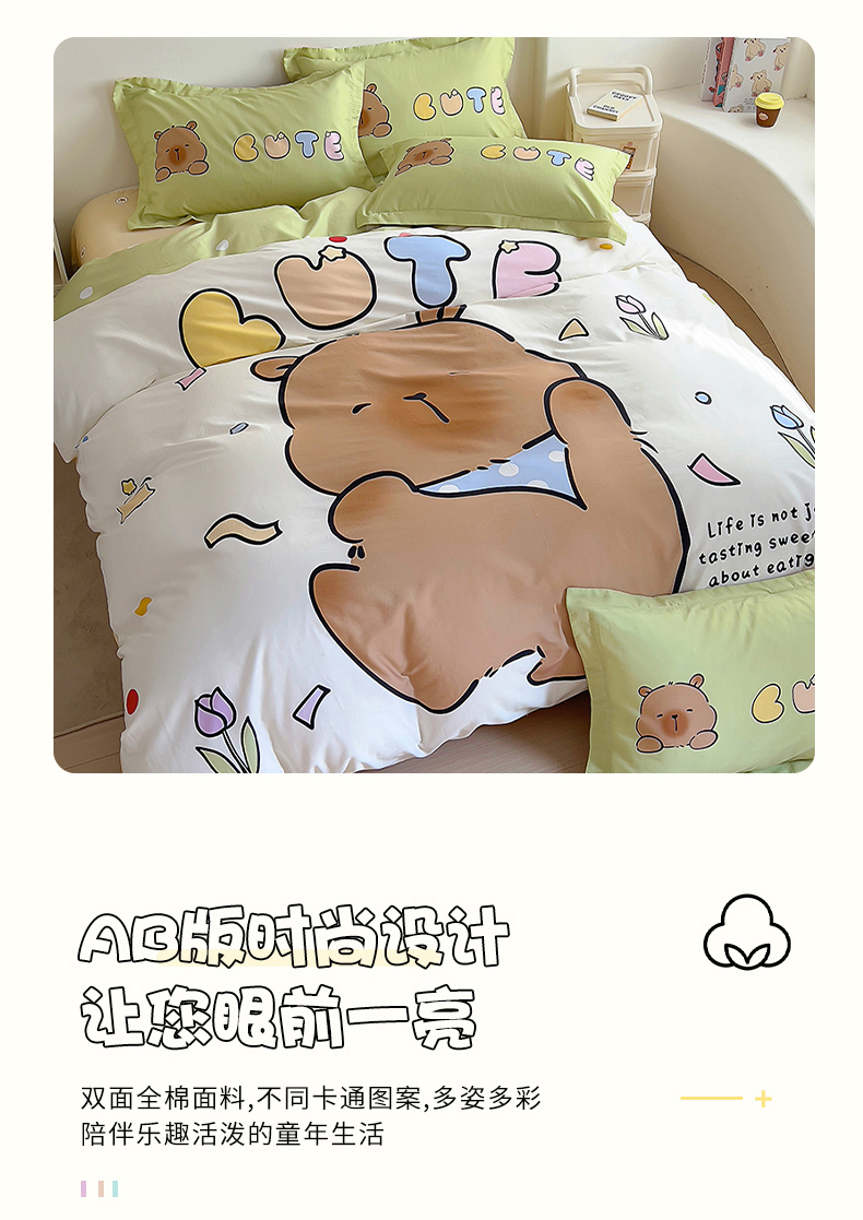 当前位置: 91家纺网 > 商品网购 > 床品套件 > 四件套 > 全棉普通四件套 > 浩诚 2025新款专版卡皮巴拉纯棉全棉卡通大版四件套-原创水豚卡卡【 提供买家秀 】 水豚巴拉